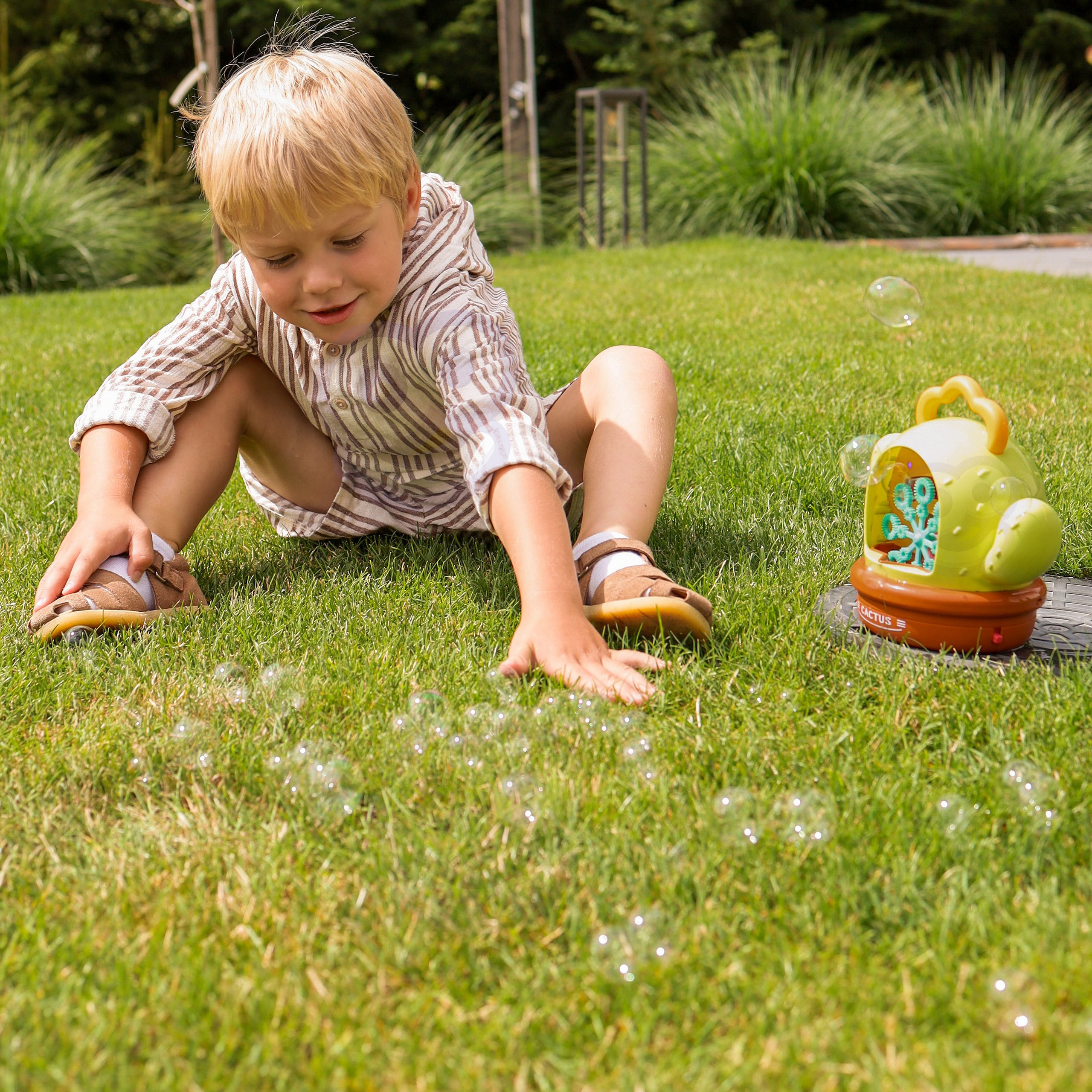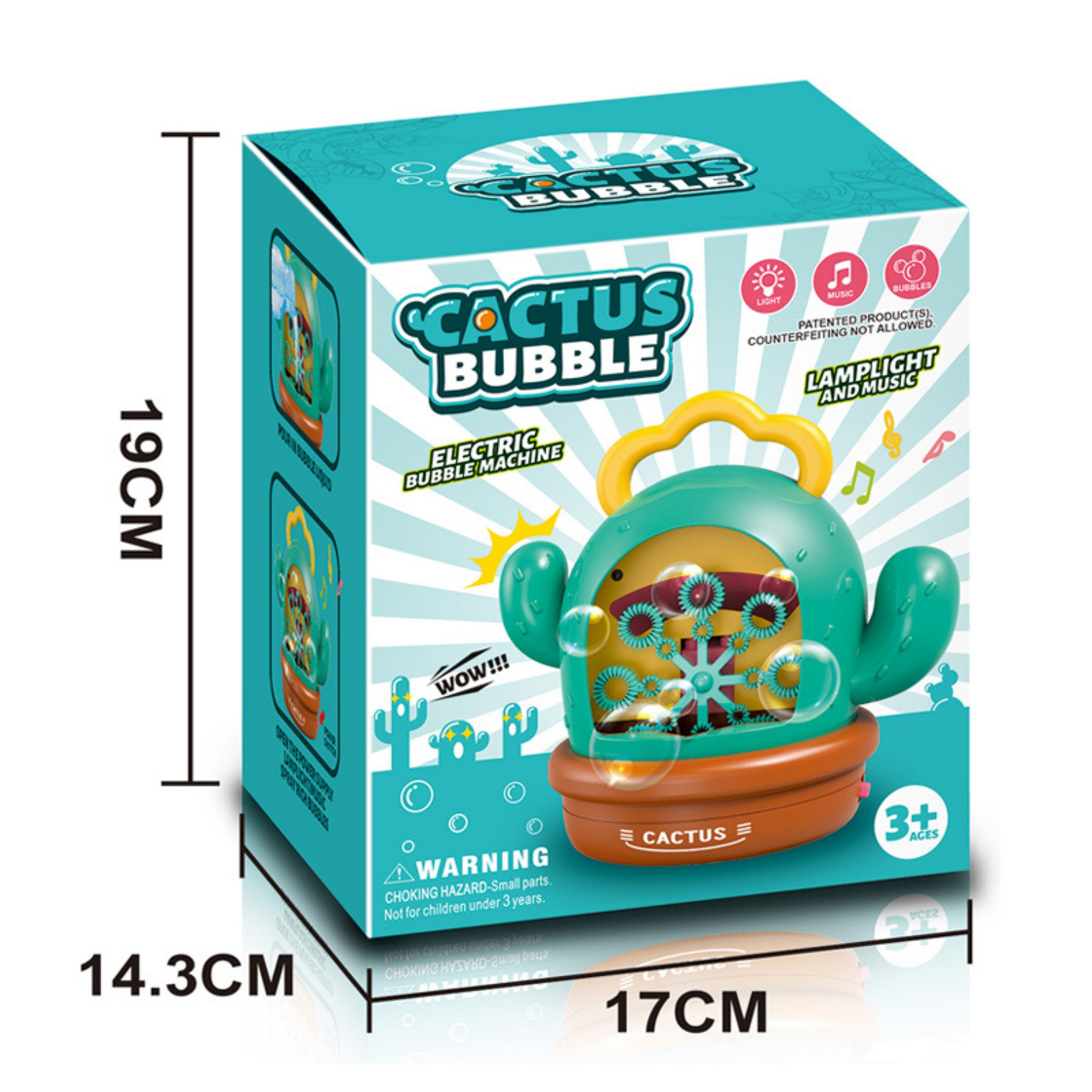 Odkryj radość zabawy z elektryczną maszyną do baniek mydlanych od marki Woopie. Ta kolorowa, urocza zabawka w kształcie kaktusa błyskawicznie zamieni każdy dzień w magiczną przygodę, wypuszczając setki baniek wydając urocze bąbelkowe dźwięki i migocząc kolorowymi światełkami. Wystarczy wlać płyn, włączyć urządzenie i obserwować, jak pokój lub ogród wypełnia się bańkami, które zachwycą każde dziecko i dorosłego!