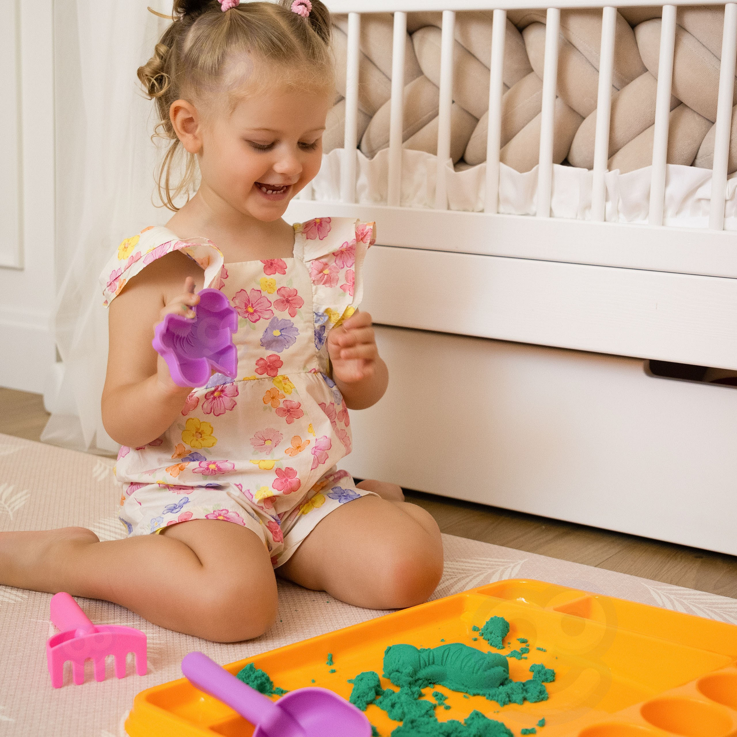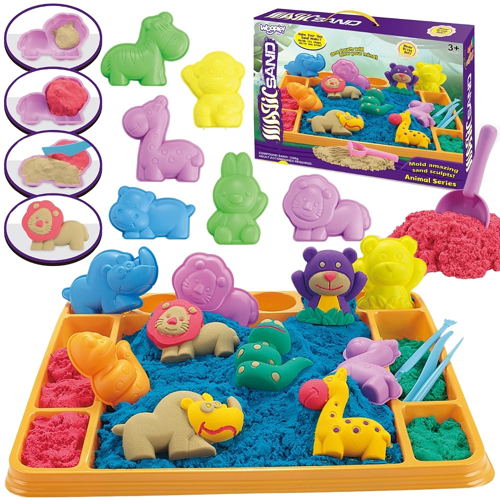 WOOPIE Piasek Kinetyczny Zestaw XL Zoo to idealna propozycja dla dzieci, które uwielbiają kreatywną zabawę w piaskownicę, bez wychodzenia z domu. Ten kompletny zestaw z własnym stolikiem pozwala na stworzenie mini ogrodu zoologicznego w pokoju dziecka. Piasek kinetyczny posiada unikalne właściwości – nie wysycha, nie rozsypuje się i zachowuje swoją plastyczność, co pozwala na wielokrotne formowanie fantazyjnych kształtów. Dzięki dołączonym akcesoriom i dwóm kolorom piasku, zabawa staje się jeszcze bardziej angażująca i realistyczna. Bezpieczeństwo i czystość to kluczowe cechy tego produktu. Piasek nie brudzi rąk, łatwo się sprząta i jest nietoksyczny, co czyni go przyjaznym dla najmłodszych użytkowników. Stolik z nogami zapewnia wygodną pozycję podczas zabawy, a specjalne przegrody pomagają utrzymać porządek wśród foremek i narzędzi. To doskonały sposób na odciągnięcie dziecka od ekranów i zapewnienie mu wartościowej, sensorycznej rozrywki, która pobudza zmysły i uczy cierpliwości.