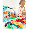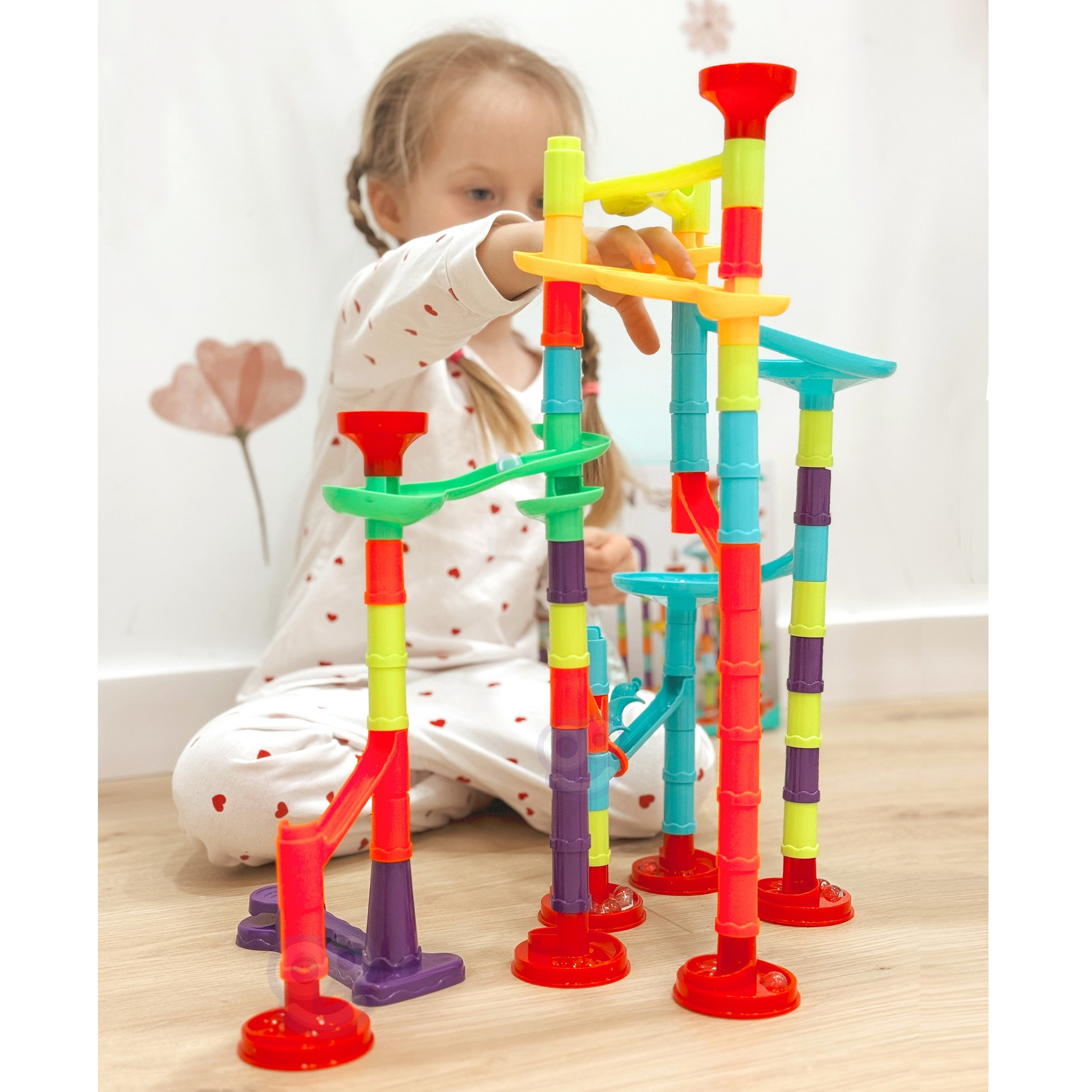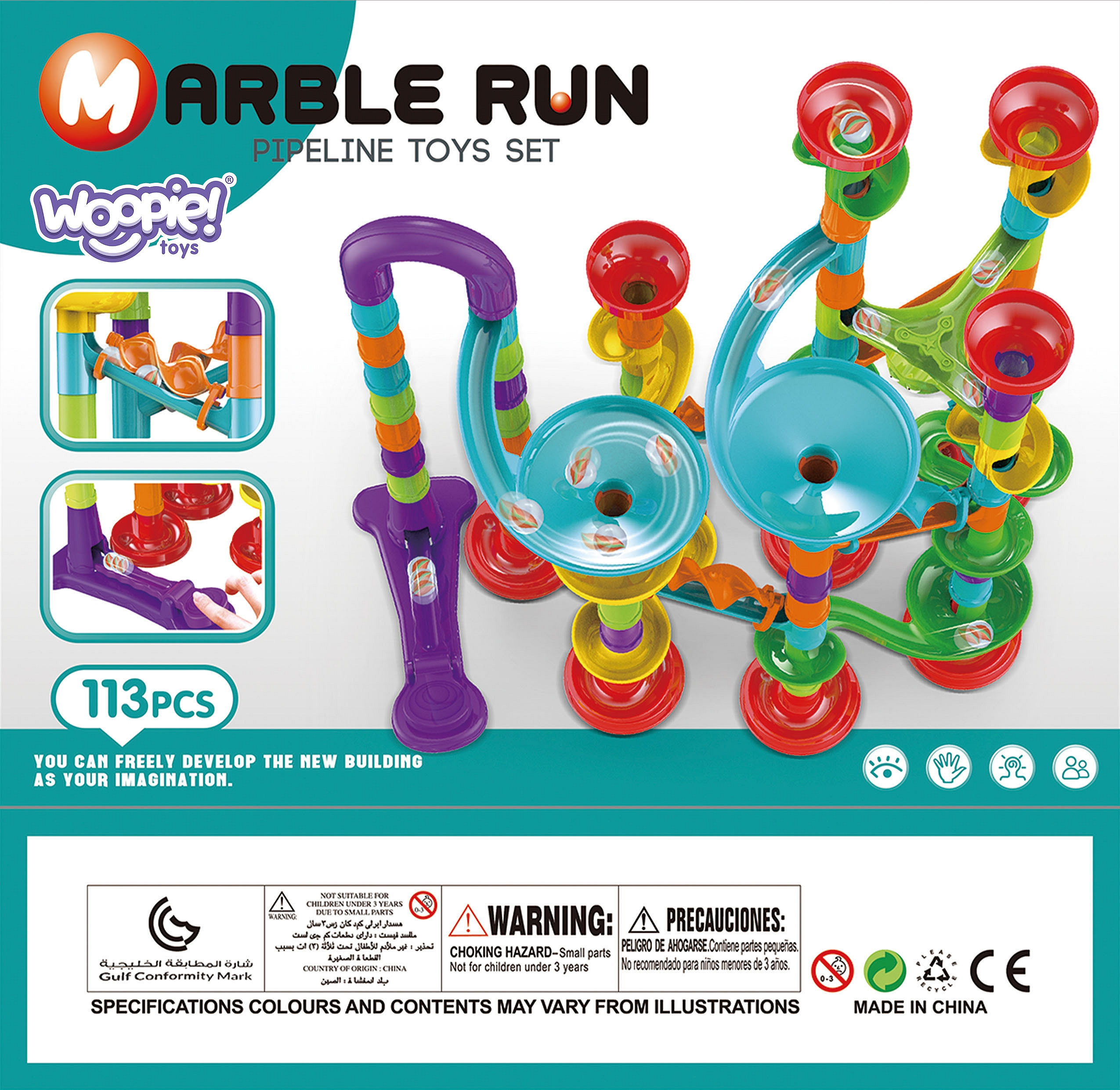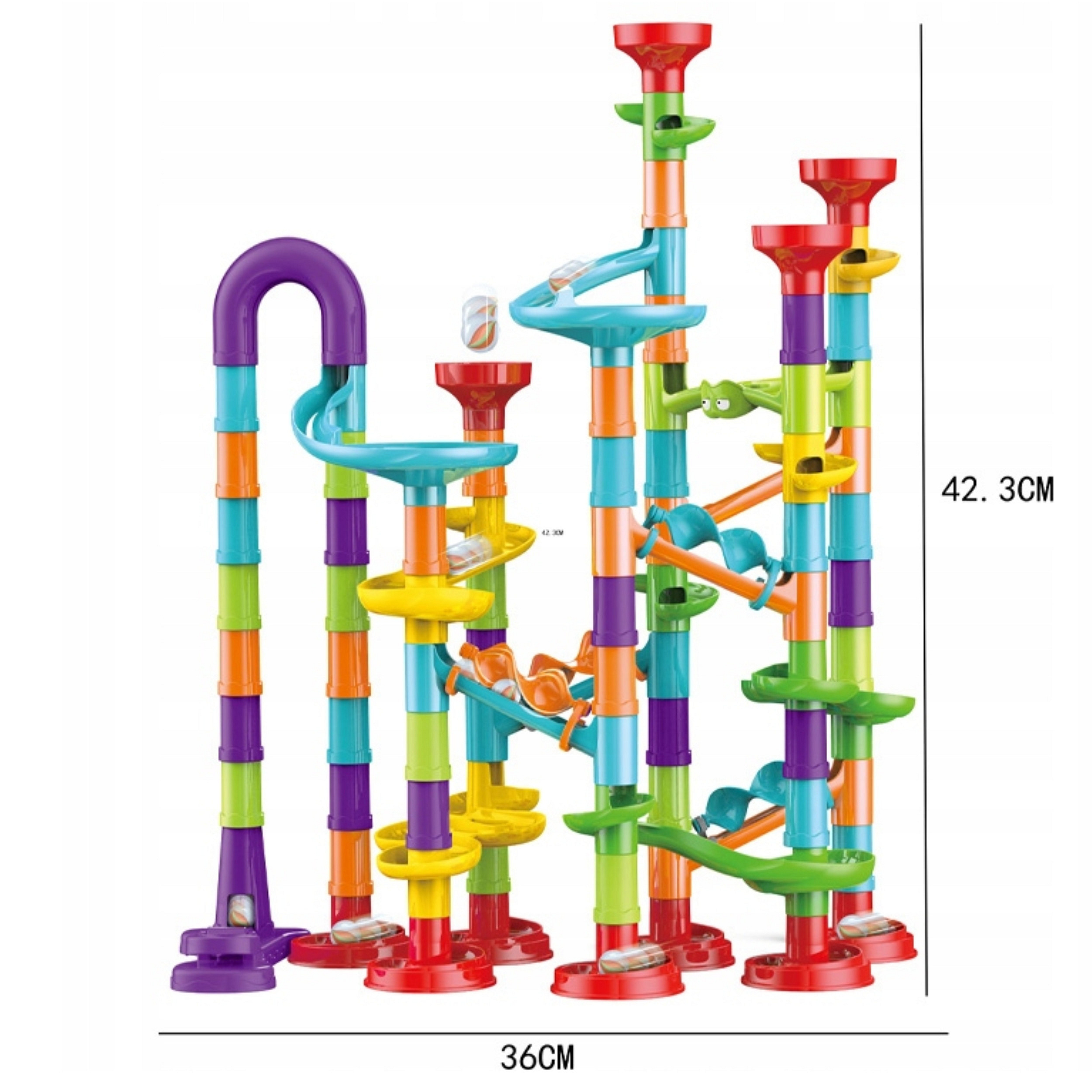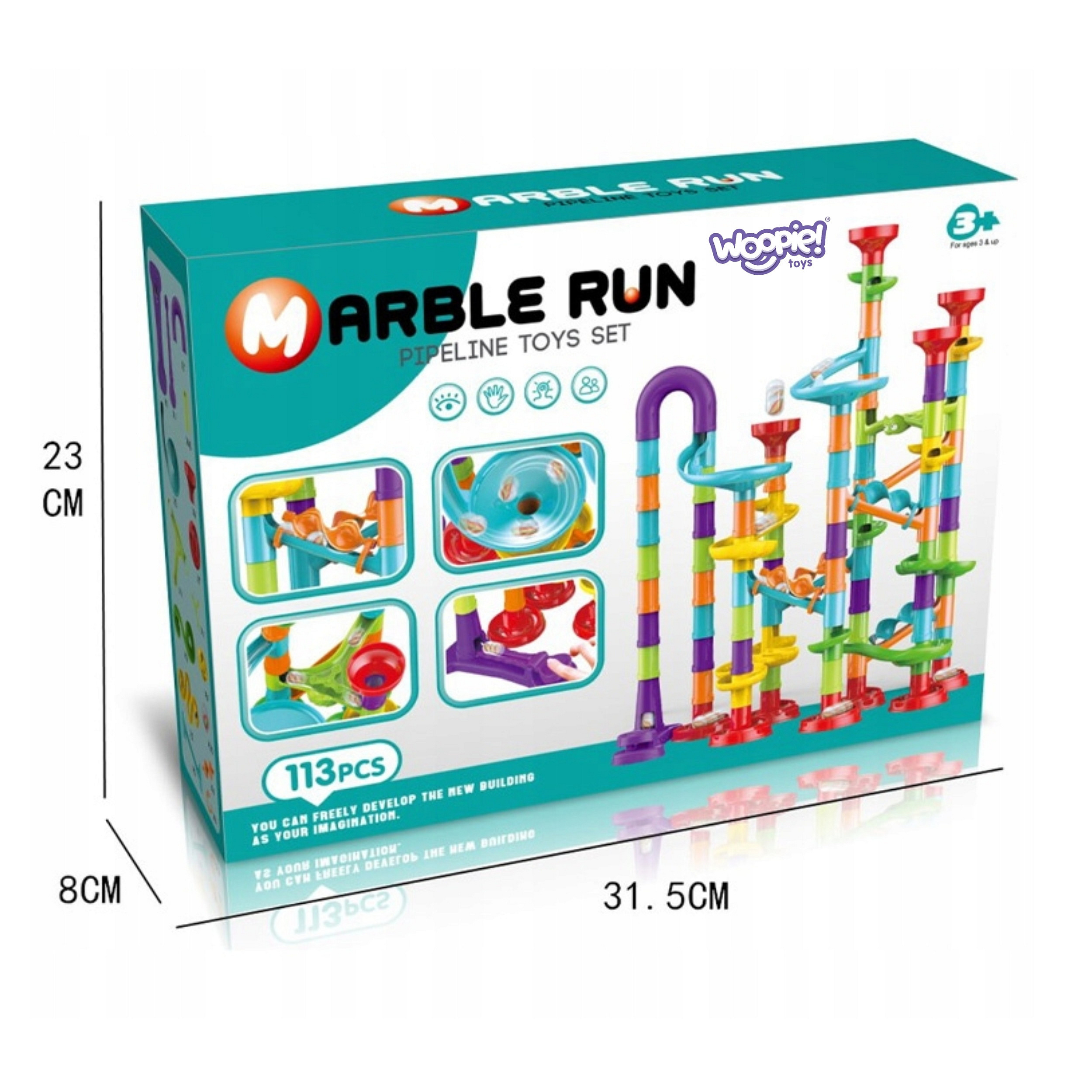 Kulodrom od WOOPIE to spiralny tor zapewniająca niekończącą się zabawę. Ten kolorowy zestaw składa się z wielu różnych kolorowych elementów, które maluch może z łatwością układać jedna na drugiej oraz dowolnie łączyć w wymyślne tory. Dodatkowo z tyłu opakowania znajduje się instrukcja pokazująca przykładowy tor z wykorzystaniem wszystkich elementów. Puszczaj kulki i obserwuj, jak toczą się jedna po drugiej. W zestawie jest aż 113 elementów, w tym np. wyrzutnia i kulki do toru. Rozmiar jest odpowiedni dla małych rączek i pomaga rozwijać koordynację wzrokowo-ruchową.