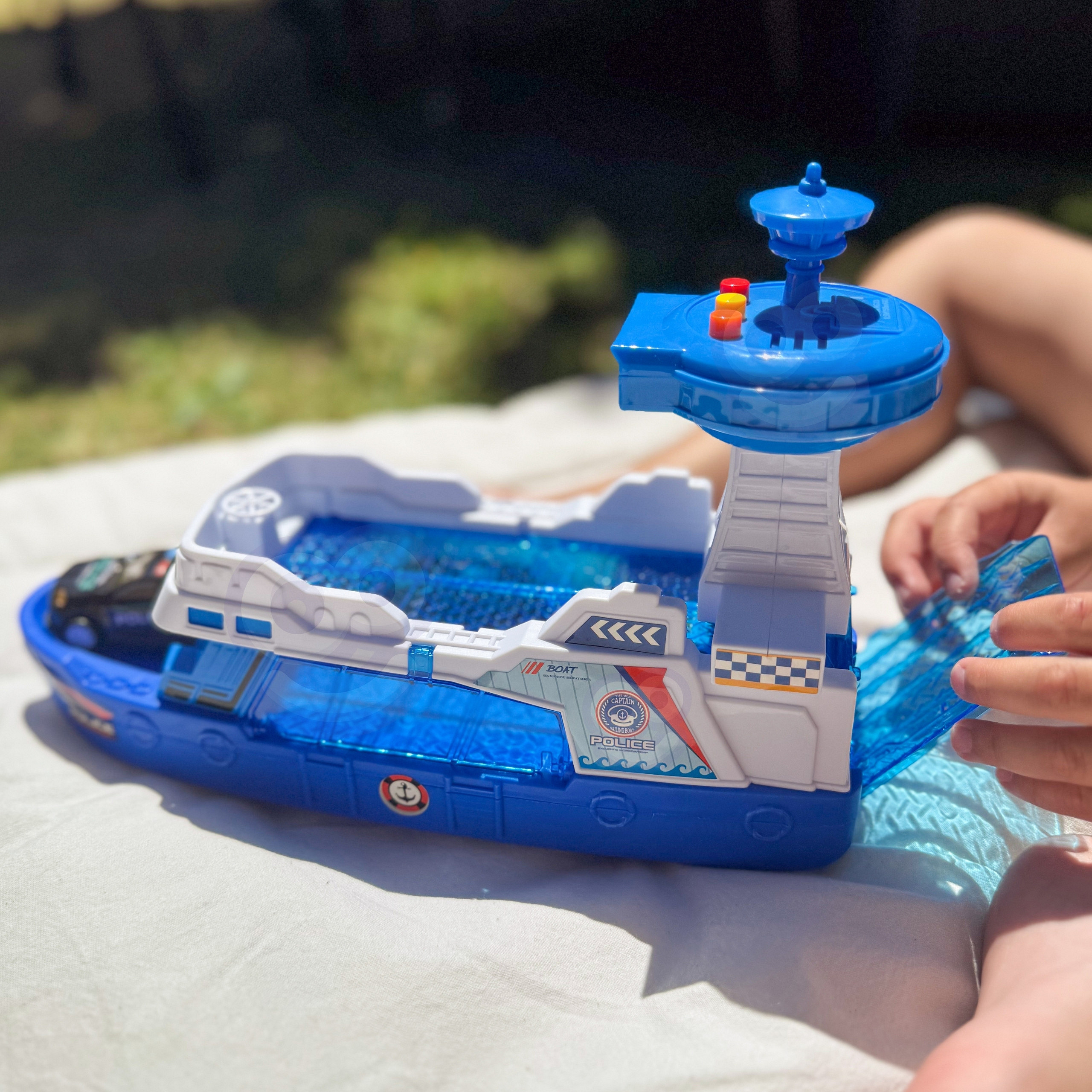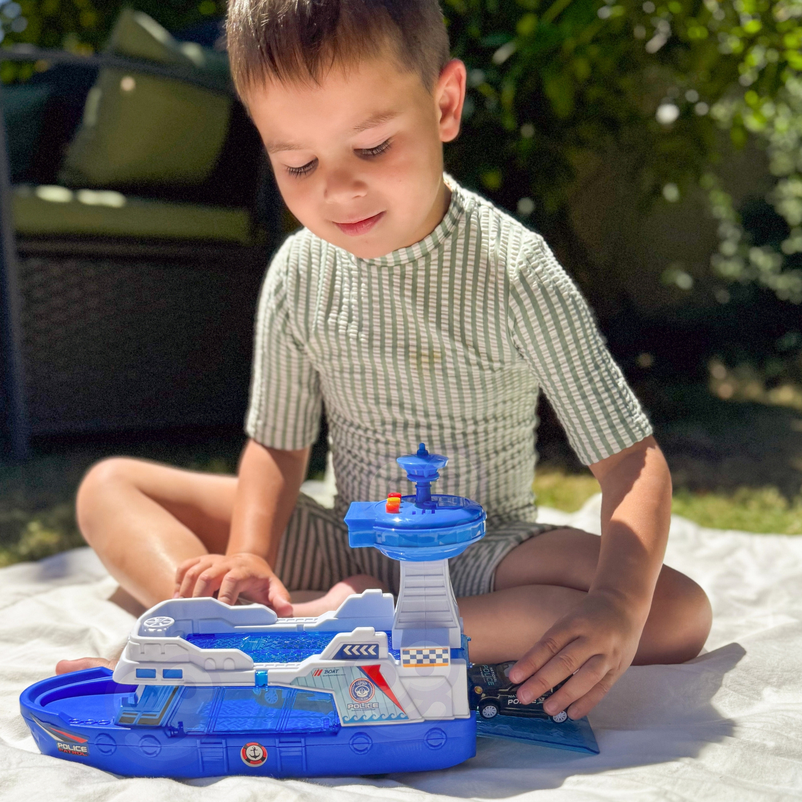 Przenieś się do świata wodnych akcji ratunkowych z policyjną łodzią patrolową od marki Woopie! Ten wyjątkowy zestaw to nie tylko duża, efektowna łódź z ruchomymi elementami, ale także trzy metalowe samochodziki policyjne, które zapewnią mnóstwo emocjonującej zabawy. Realistyczne efekty świetlne i dźwiękowe sprawią, że każda misja będzie jeszcze bardziej ekscytująca. To idealna propozycja dla każdego małego fana służb mundurowych i dynamicznej zabawy!