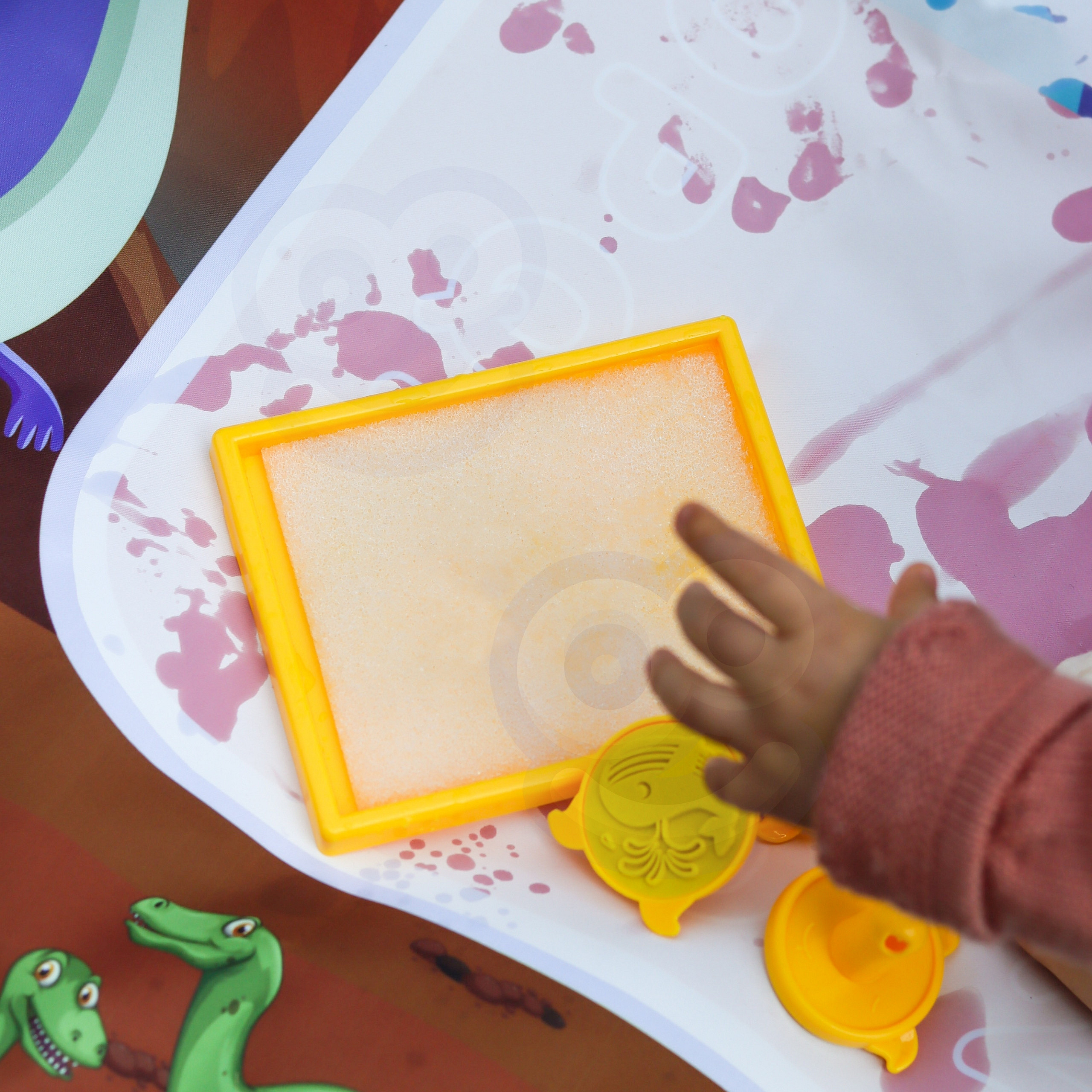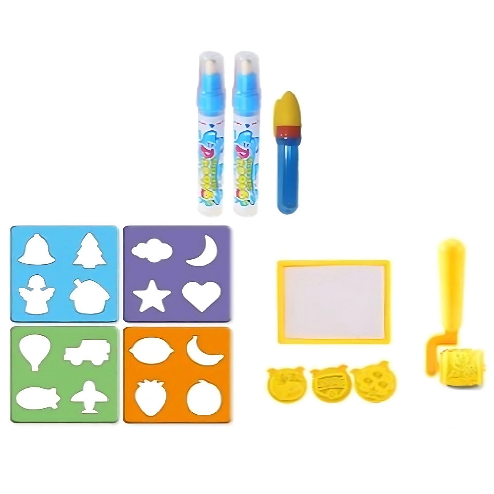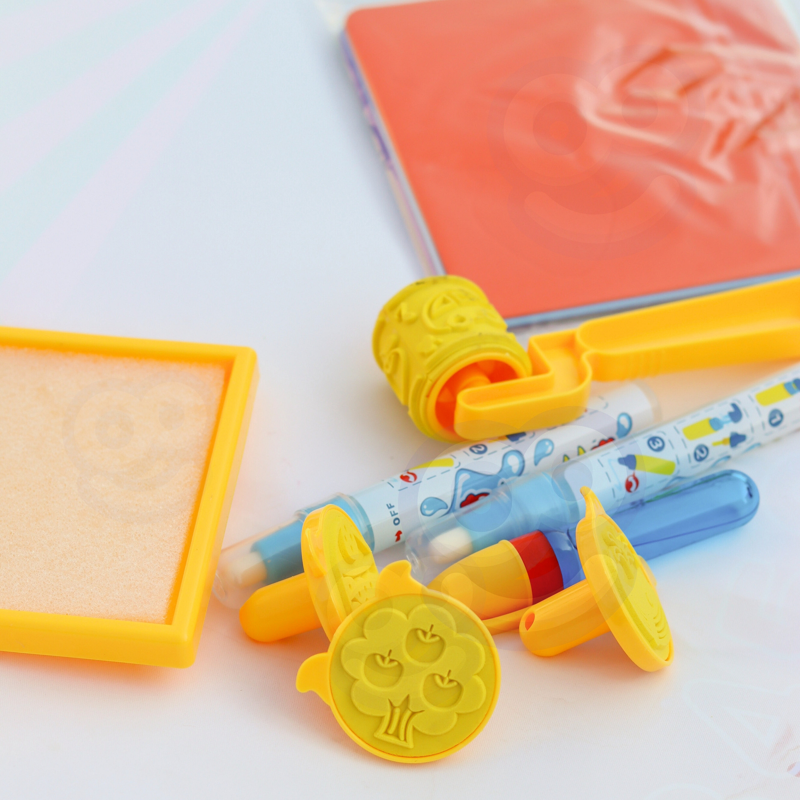 Zestaw zawiera szablony i stempelki, które urozmaicają zabawę i pozwalają tworzyć jeszcze ciekawsze wzory -