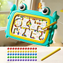 Odkryj fascynujący świat nauki przez zabawę z naszą magnetyczną tablicą edukacyjną w kształcie kraba od marki Woopie! Tablica została zaprojektowana z myślą o wczesnej edukacji i wspiera rozwój sensoryczny, manualny i poznawczy najmłodszych poprzez angażujące aktywności, takie jak sortowanie kulek przy pomocy magnetycznego rysika, nawigacja po labiryncie i trzymanie rysika w prawidłowy sposób. Poprzez układanie kuleczek w poszczególne komory dziecko tworzy proste równania matematyczne, bawiąc się i ucząc jednocześnie. Do ćwiczeń matematycznych można wykorzystać dołączone do zestawu karty z działaniami. Wykonana z wysokiej jakości, bezpiecznych materiałów, gwarantuje trwałość i komfort użytkowania przez wiele godzin aktywnej zabawy. Jaskrawy turkusowy kolor tablicy oraz jej kształt w formie kraba zachęcają malucha do zabawy. Tablica nie wymaga baterii, a dzięki kompaktowym rozmiarom idealnie sprawdzi się zarówno w domu, jak i w podróży.