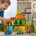 - 12 kwadratowych klocków magnetycznych z motywami dinozaurów i roślinności