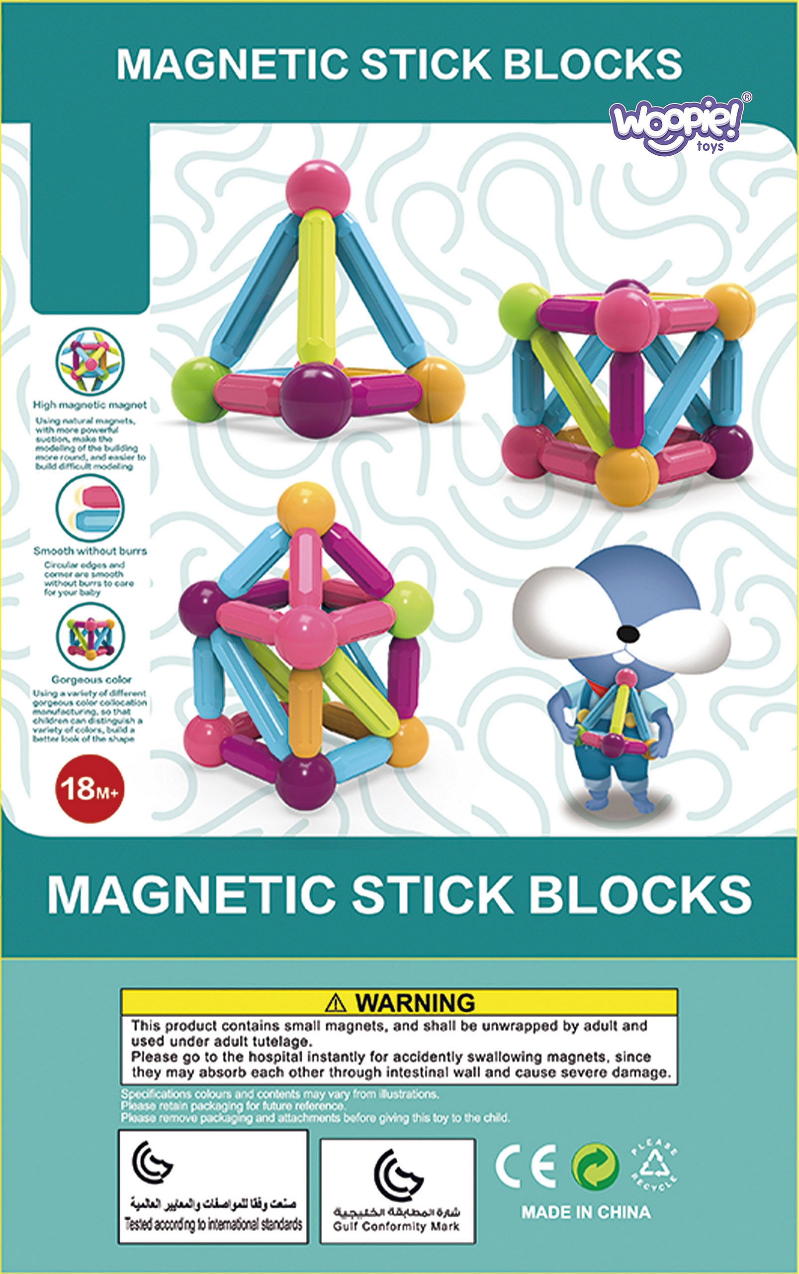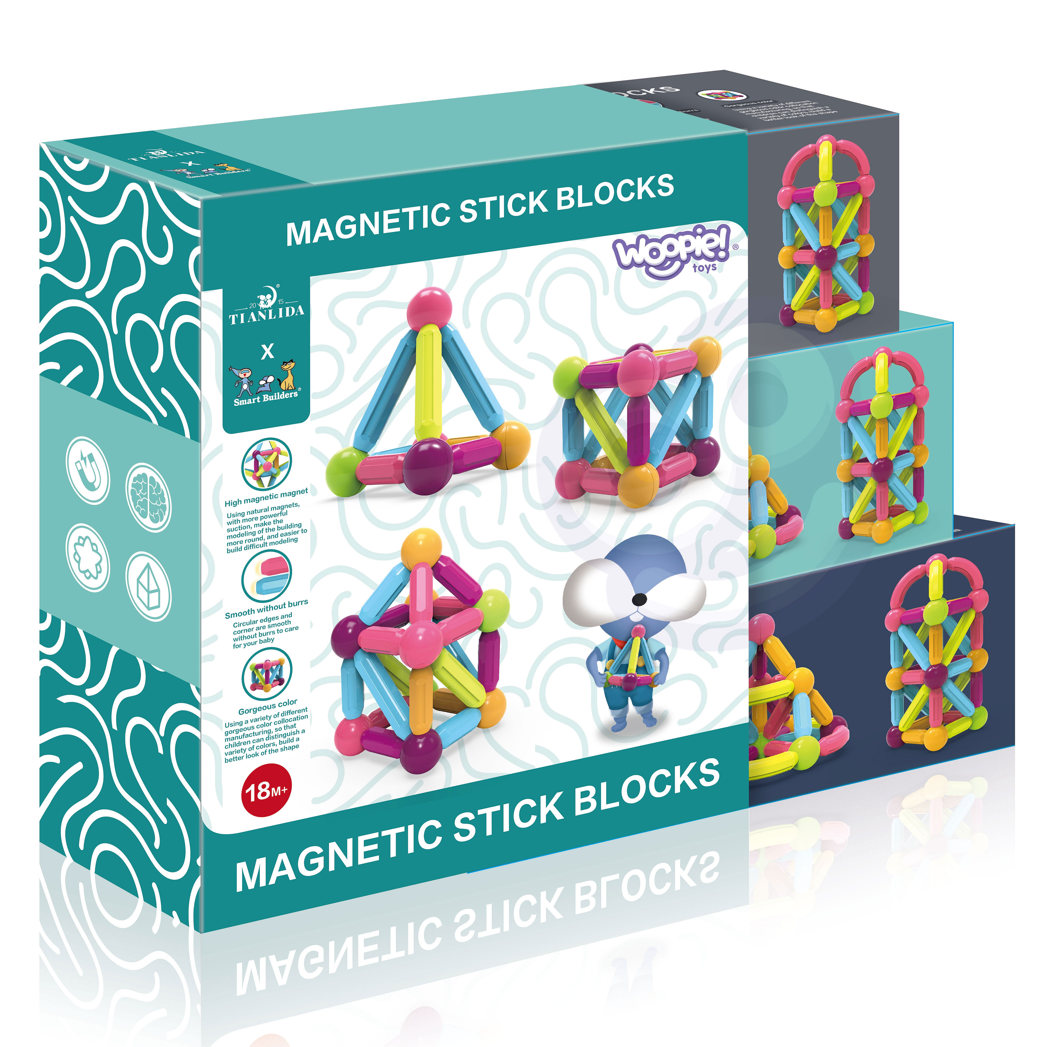 WOOPIE Magnetic Educational Construction Blocks Large Thick 38 pcs.