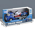 Laweta Police Truck z serii CITY TRUCK pozwoli Twojemu dziecku przenieść się w świat policyjnych przygód i wcielić się w rolę stróża prawa. Wykonany z wysokiej jakości materiałów zestaw składa się z dużej niebieskiej ciężarówki z lawetą, helikoptera oraz samochodu terenowego. Efekty świetlne i dźwiękowe sprawią, że zabawa stanie się jeszcze bardziej realistyczna i emocjonująca. To idealny zestaw do kreatywnej zabawy w domowy komisariat lub akcje ratunkowe.