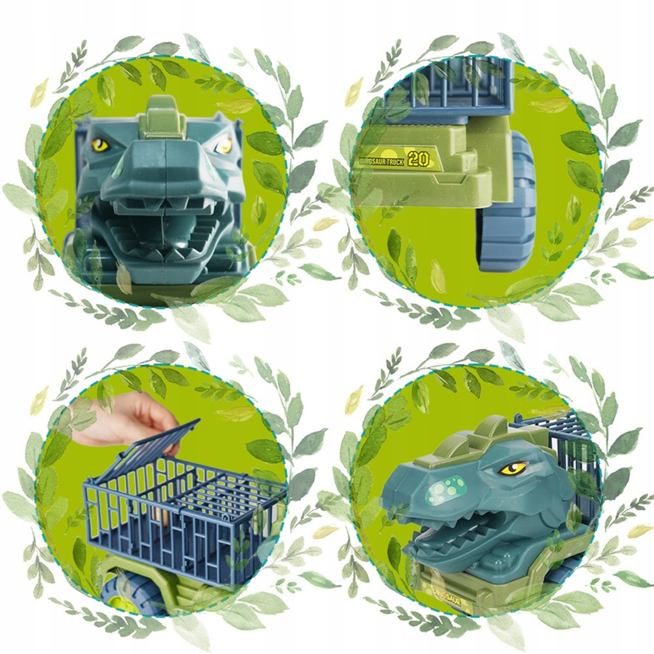 Prezentujemy wyjątkowy Transporter w kształcie dinozaura od marki Woopie — połączenie imponującej ciężarówki z motywem T‑Rex, które przenosi zabawę na zupełnie nowy poziom. Ten duży pojazd to nie tylko transport dla figurek, ale pełnoprawna scena narracyjna, w której dziecko może tworzyć własne przygody jurajskie i motoryzacyjne. Dzięki otwieranym klatkom, detalom w stylu łusek i pazurów oraz przestrzeni ładunkowej, transporter wygląda spektakularnie i angażuje w kreatywną zabawę. Jego zaletą jest solidność konstrukcji i szczegółowe wykonanie. Korpus pojazdu stylizowany jest na skórę dinozaura — z fakturą łusek, efektowną paszczą i grzebieniem grzbietowym. Kolory dobrane są tak, by podkreślać naturalistyczny charakter maszyny, a jednocześnie wyglądać atrakcyjnie w dziecięcym pokoju. Materiały użyte do produkcji są trwałe, odporne na uderzenia i bezpieczne dla dzieci — bez ostrych krawędzi i z zaokrąglonym wykończeniem. Same figurki dinozaurów dołączone do zestawu są lekkie i dopasowane do małych rąk, co pozwala na łatwą manipulację i płynną zabawę. To zabawka, która łączy motyw dinozaura i transportu, stymuluje wyobraźnię, rozwija zdolności manualne, logiczne myślenie i radość z odgrywania własnych historii.