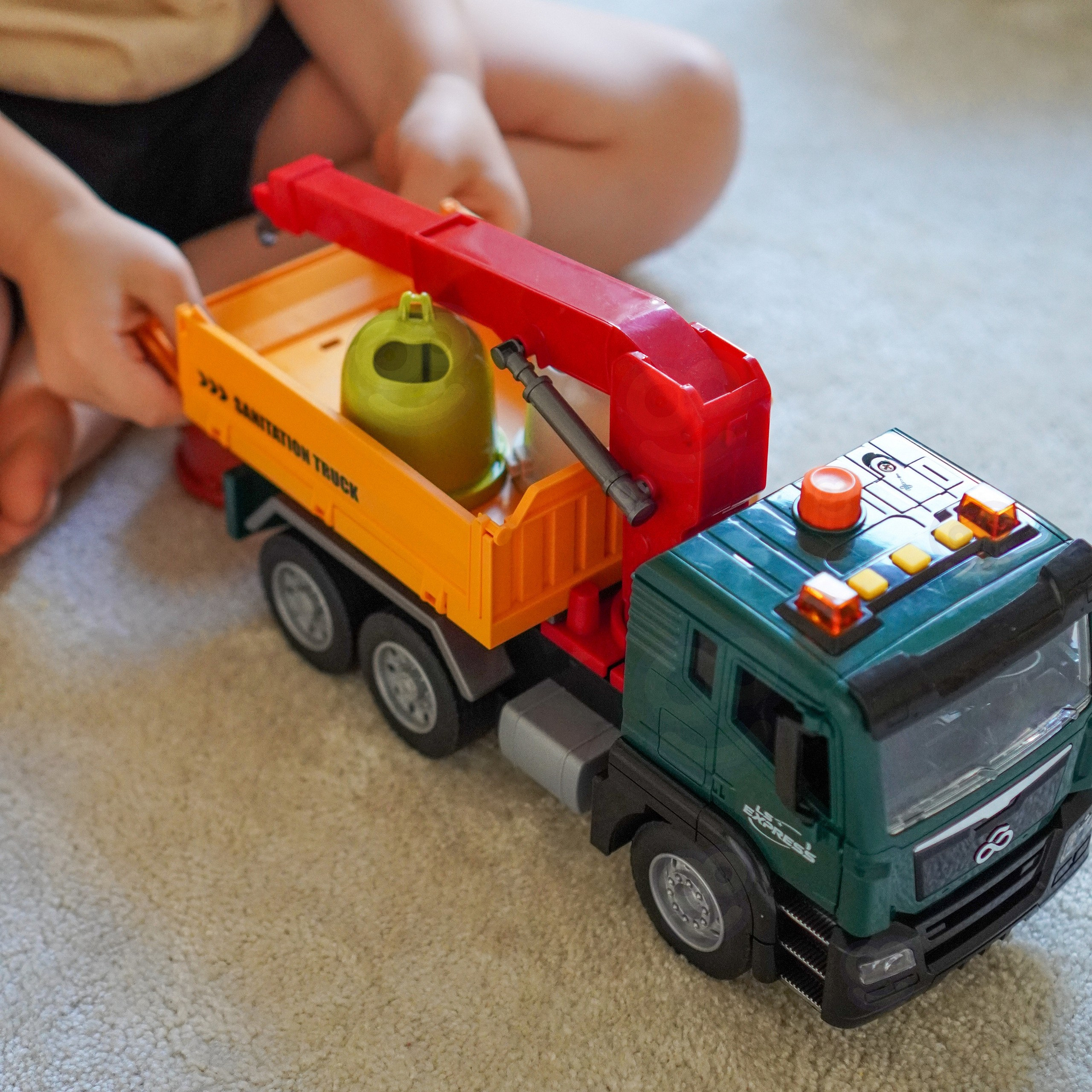Auto Śmieciarka z Dźwigiem – Interaktywna Ciężarówka Komunalna z Koszami na Odpady !
