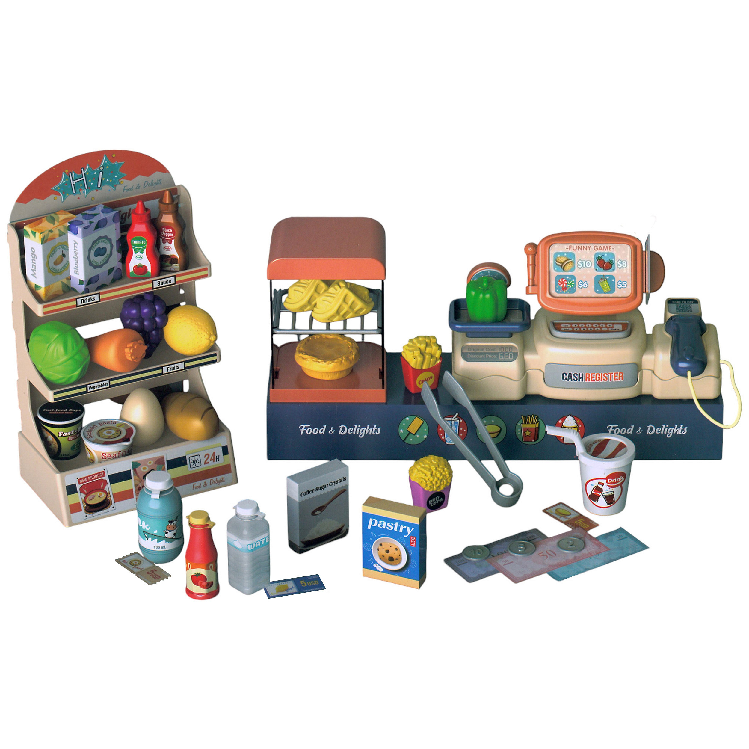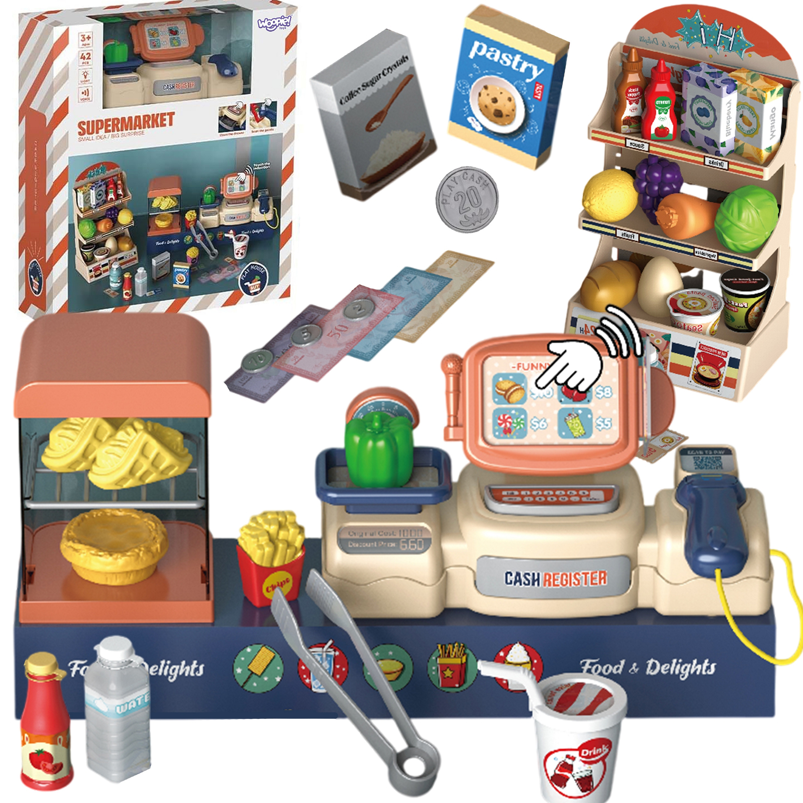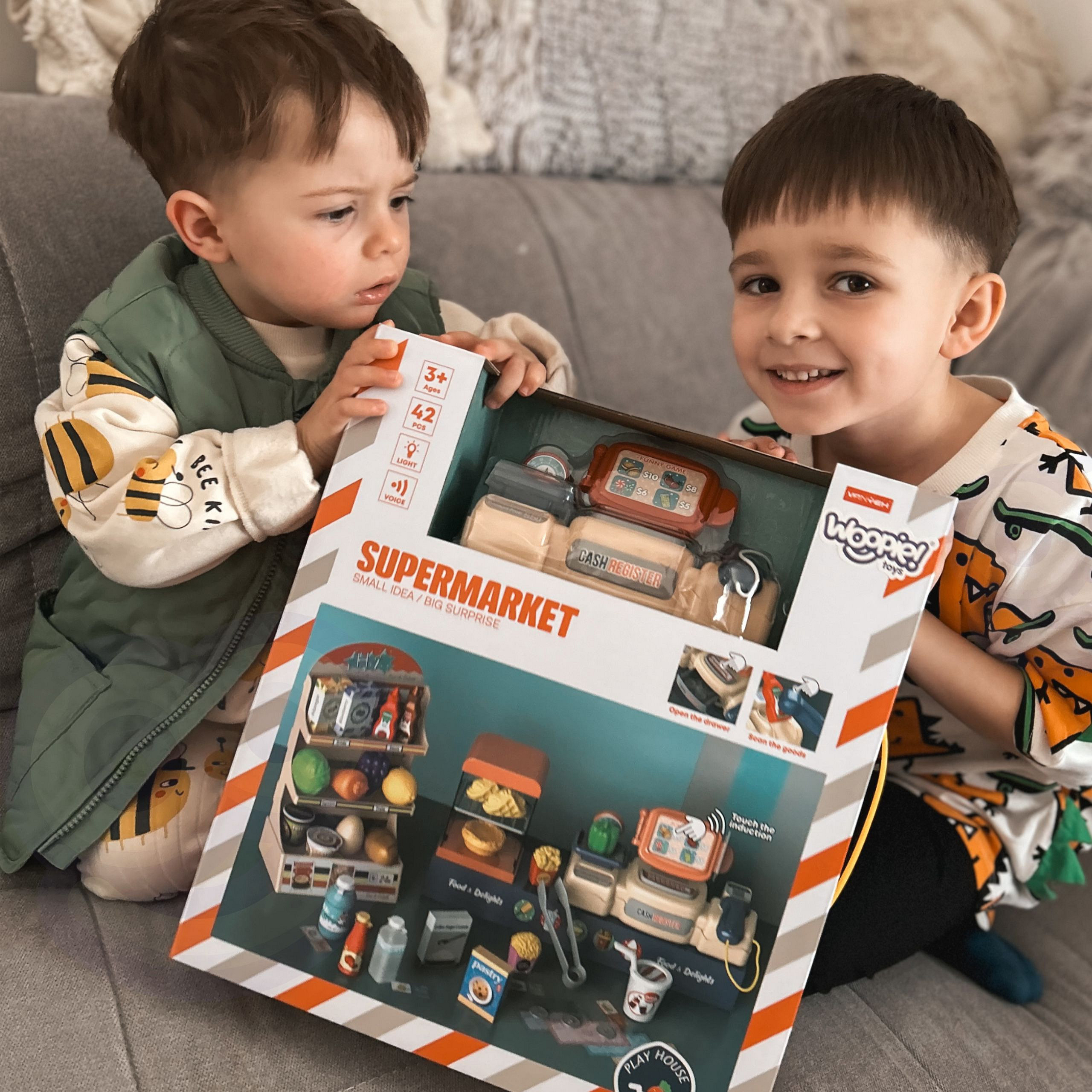 Sklep Supermarket od marki WOOPIE to świetna zabawa dla małych sprzedawców! Dzieci mogą obsługiwać klientów, ważyć produkty i korzystać ze skanera. Zabawa w sklep pomaga rozwijać kreatywność, wyobraźnię oraz zdolności manualne i samodzielne myślenie. Idealny pomysł na wspólne zakupy i mnóstwo frajdy!