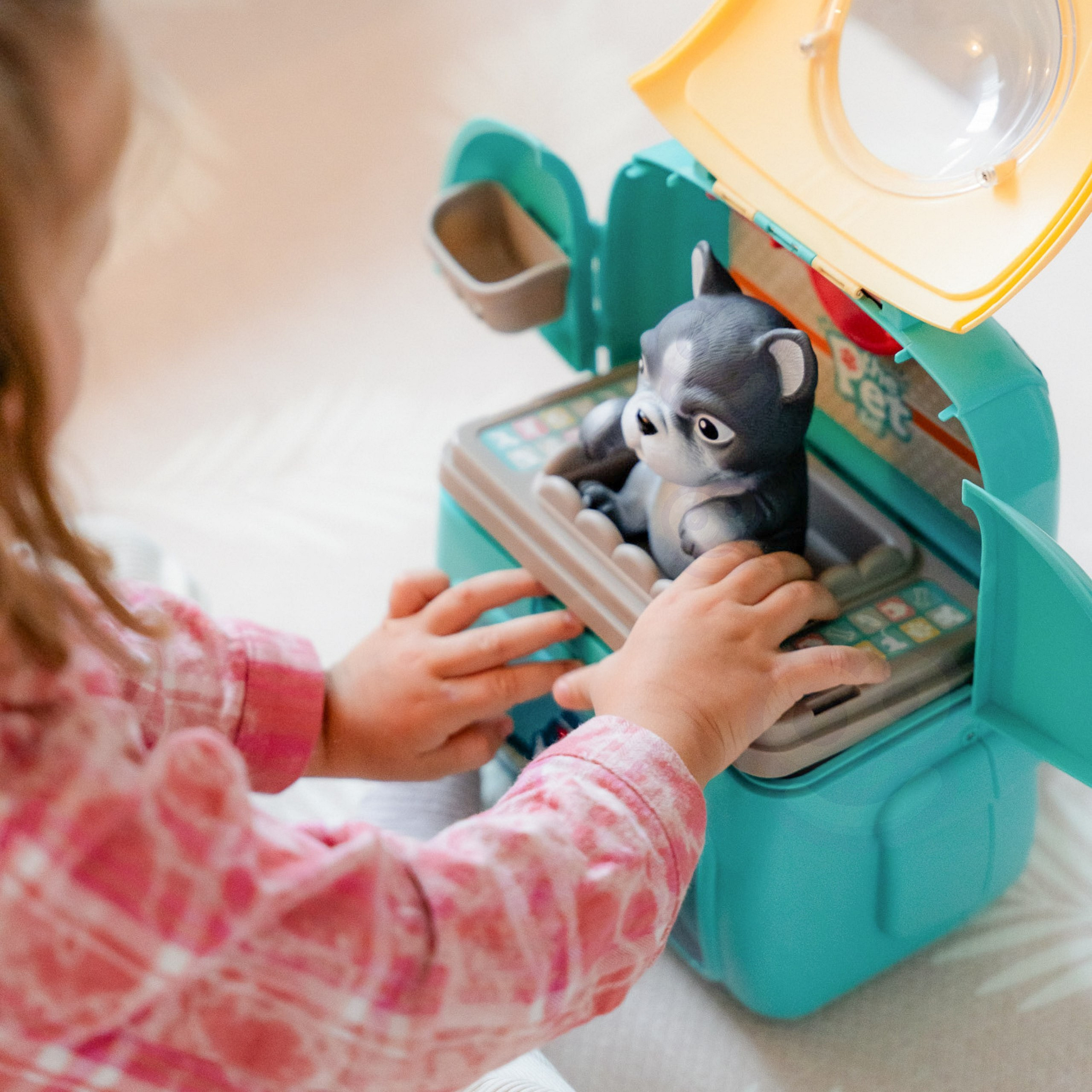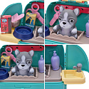 Przenośny Zestaw Pielęgnacyjny dla Pieska od marki WOOPIE pozwoli Twojemu dziecku zadbać o swojego ulubionego pupila. Możesz wszędzie zabrać swojego pieska w wygodnym przenośnym plecaku: w podróż, na plac zabaw czy do przedszkola. Plecak posiada uchwyt do podnoszenia oraz specjalne zamknięcie, które nie pozwoli otworzyć się kabinie podczas noszenia i zapewni maksymalne bezpieczeństwo zwierzakowi. Zestaw pielęgnacyjny 2w1 zawiera: figurkę pieska, plecak, pasek (do zakładania kabiny na plecy), miskę, nożyczki, grzebień, koszyk na akcesoria, 2 pudełeczka na karmę, szampon, zlew, kran, półka i wieszak. Zestaw zawiera wszystko co potrzebne do pielęgnacji pupila. Dziecko może umyć i nakarmić swojego pieska. Dziecko wcielając się w opiekuna lub weterynarza rozwija swoją wyobraźnie oraz poczucie empatii. Możliwe, że zabawka będzie początkiem do rozwinięcia pasji i drogi do zostania weterynarzem.