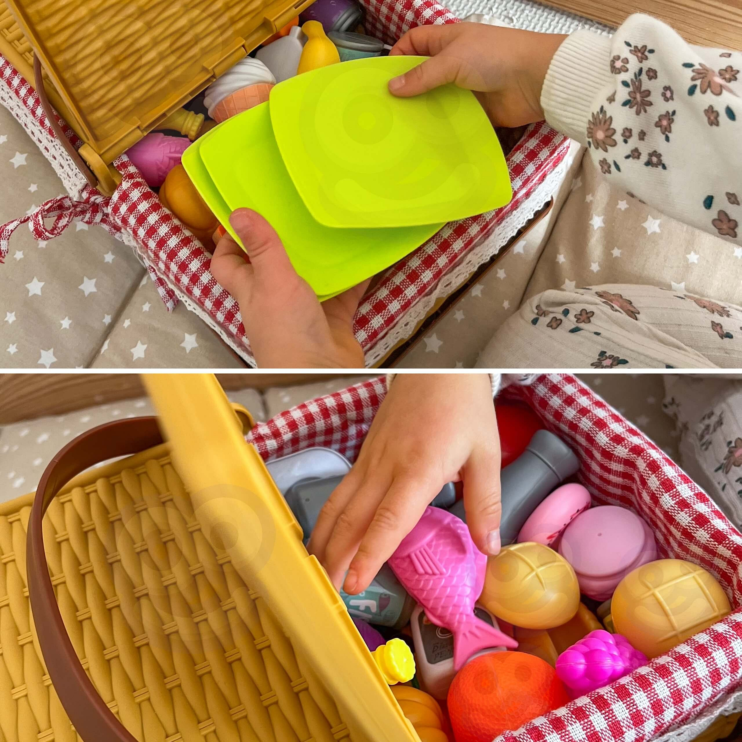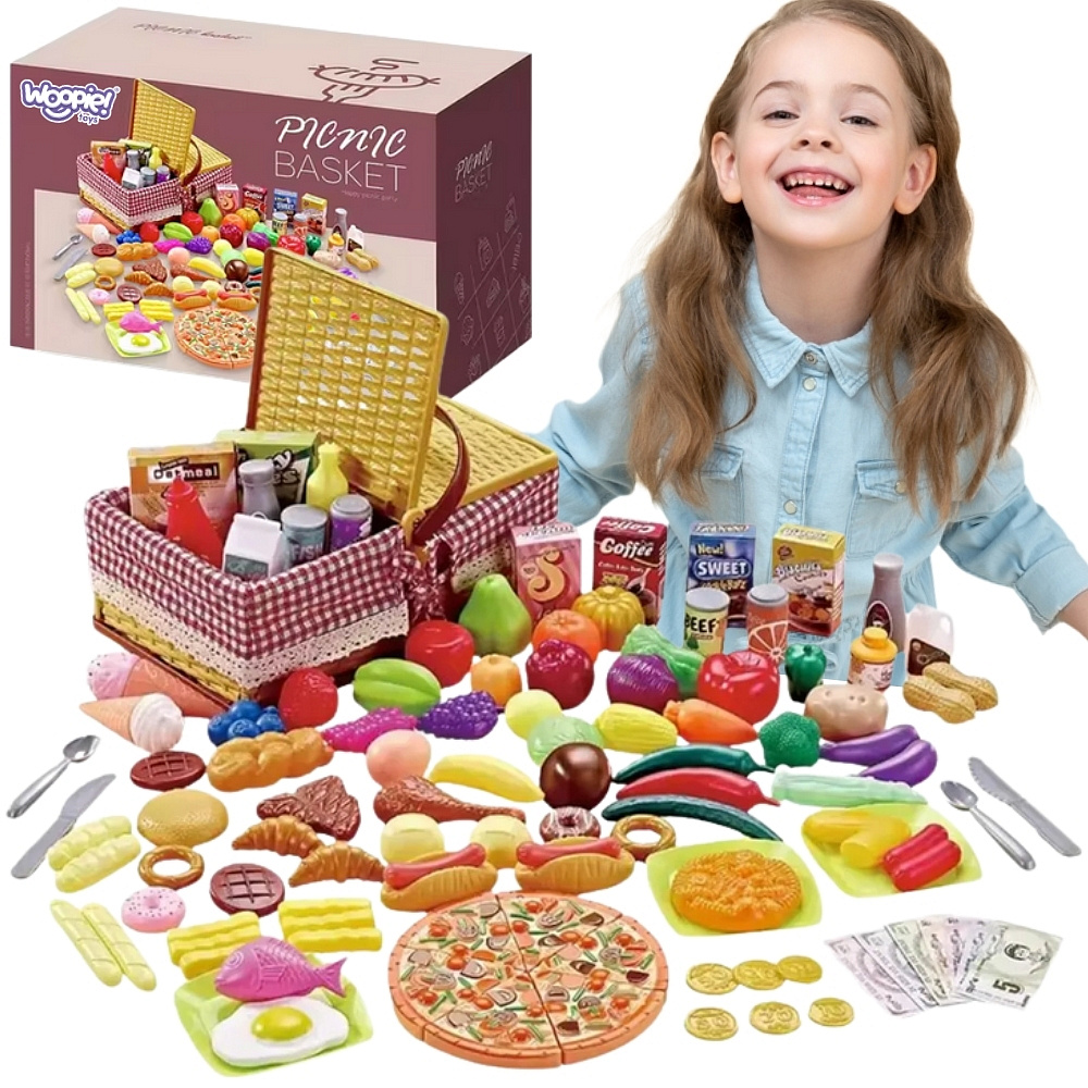 Kosz piknikowy dla dzieci od marki Woopie to prawdziwa gratka dla małych miłośników zabawy w dom, sklep czy gotowanie! To doskonała zabawka do wspólnego spędzania czasu z rodziną! Zabierz koszyk do ogrodu, na taras, plażę czy piknik w parku i zorganizuj małe przyjęcie pod gołym niebem. Dzieci mogą samodzielnie rozkładać jedzenie, przygotowywać posiłki dla misiów i lalek lub częstować rodziców pizzą i deserem. Zestaw ten przenosi dziecko w świat odgrywania ról, interakcji społecznych i kulinarnych przygód, jednocześnie wspierając jego rozwój. Wspólne posiłki na świeżym powietrzu, nawet w formie zabawy, uczą kultury jedzenia, dzielenia się i rozwijają wrażliwość społeczną. Dzięki aż 103 realistycznym elementom, zabawa staje się niesamowicie różnorodna i inspirująca. Zestaw zapakowany jest w uroczy koszyk piknikowy z rączką i zamykanym wieczkiem, który swoim wyglądem przypomina klasyczny wiklinowy kosz – ozdobiony czerwono-białą kratką i koronkową tasiemką . Jest łatwy w złożeniu i rozłożeniu, dzięki czemu doskonale sprawdzi się zarówno w domu, jak i w podróży. Całość została wykonana z trwałych, bezpiecznych materiałów, które spełniają wszystkie normy bezpieczeństwa dla dzieci. Dzięki temu zestawowi Twoje dziecko może bawić się samotnie lub z rodzeństwem i przyjaciółmi, ucząc się dzielenia, planowania posiłków i podstawowych zasad handlu.