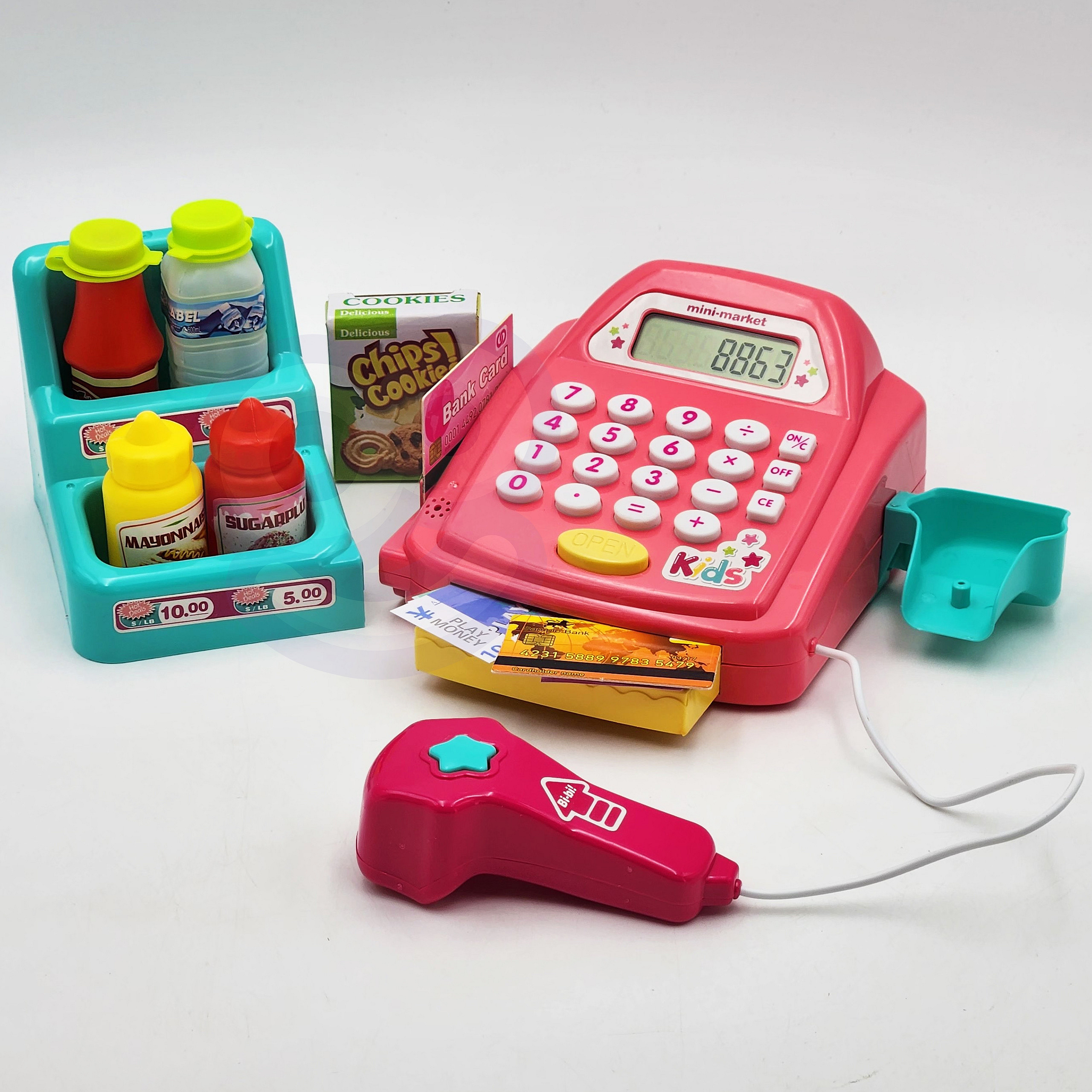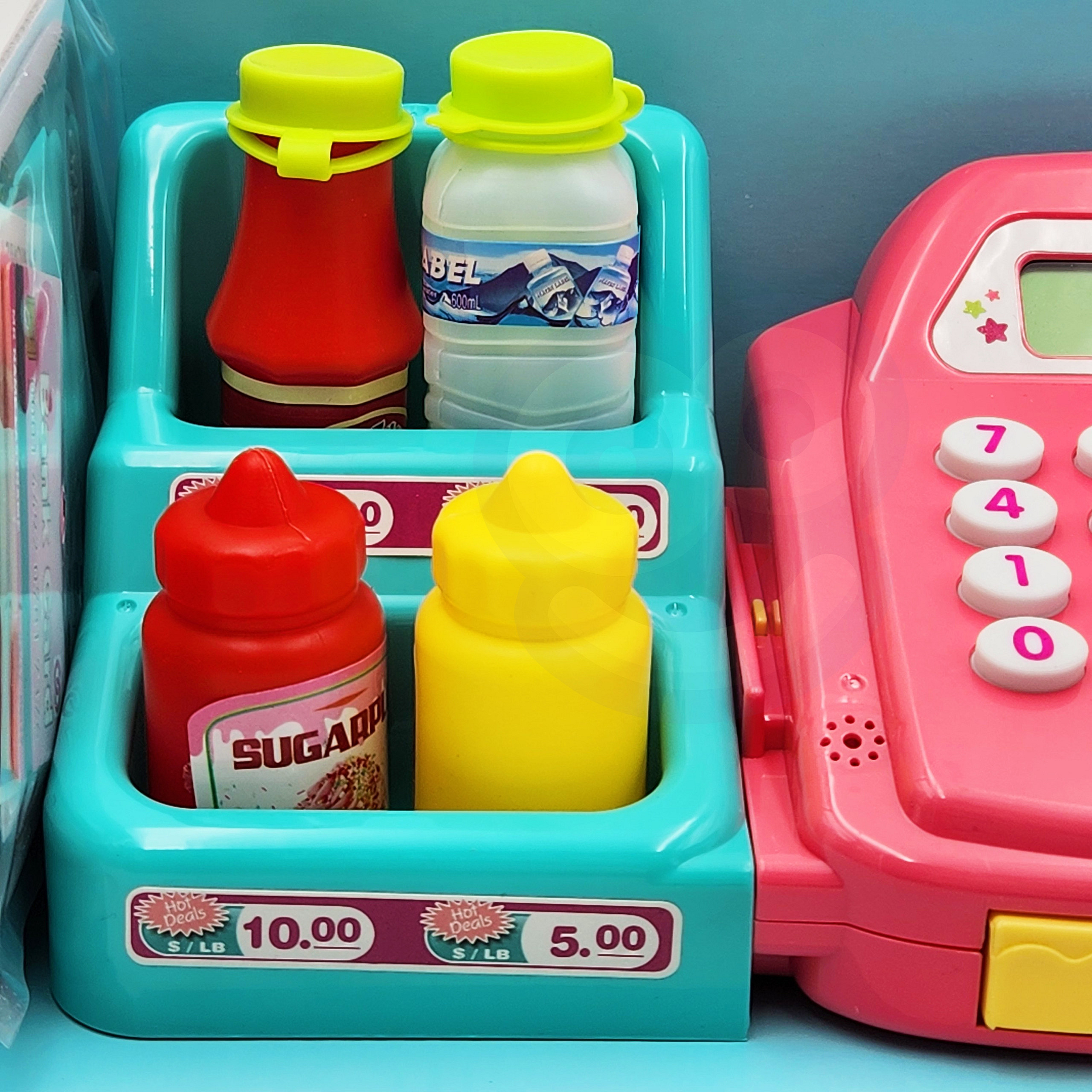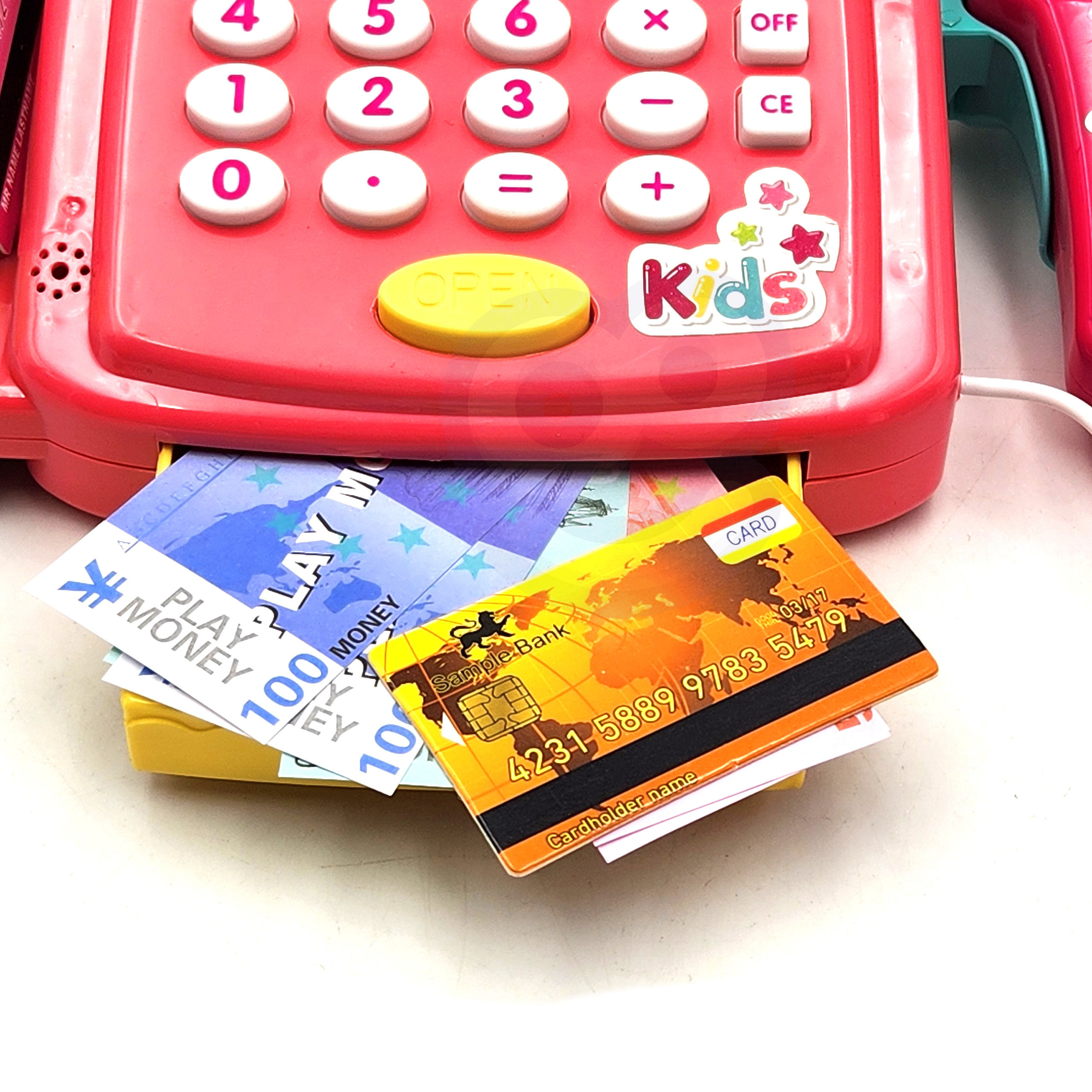 - - kasę sklepową z kalkulatorem i otwieraną kasetka na przechowywanie pieniążków
