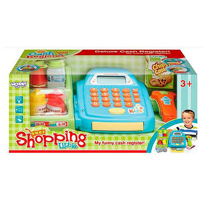 Kasa sklepowa z Półką od marki WOOPIE to idealna propozycja zabaw. Dzieci mogą wybrać produkty, które chcą kupić, a następnie nabić je na kasę. Przy pomocy czytnika zeskanują ciasteczka i inne produkty. Następnie kupujący może zapłacić pieniążkami lub kartą płatniczą.