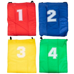 - - 4 trwałe worki do skakania w żywych kolorach (czerwony, zielony, żółty, niebieski)