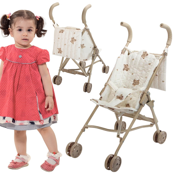 Roztomilý kočárek pro panenky od značky Woopie je ideální hračka pro každou malou holčičku, která ráda pečuje o své milované panenky a medvídky. Lehká, skládací konstrukce činí kočárek pohodlným na používání a snadno přenosným. Měkké sedátko v krémové barvě s roztomilým vzorem medvídků mu dodává jedinečný charakter a vybízí ke hře. Kočárek se ideálně hodí jak pro použití doma, tak i během procházek na čerstvém vzduchu. To je skvělý způsob, jak rozvíjet empatii, představivost a pečovatelské dovednosti dítěte.
