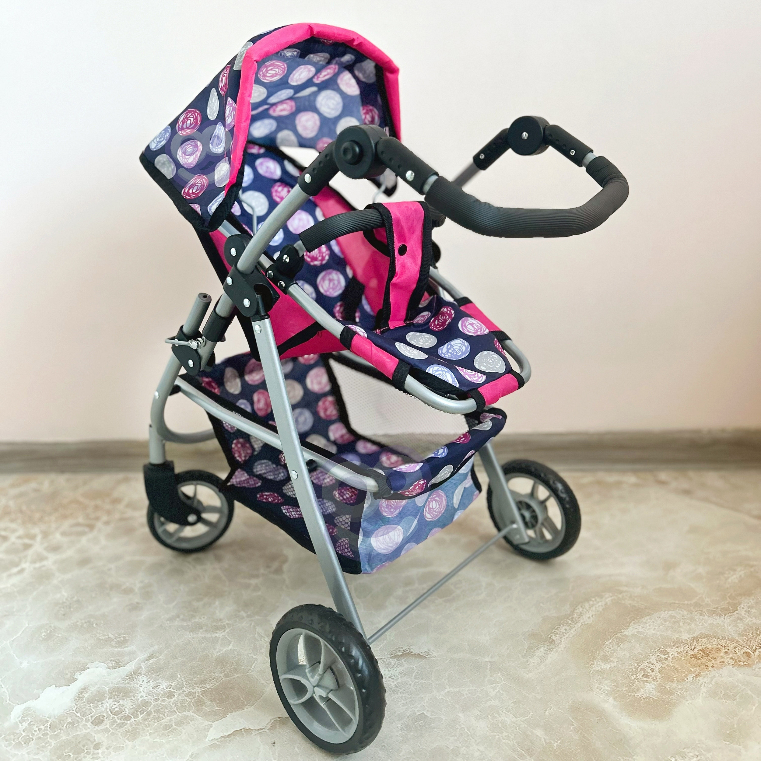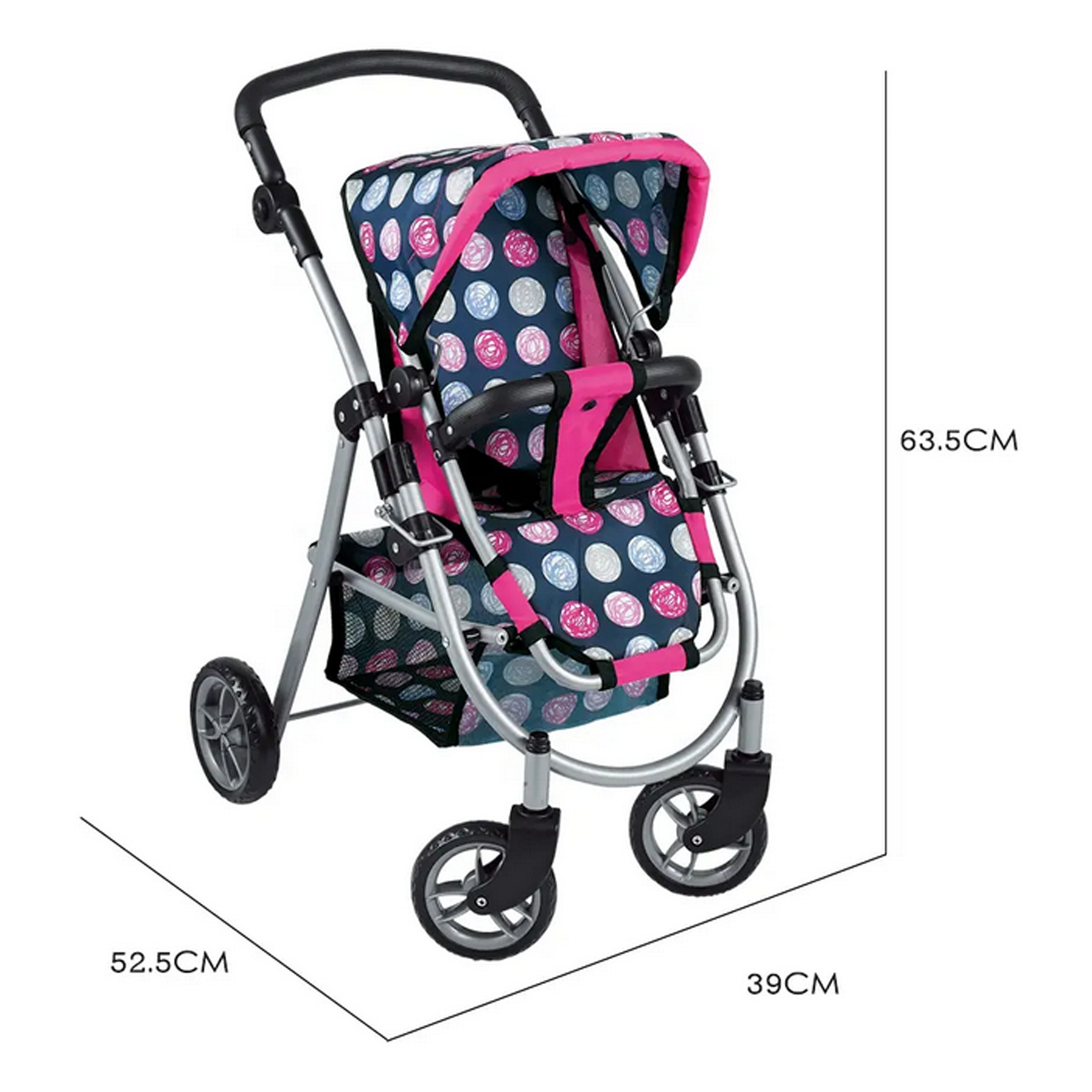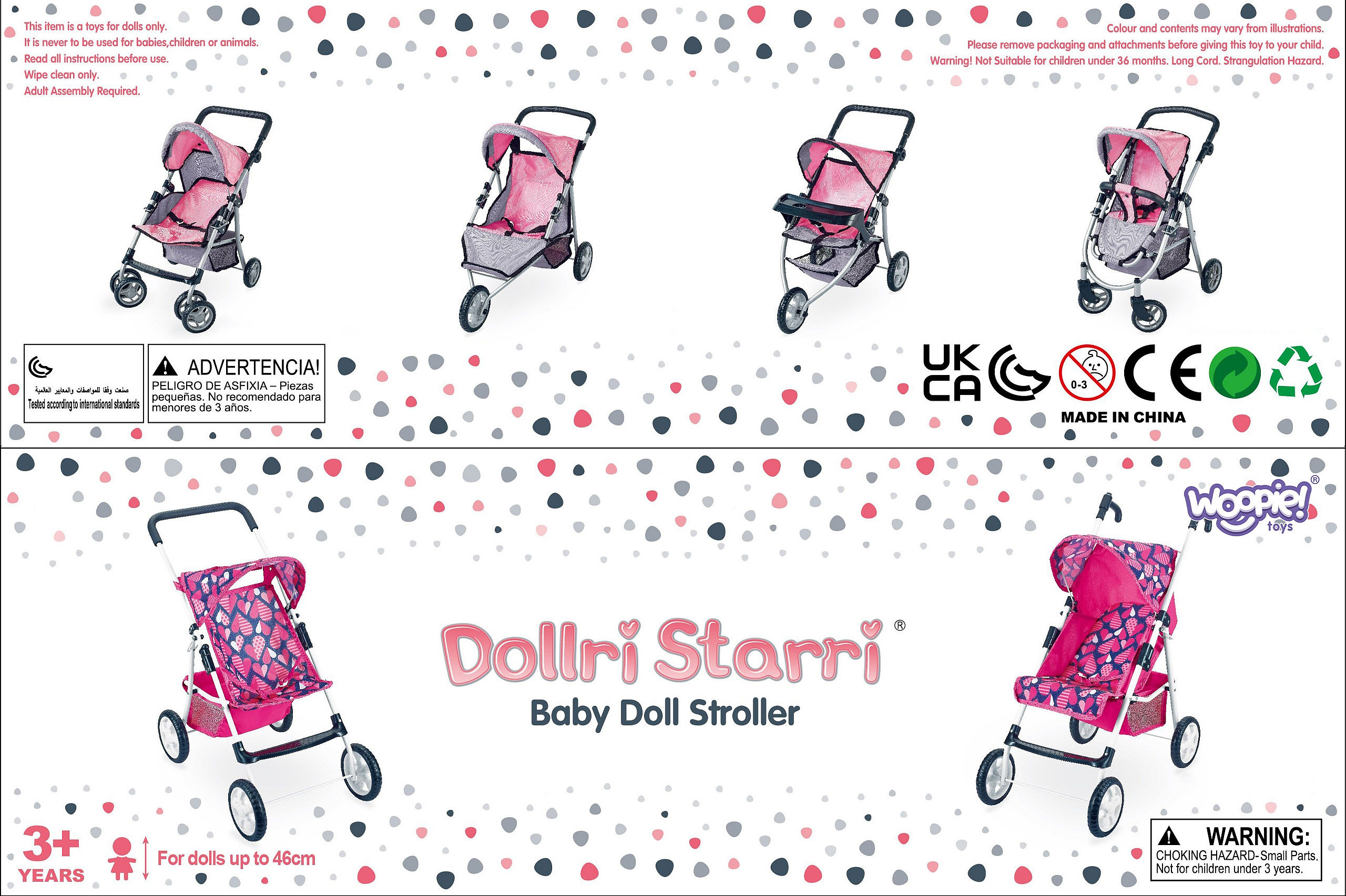 Stylový a funkční kočárek pro panenky od značky WOOPIE je vysněným dárkem každé malé milovnice hry s panenkami. Díky nastavitelnému sedadlu jej lze snadno přizpůsobit různým potřebám hry, což umožňuje přepravu oblíbených panenek. Otočná přední kola zaručují plynulost řízení a pevná konstrukce zajišťuje stabilitu během procházek. Kočárek je vybaven měkkou, pohodlnou rukojetí a prostorným košíkem na doplňky, který pojme všechny drobnosti nezbytné během hry. Skládací stříška chrání panenky před "sluncem" a kompaktní konstrukce zajišťuje, že kočárek lze snadno uložit, když hra skončí.