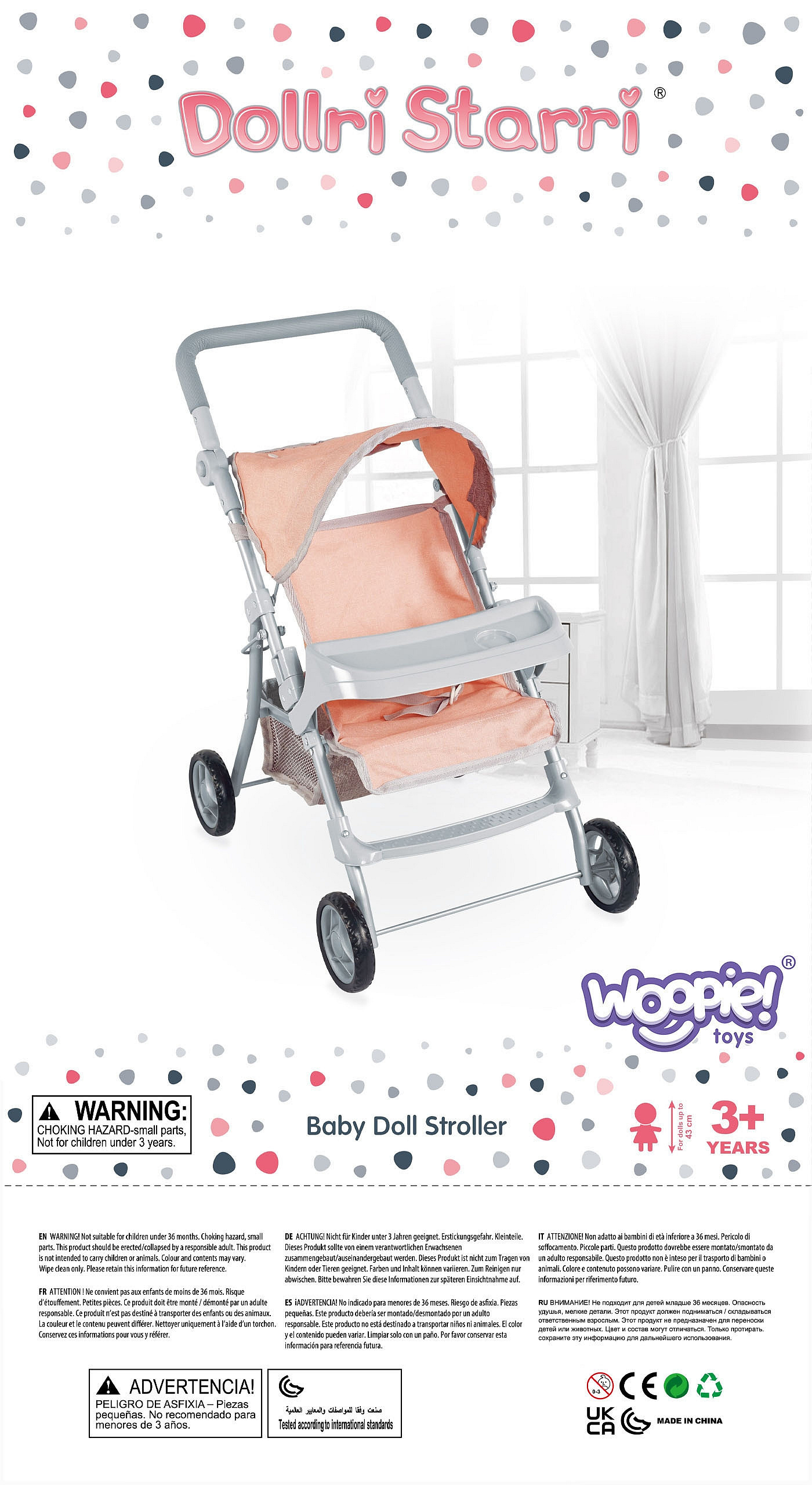 Wózek dla lalek marki Woopie to idealny wybór dla każdej małej miłośniczki zabawy w dom. Wyróżnia się lekką, ale bardzo stabilną ramą, co zapewnia wygodę i bezpieczeństwo podczas użytkowania. Wyposażony w podnóżek, budkę chroniącą przed słońcem, pasy bezpieczeństwa oraz praktyczny koszyk na drobiazgi, gwarantuje pełną funkcjonalność i komfort. Dodatkowo posiada miękką rączkę, która ułatwia prowadzenie, oraz ciche, przyczepne piankowe koła, idealne zarówno do domu, jak i na spacer. Po zakończonej zabawie wózek można łatwo złożyć, co pozwala zaoszczędzić miejsce podczas przechowywania. Stylowy design czyni go wyjątkowym dodatkiem do każdej lalki.