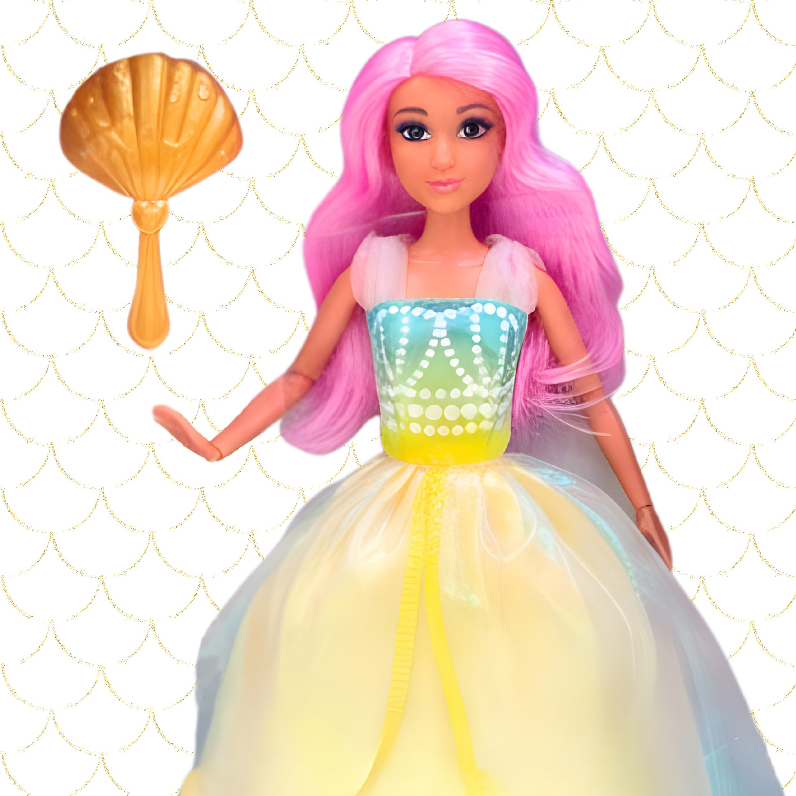 Poznaj uroczą Księżniczkę Lily od marki Woopie– lalkę inspirowaną podwodnym światem syrenek. Jej długie, różowe włosy zachęcają do czesania i tworzenia fantazyjnych fryzur. Błyszcząca, pastelowa suknia w odcieniach morskiej piany sprawia, że wygląda jak prawdziwa księżniczka z oceanu. W zestawie znajduje się złoty grzebień w kształcie muszli oraz elegancki pierścionek, które dopełniają stylizacje. To doskonały prezent dla dzieci od 3 lat, który rozwija wyobraźnię i pozwala tworzyć niezliczone, bajkowe historie.
