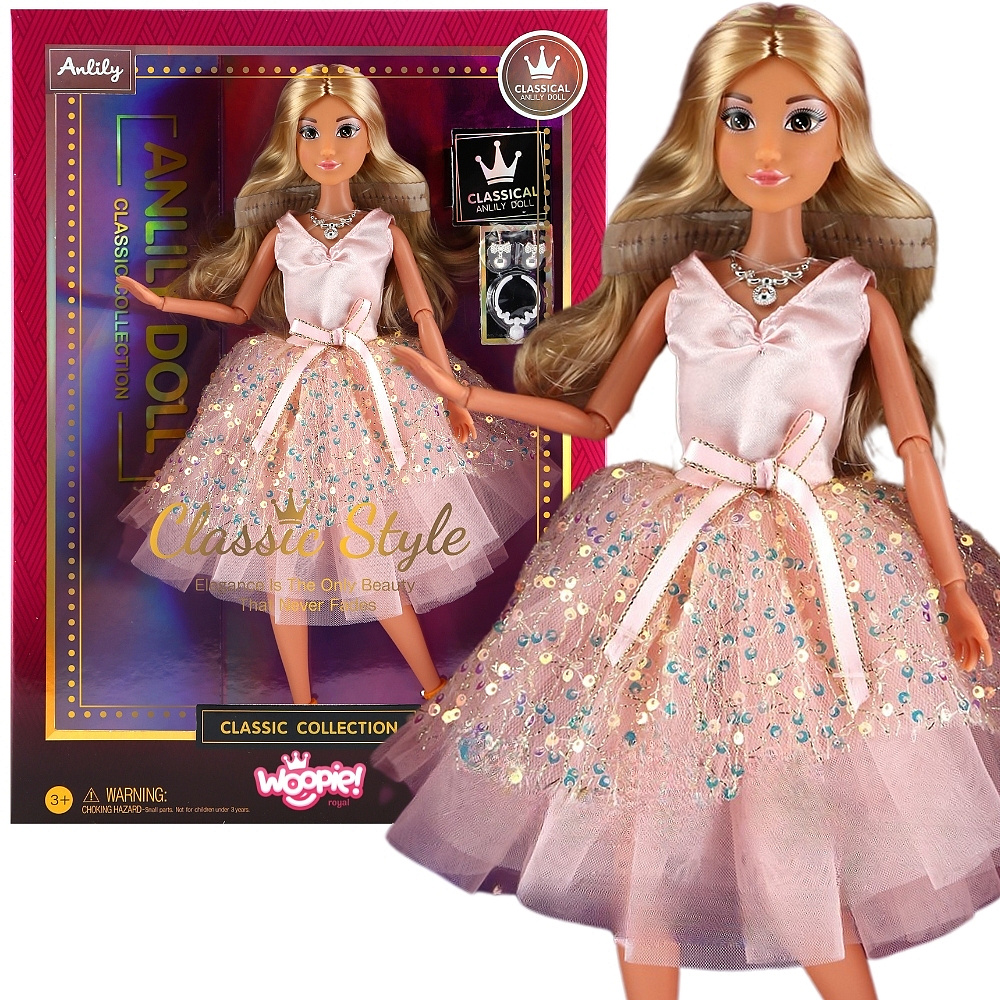 Poznaj wyjątkową lalkę Lily marki Woopie, która zachwyci każdą małą miłośniczkę elegancji i balowych kreacji! Ta urocza 30-centymetrowa lalka prezentuje się zjawiskowo w delikatnej sukni z połyskiem różu, delikatnym tulem i uroczy koralikami. Długie, złociste włosy Lily do ramion kuszą do nieskończonych stylizacji i tworzenia bajkowych fryzur, a modne dodatki – delikatny naszyjnik, kolczyki i eleganckie buciki dopełniają jej wyjątkowy image.