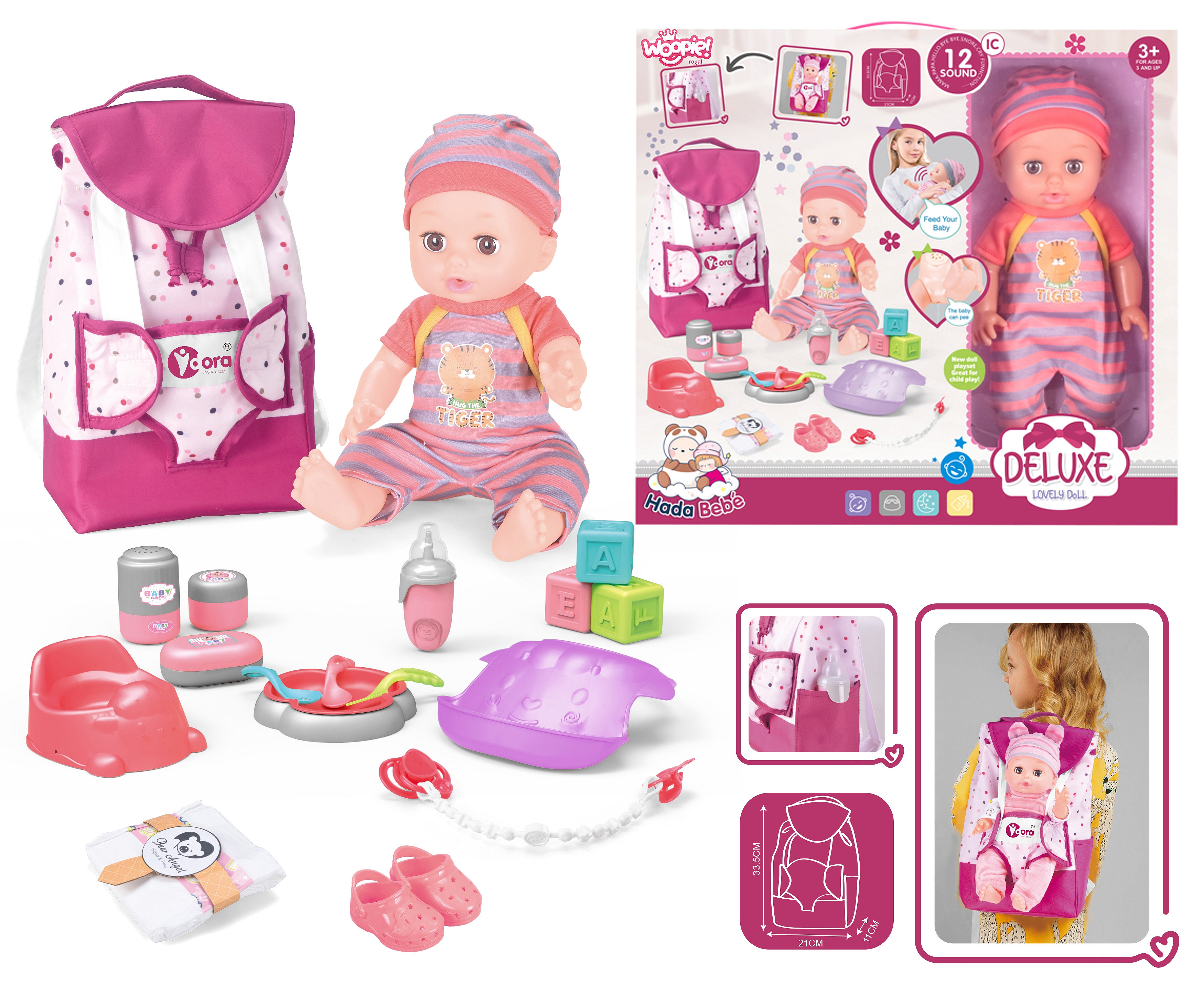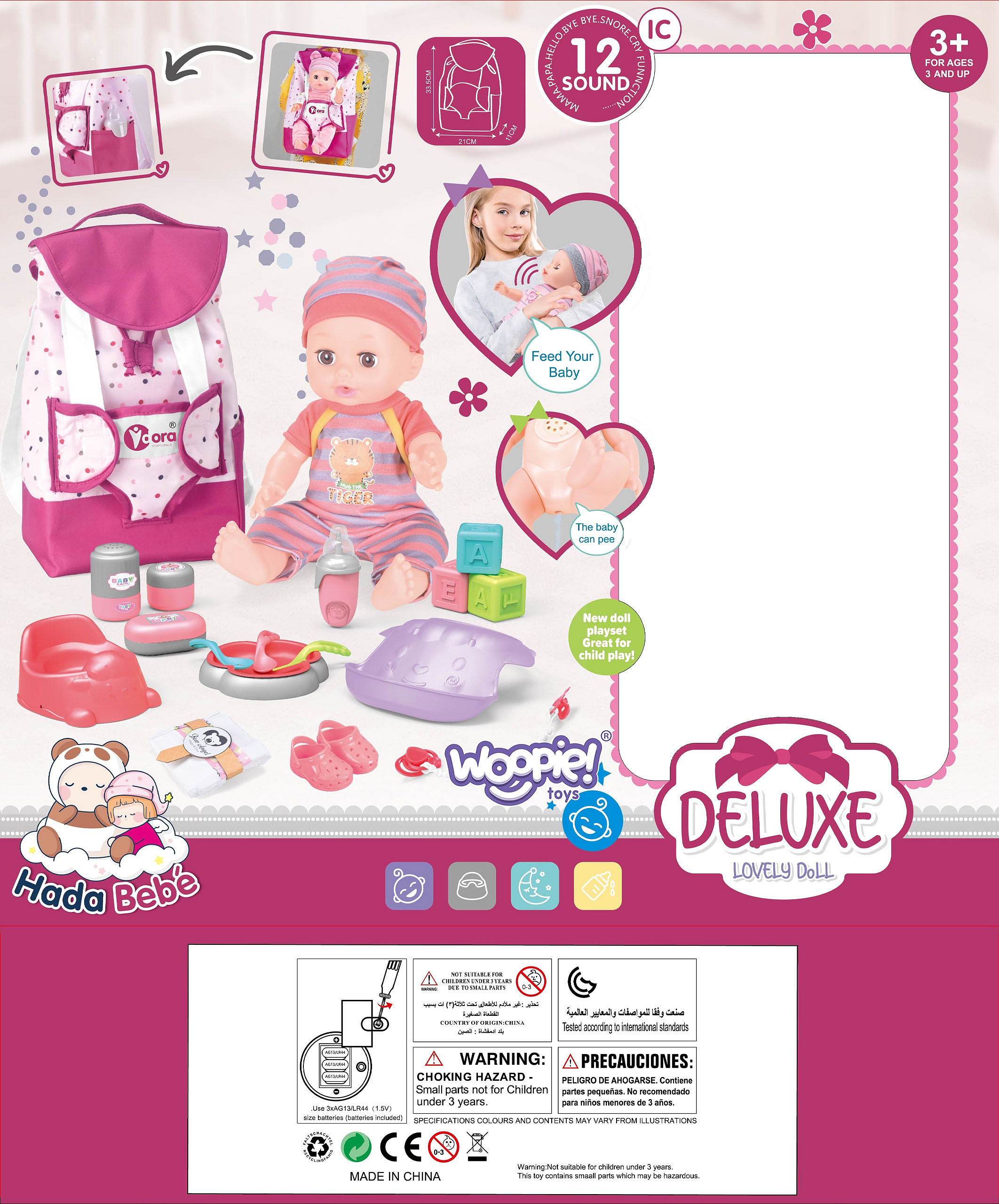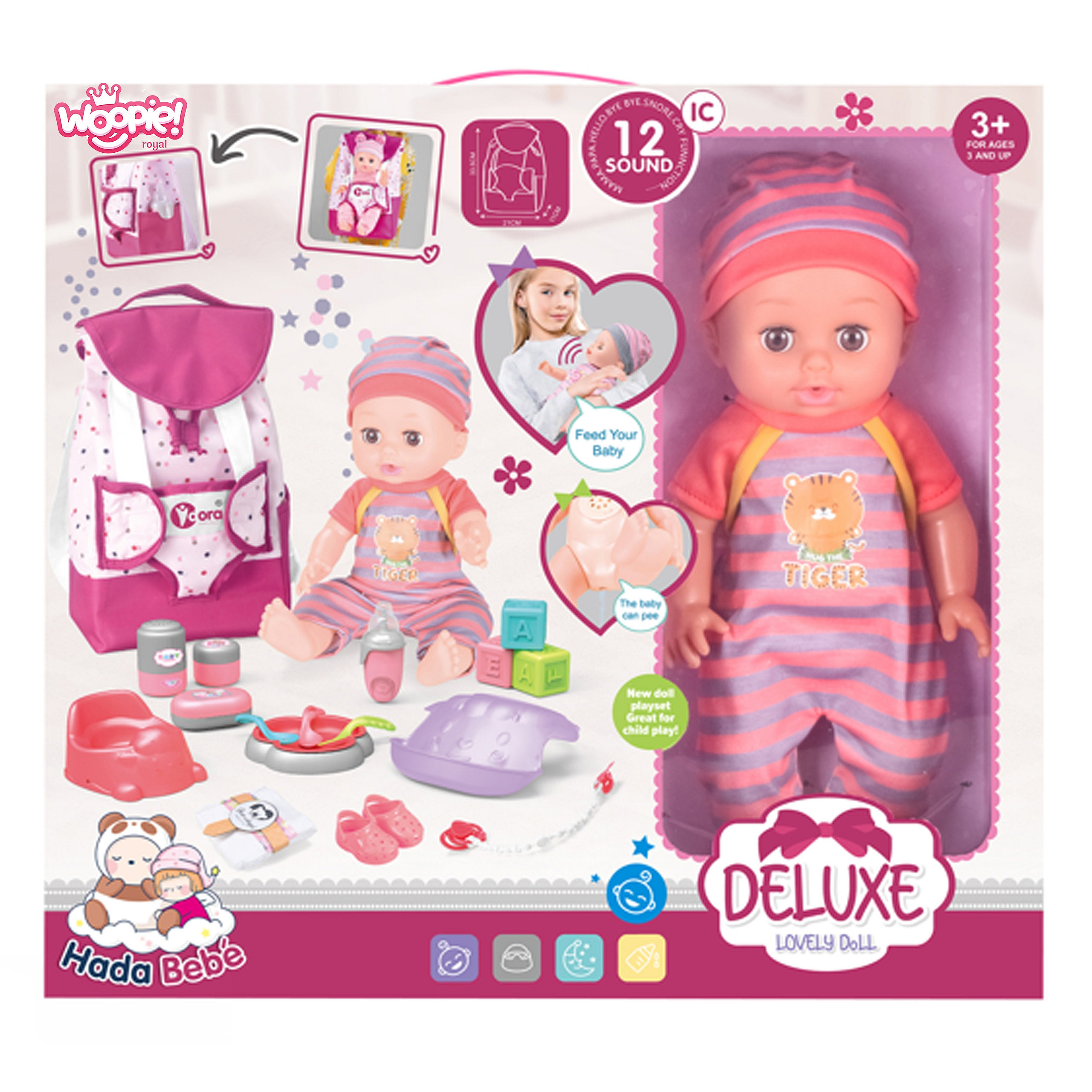 Niezwykłą atrakcją są również odgłosy emitowane przez lalę. W sumie lalka wydaje 12 charakterystycznych dla dziecka dźwięków, takich jak mama, tata, płacz, śmiech, kichanie, mlaskanie czy gaworzenie oraz wiele innych.