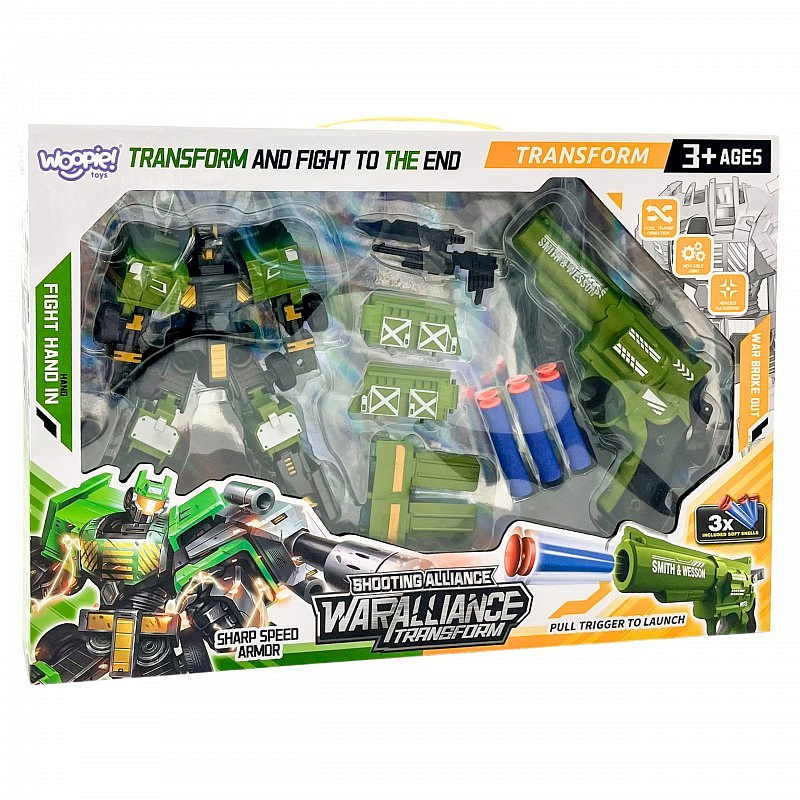 WOOPIE Sada 3v1 Transformující se Robot Bojové Vozidlo a Vystřelovač na Šipky Zelený