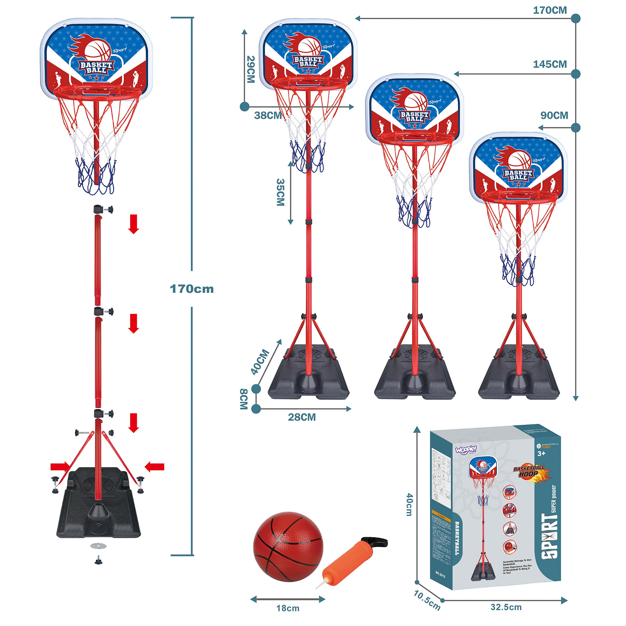 Zestaw do koszykówki marki Woopie to fantastyczny sposób na zaszczepienie w dziecku sportowej pasji i zachęcenie go do radosnego spędzania czasu na świeżym powietrzu. Ten niezwykle angażujący produkt pozwala na stworzenie prawdziwego boiska w przydomowym ogrodzie, na tarasie, a nawet w większym pokoju. Konstrukcja zestawu posiada 3 stopniową regulację wysokości kosza 90, 145 i 170 cm. Każdy celny rzut do kosza dostarcza mnóstwo radości i buduje pewność siebie. To doskonały wybór dla energicznych maluchów, gwarantujący godziny zdrowej, pełnej uśmiechu zabawy w gronie rodziny lub przyjaciół.