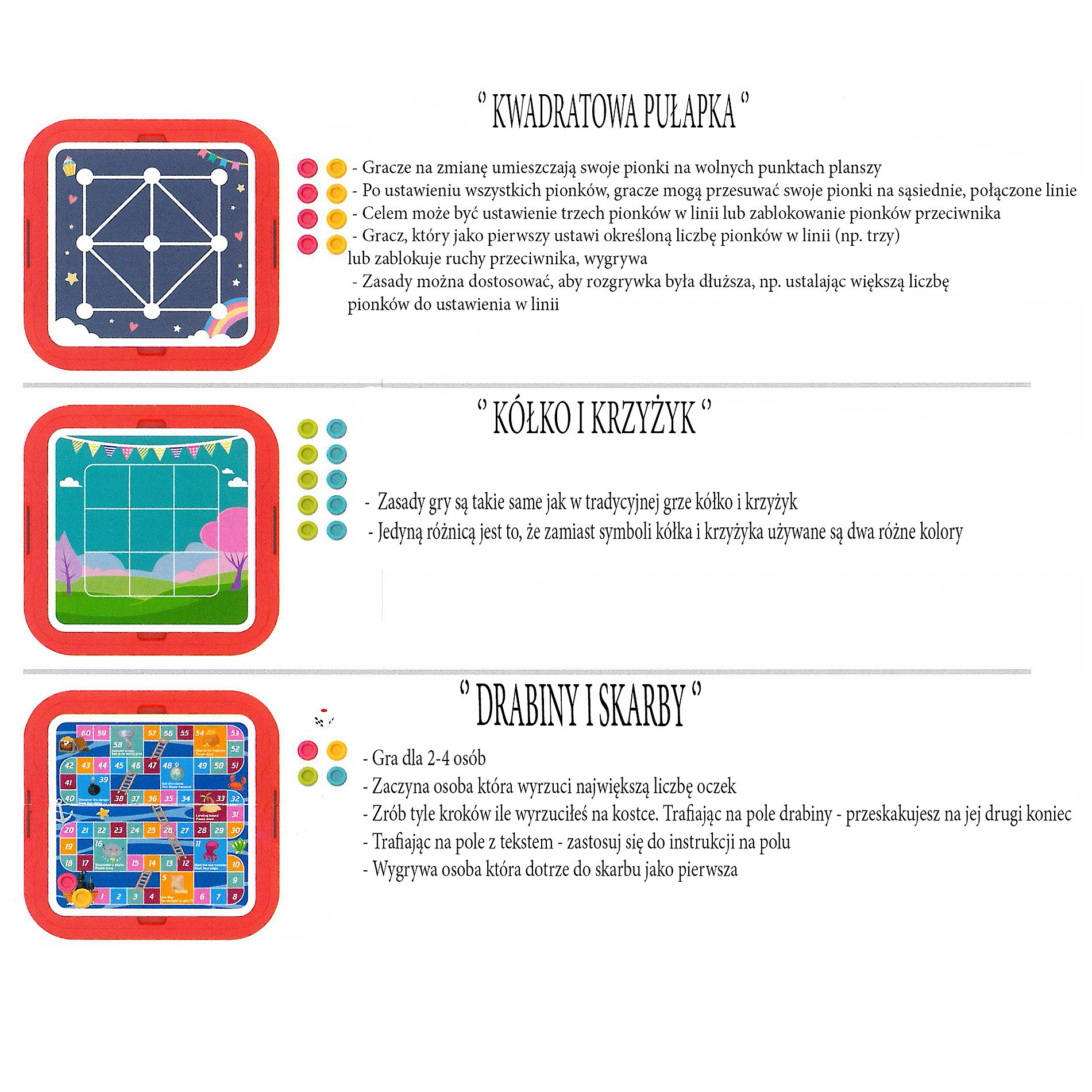 - - 10w1 - zestaw składa się z różnych mini gier logicznych, takich jak łamigłówki przestrzenne, labirynty, klasyczne gry planszowe czy zadania z dopasowaniem wzorów. Każde z nich stawia inne wyzwanie przed graczem, co zapewnia długie godziny zabawy i nauki.