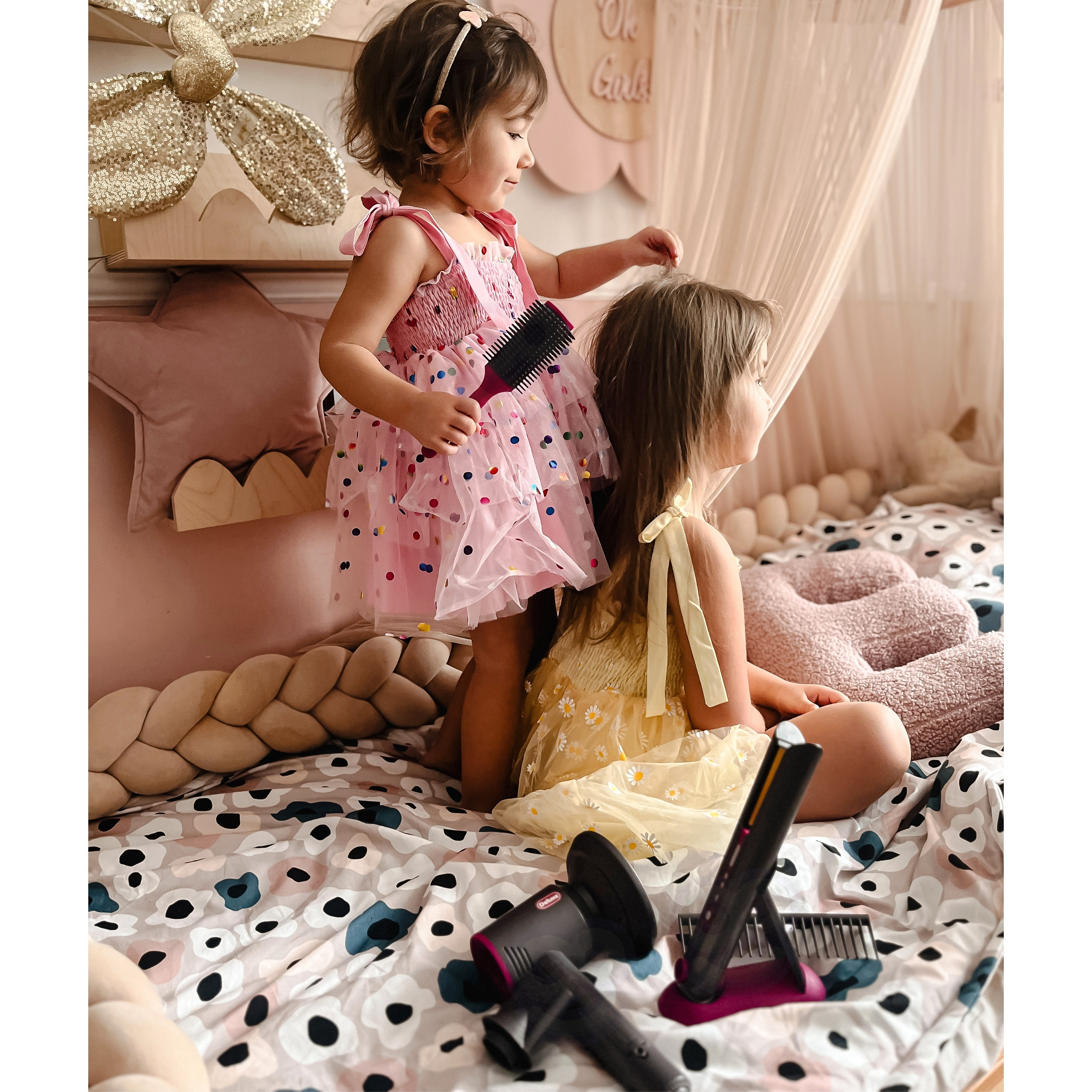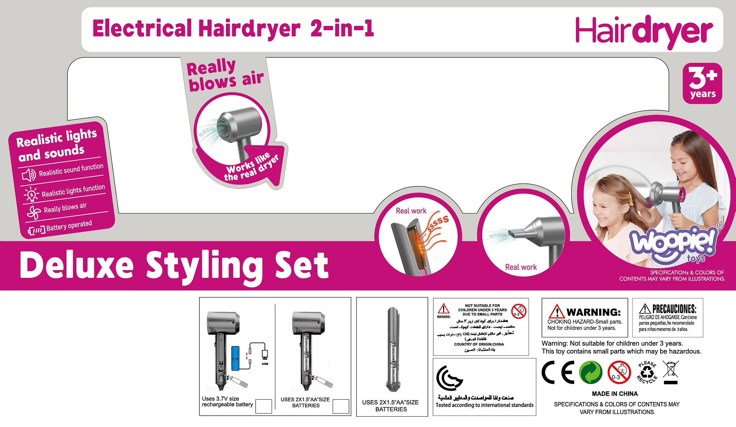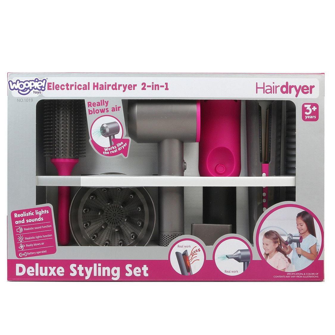 Zestaw do stylizacji włosów marki Woopie to spełnienie marzeń każdego małego fryzjera, który uwielbia naśladować dorosłych podczas codziennych zabiegów pielęgnacyjnych. Ten elegancki, niezwykle realistyczny komplet pozwala dziecku na stworzenie własnego, domowego salonu piękności, w którym lalki, misie, a nawet członkowie rodziny zyskają zupełnie nowe fryzury. Interaktywne funkcje, takie jak prawdziwy podmuch powietrza, efekty świetlne i dźwiękowe, sprawiają, że zabawa staje się fascynującym, autentycznym doświadczeniem. To idealny sposób na pobudzenie dziecięcej wyobraźni oraz spędzenie czasu na radosnym kreowaniu wspaniałych, unikalnych stylizacji.