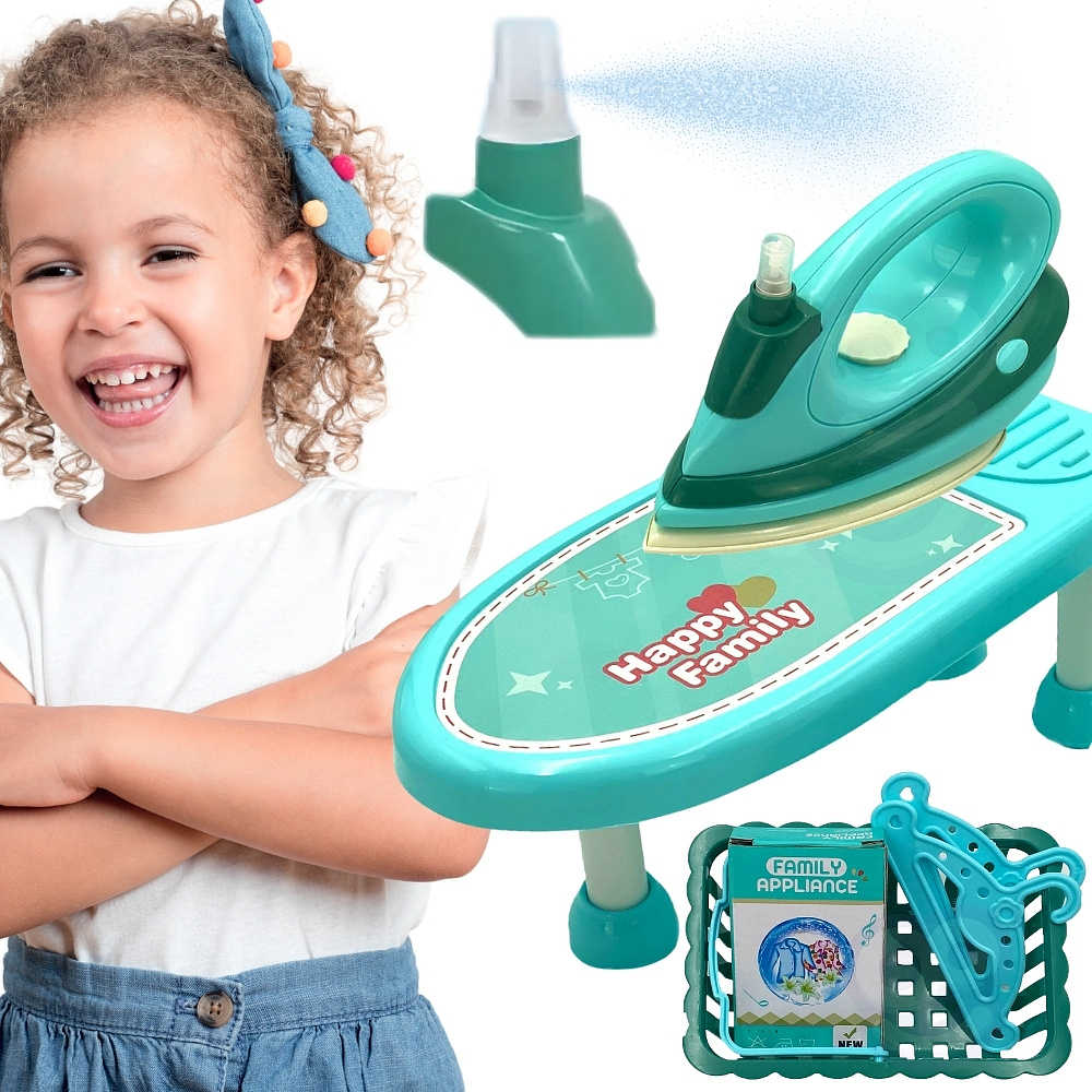 Zestaw do Prasowania od marki WOOPIE dostarczy dziecku mnóstwo zabawy w małą gospodynię domową. W zestawie znajdziemy żelazko, deskę do prasowania, kosz na pranie, dwa wieszaki oraz opakowanie proszku do prania. Żelazko jest zabawką bezpieczną dla dzieci, ponieważ nie nagrzewa się. Zostało ono wyposażona w wiele funkcji, które urozmaicą zabawę: świecącą lampkę LED oraz efekty dźwiękowe/wibracje, które wydobywają się automatycznie po przyłożeniu do powierzchni. Zabawka działa także bez napełniania wodą. Jest to doskonały zestaw dla dzieci, które uwielbiają naśladować rodziców podczas codziennych czynności.