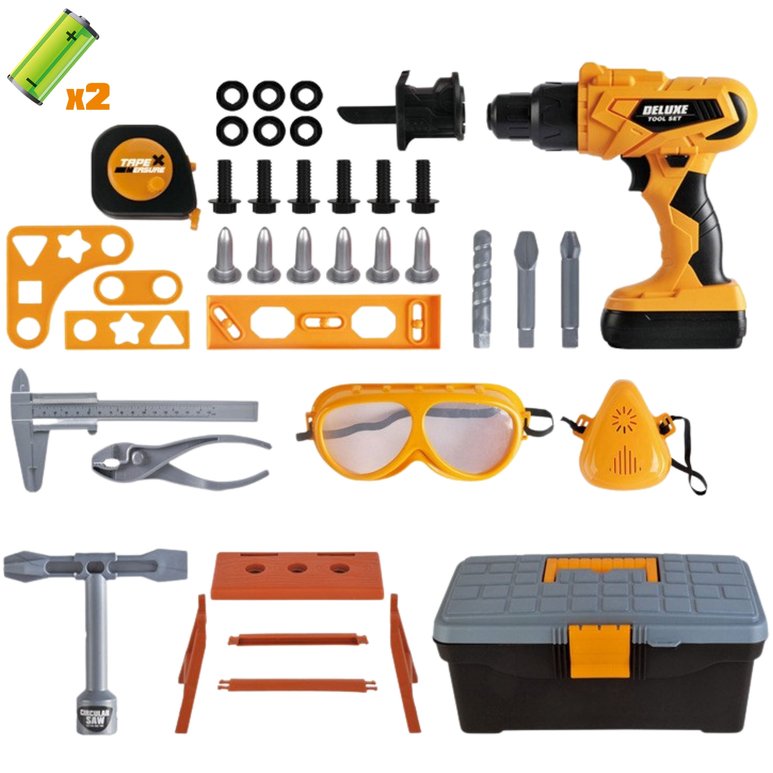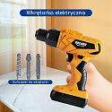 - - Cechy: Zestaw zawiera wkrętarkę elektryczną z wymiennymi końcówkami, akcesoria jak gogle i maska ochronna, oraz skrzynkę narzędziową do przechowywania