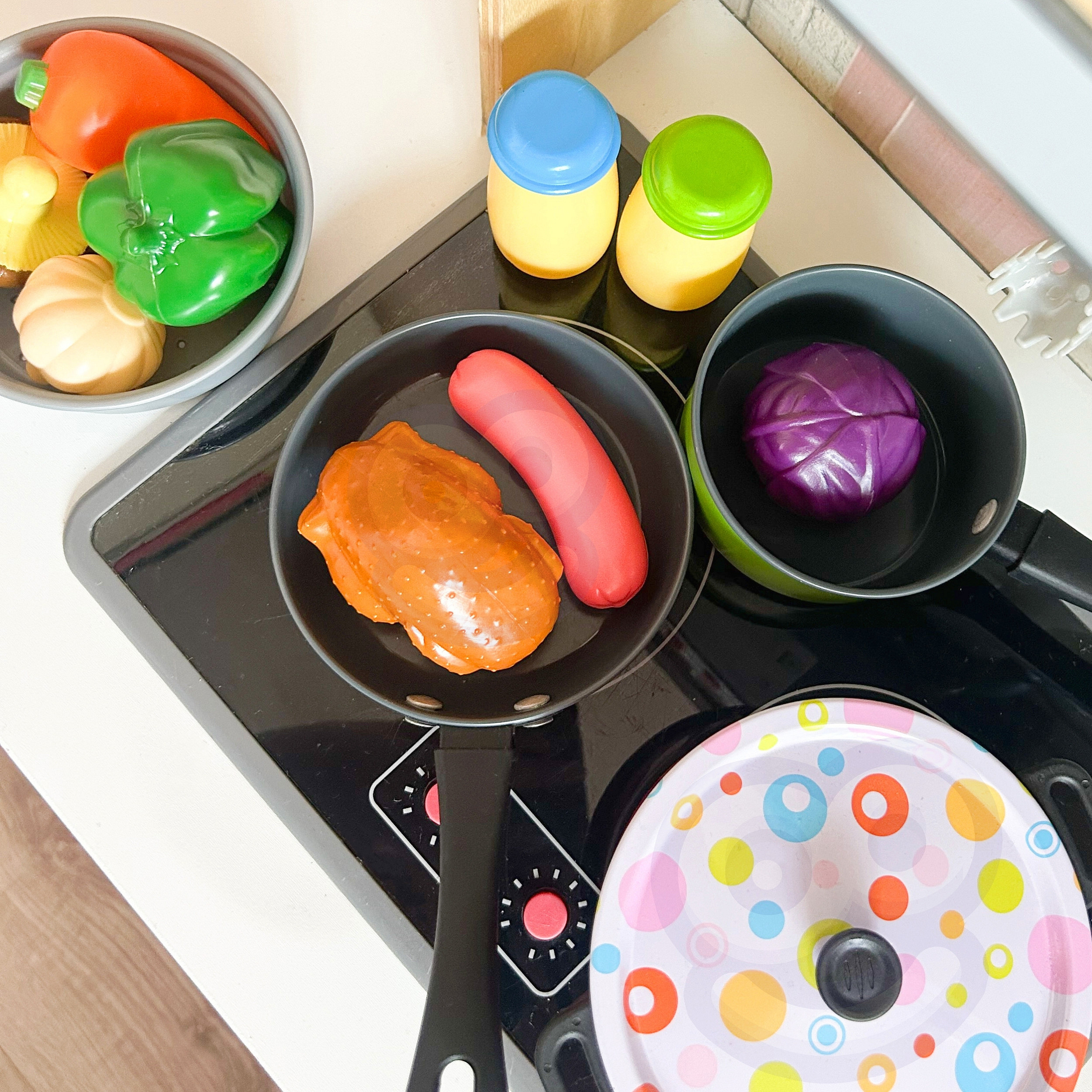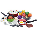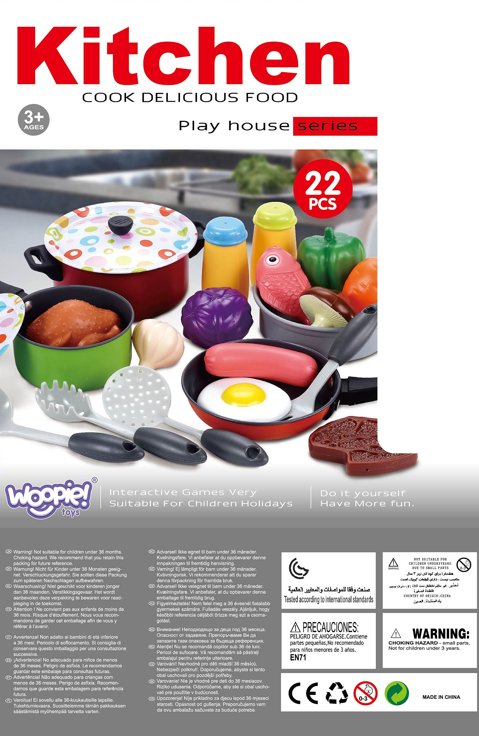 Duży zestaw kucharza marki Woopie to gratka dla każdego małego kucharza. Każdy maluch naśladuje rodziców, a zestaw Woopie pozwoli na posiadanie swoich naczyń i przygotowanie własnych dań. Wszystkie przedmioty zrobione z dbałością o każdy szczegół. Mamy tam garnek i rondelek, które mają swoją pokrywkę, dodatkowo patelnie, miseczkę, artykuły spożywcze oraz przybory kuchenne. Zestaw przeznaczony dla dzieci od 3 roku życia.