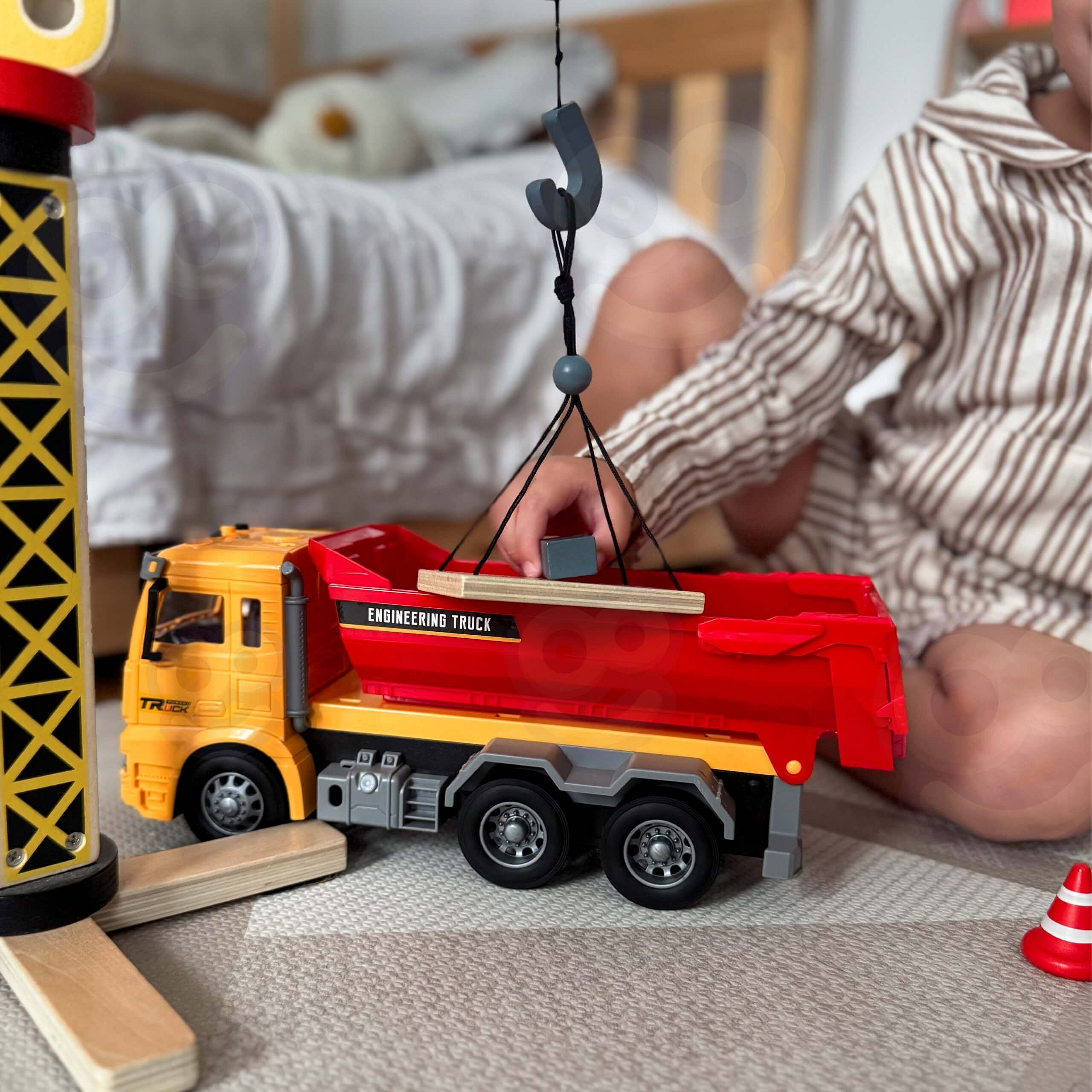 Wprowadź swoje dziecko w fascynujący świat budownictwa dzięki realistycznej wywrotce budowlanej od marki Woopie! Ta imponująca, duża zabawka to nie tylko wierna replika prawdziwego pojazdu, ale także źródło niekończącej się kreatywnej zabawy. Dzięki ruchomej naczepie, efektom świetlnym i dźwiękowym, każda podróż na plac budowy stanie się niezapomnianą przygodą. Wywrotka wyposażona jest w światła na dachu kabiny, które dodają dynamiki i realizmu podczas zabawy. Zintegrowana gama ciekawych dźwięków pojazdów, piosenek i melodii dla dzieci, historyjek oraz dawnych wierszy sprawia, że maluch przyswaja różnorodne elementy wczesnej edukacji w trakcie zabawy. Idealna dla małych inżynierów i budowniczych, którzy uwielbiają akcję i dynamikę!
