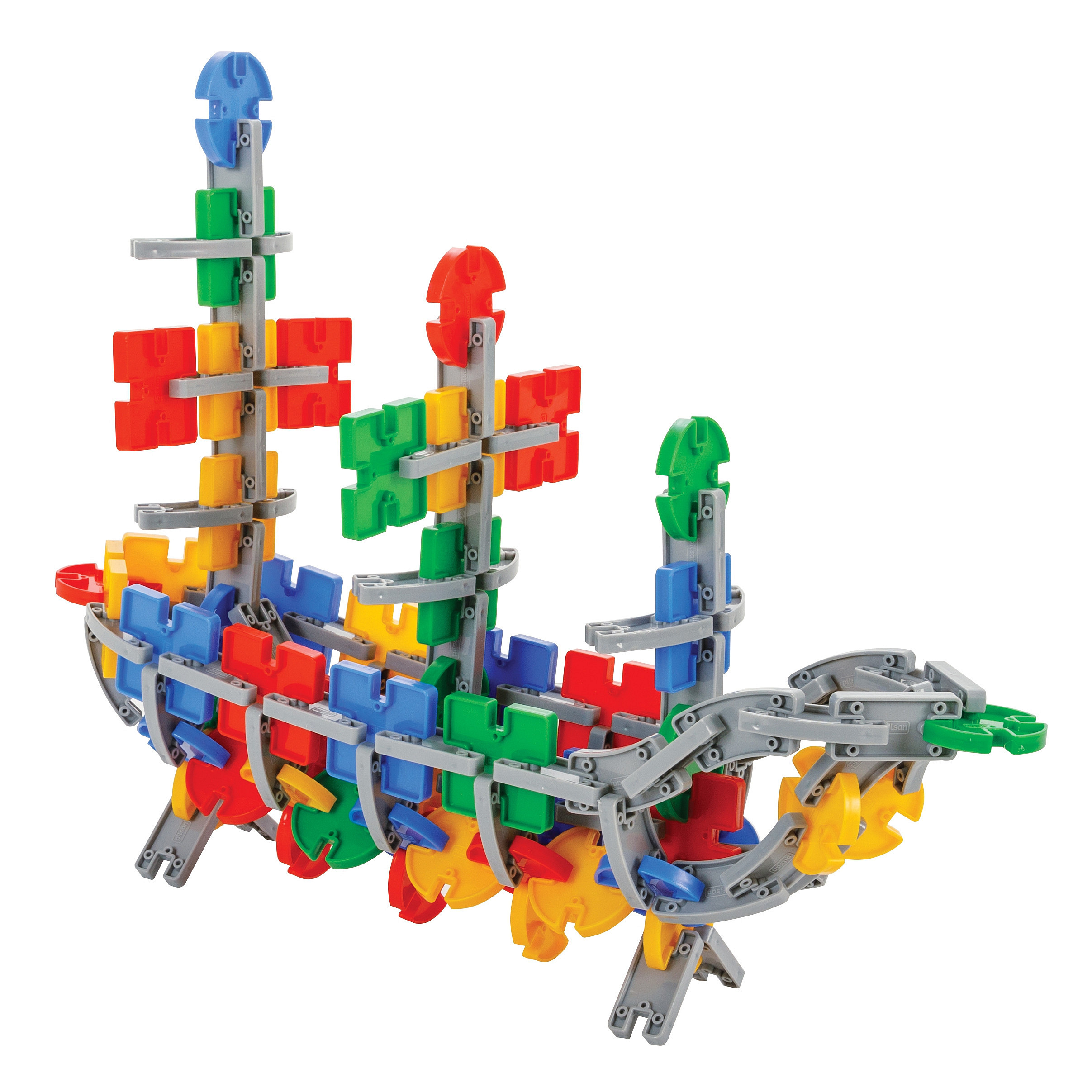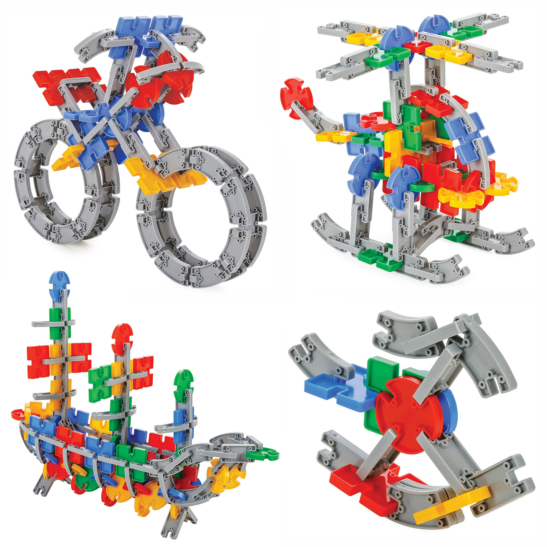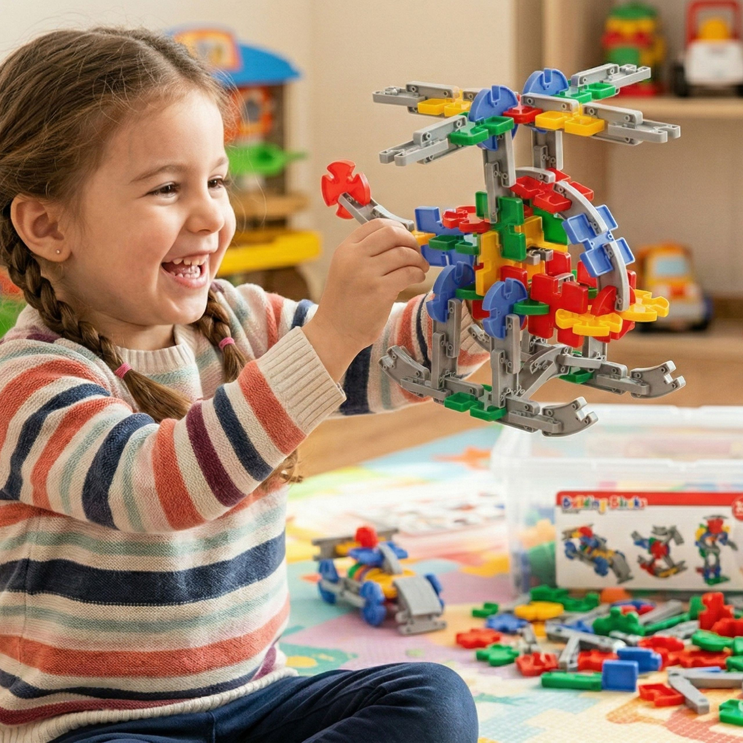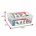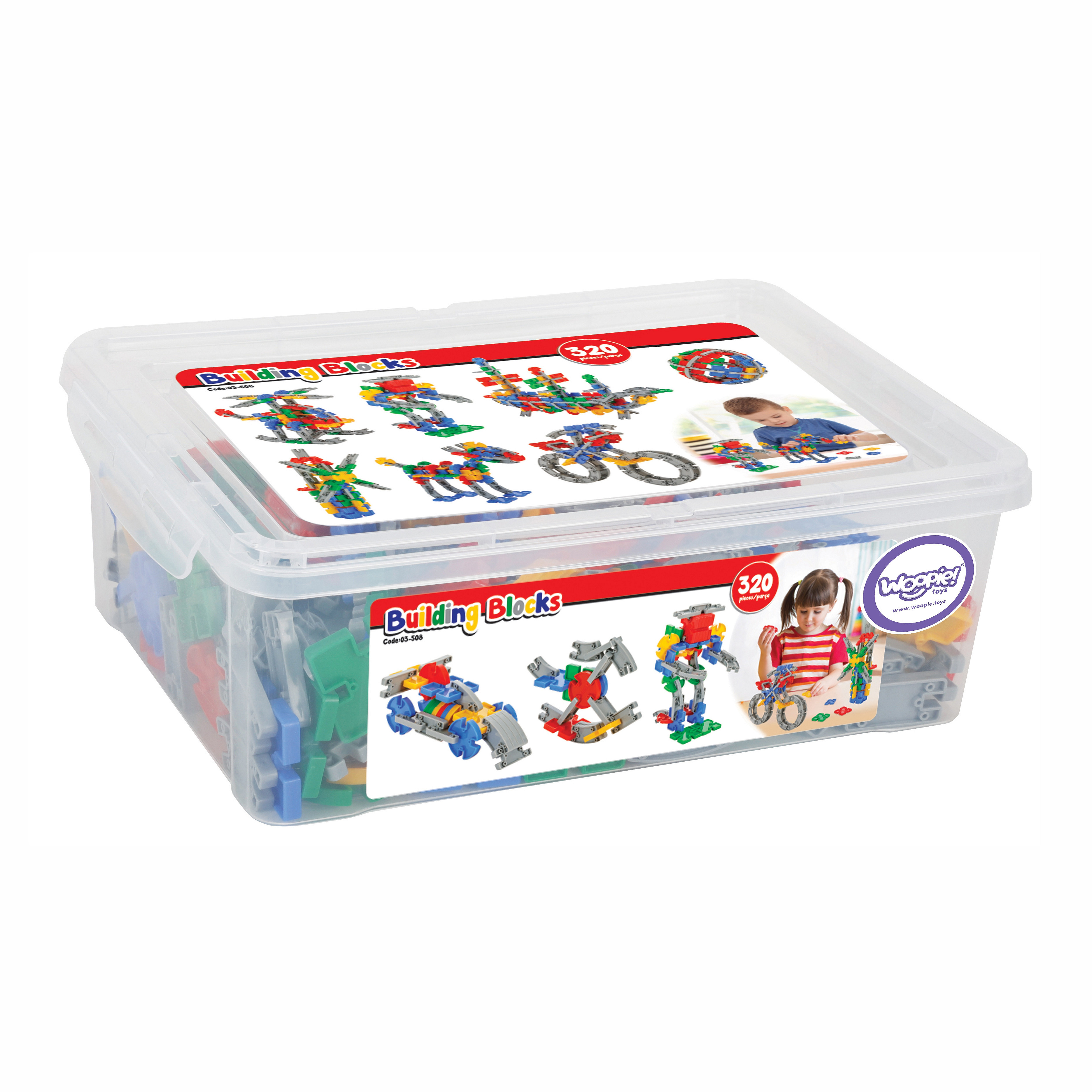Zestaw klocków konstrukcyjnych w wygodny opakowaniu do przenoszenia od marki Woopie to wszystko czego dzieci potrzebują, aby rozwijać zdolności umysłowe i jednocześnie świetnie się, przy tym bawić. Zestaw zawiera 320 szt. klocków wykonanych z przyjaznego materiału. Klocki są wielokolorowe i szare oraz mają różne kształty: prostokątne, kwadratowe oraz koliste z możliwością ułożenia okręgu. Elementy dają możliwość układania różnych przestrzennych konstrukcji (w tym: helikoptera, motoru, konia, piłki, robota, statek, formułę i wiatrak ). Układanie klocków dostarczy wiele radości oraz jest doskonałym wsparciem dla rozwoju inteligencji Twojego maluszka. Zabawka rozwija zdolności motoryczne Twojego dziecka poprzez ruch dłońmi.