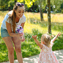 • - Puszcza bańki, a za pomocą wiatraka posyła je daleko