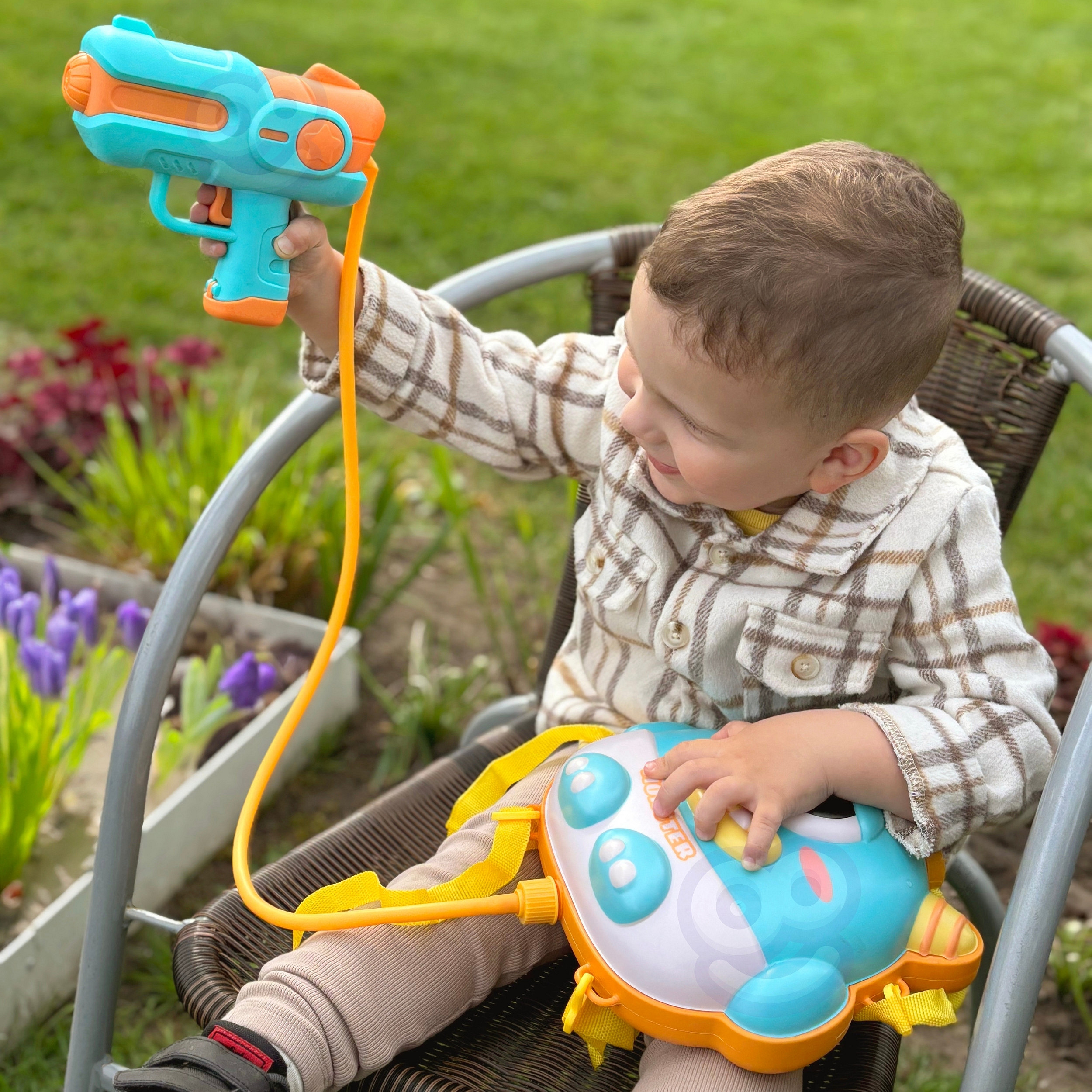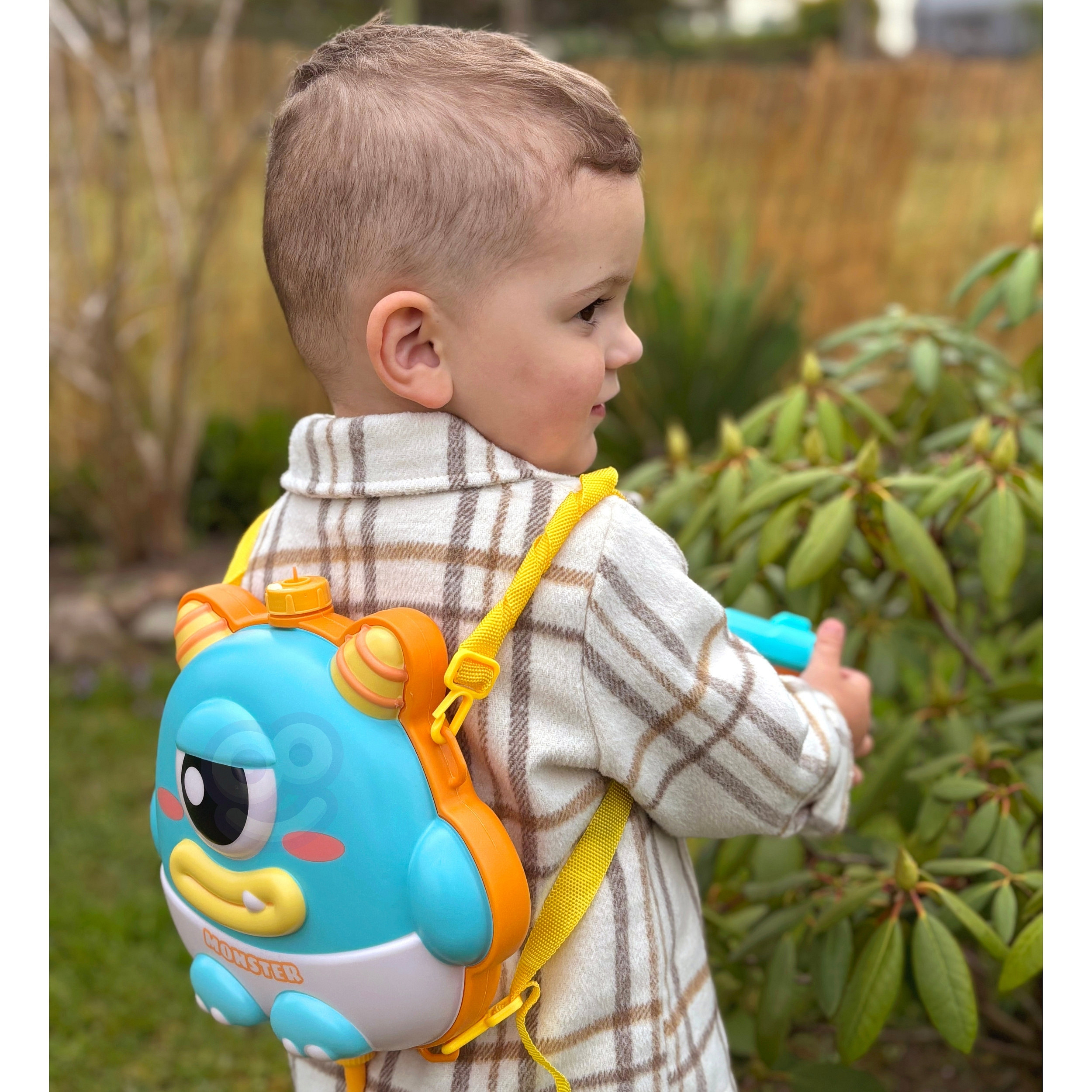 Vodní pistole s batohem UFO MONSTER od značky WOOPIE je ideální sada pro zábavu v horkých dnech. Unikátní vzor batohu zaujme nejedno dítě. Navíc velká kapacita až 2,1 litru batohu umožňuje dlouhou zábavu bez častého doplňování nádrže. Otočením předního otvoru trysky lze regulovat proud od nepřetržitého proudu po rozprašovač. Velmi dlouhý dosah až do 5-8 m. Funguje elektricky, stačí nabít akumulátor přiložený k hračce a stisknout spoušť, abyste si užili proud vody.