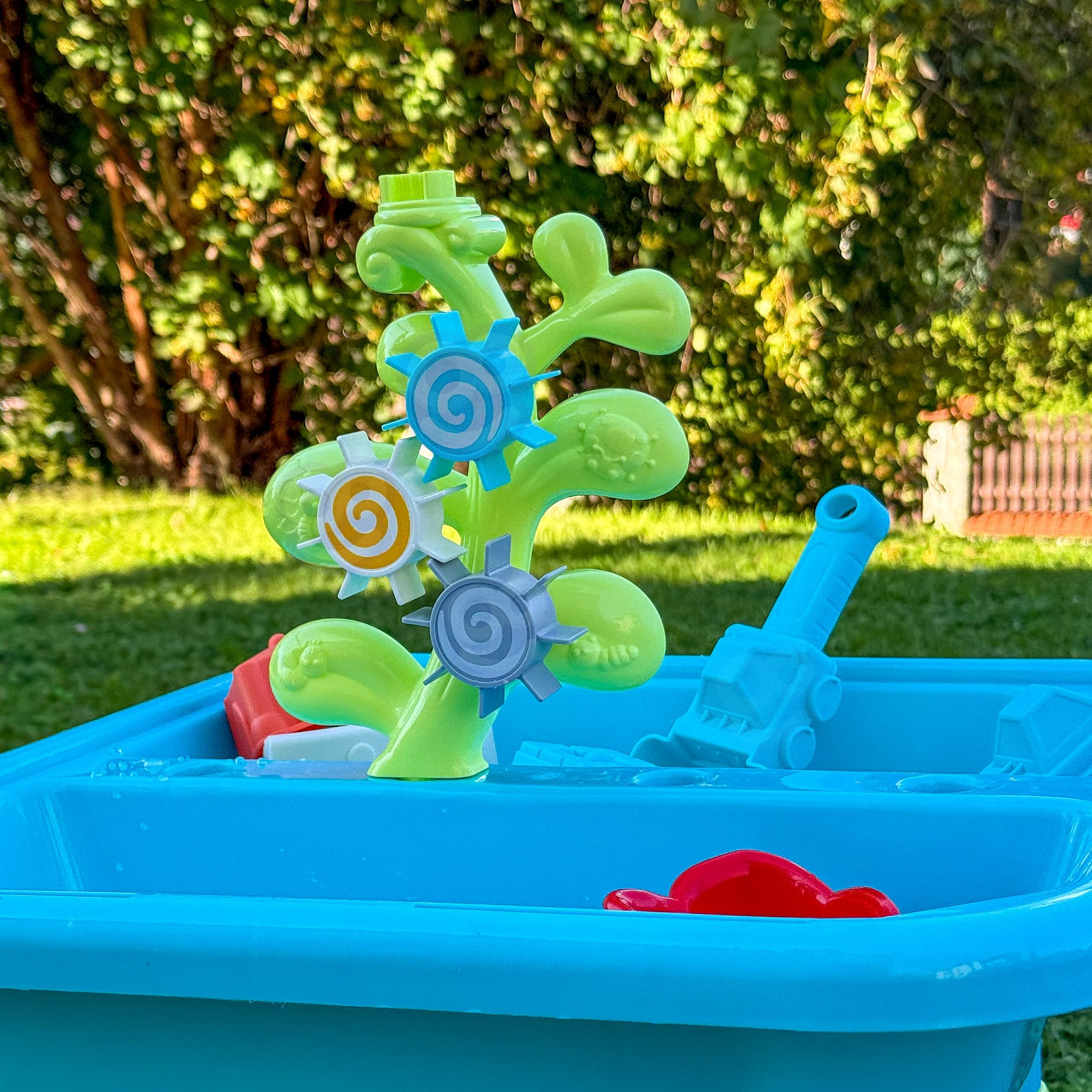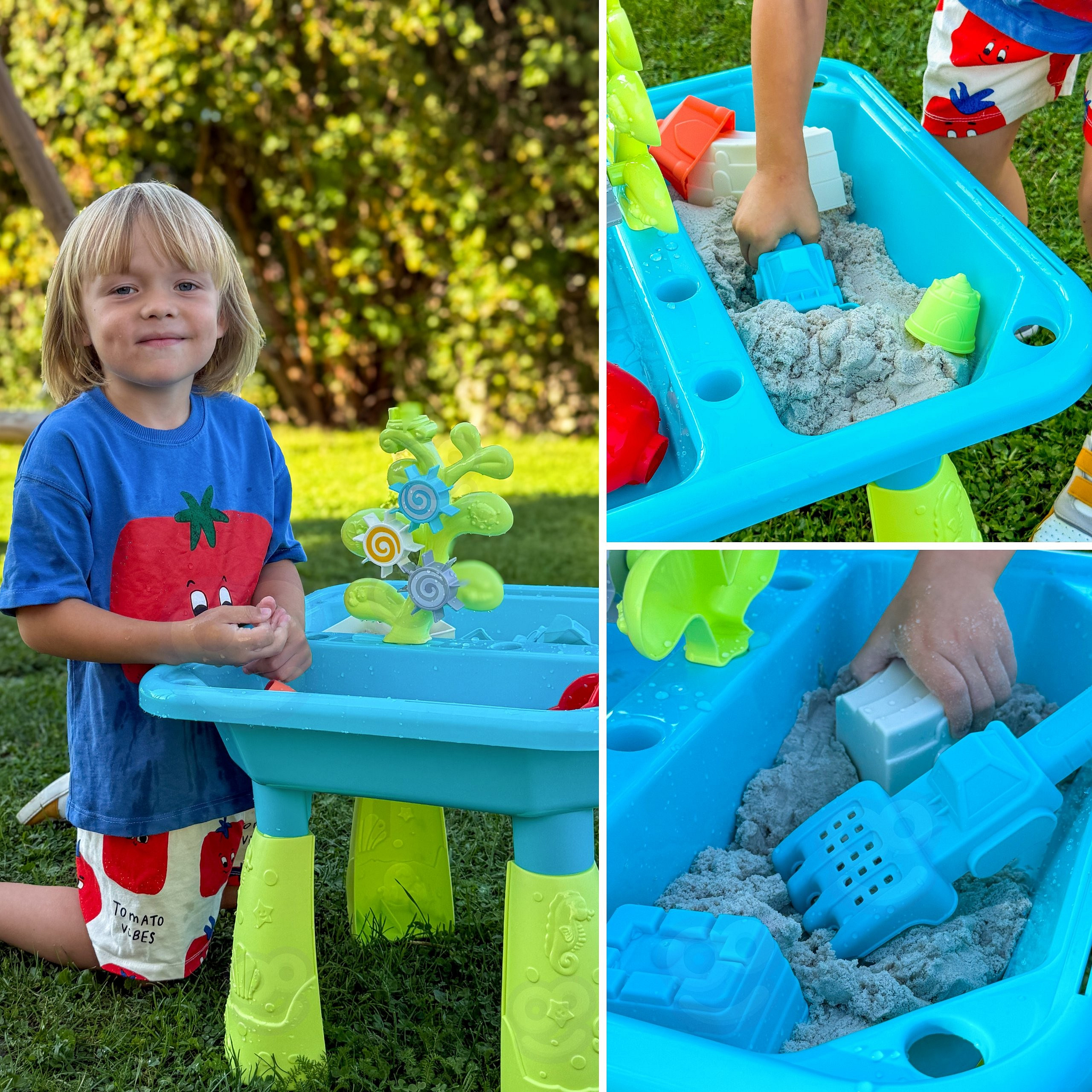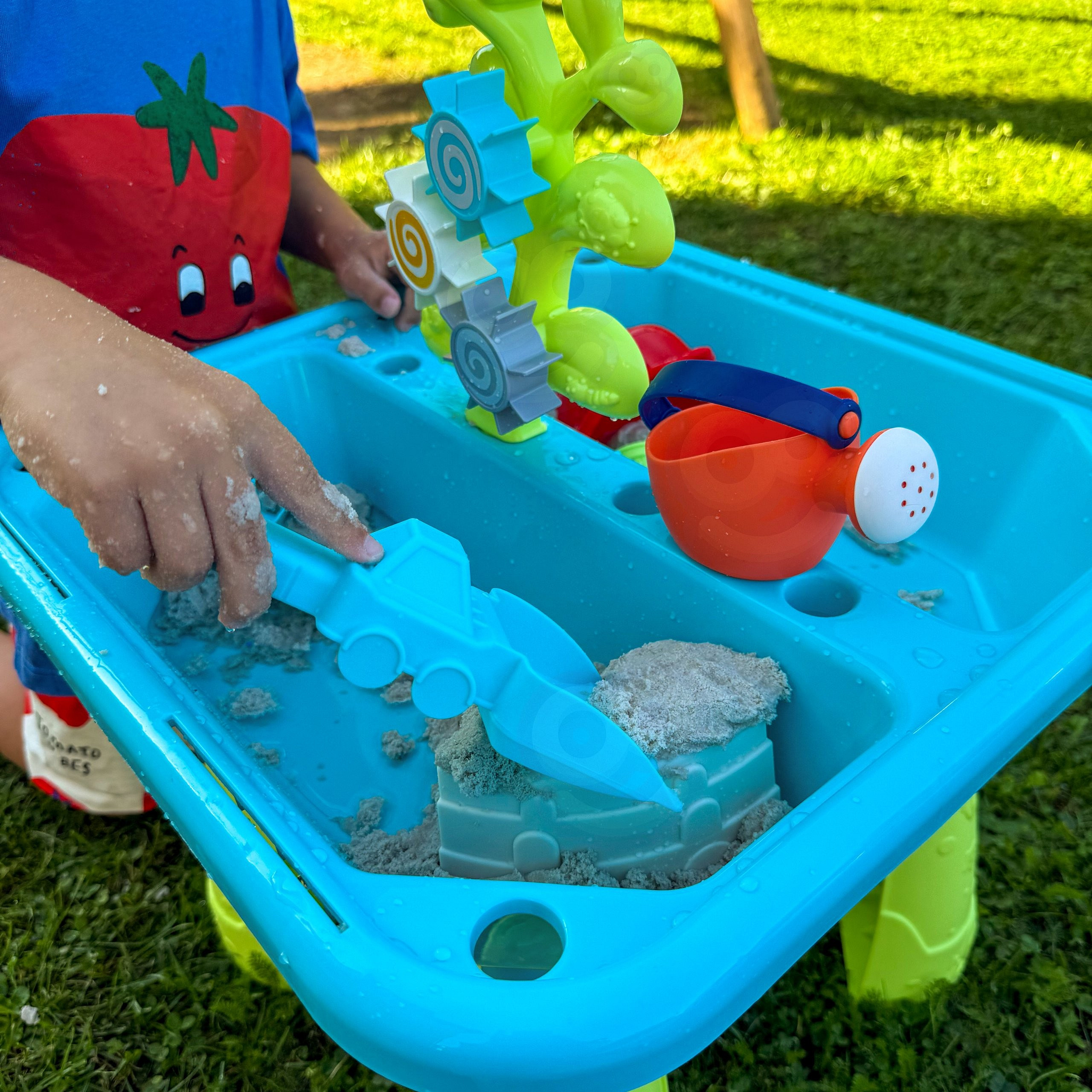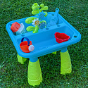 Stół Wodny 2w1 Piaskownica od marki WOOPIE jest idealną zabawka do zabawy z wodą i piaskiem. Zestaw zawiera 14 akcesoriów: 4 foremki, konewkę, młynek i 2 łopatki. Stolik posiada 2 wgłębienia, które jedno wypełnij wodą, a drugie piaskiem, co pozwala na zabawę wszędzie. Dziecko może wlewać wodę do młynka i patrzeć jak woda się przemieszcza. Zestaw jest przeznaczony do zabawy w domu, jak i na zewnątrz. Idealne do zabawy w domu i na plaży lub piaskownicy.