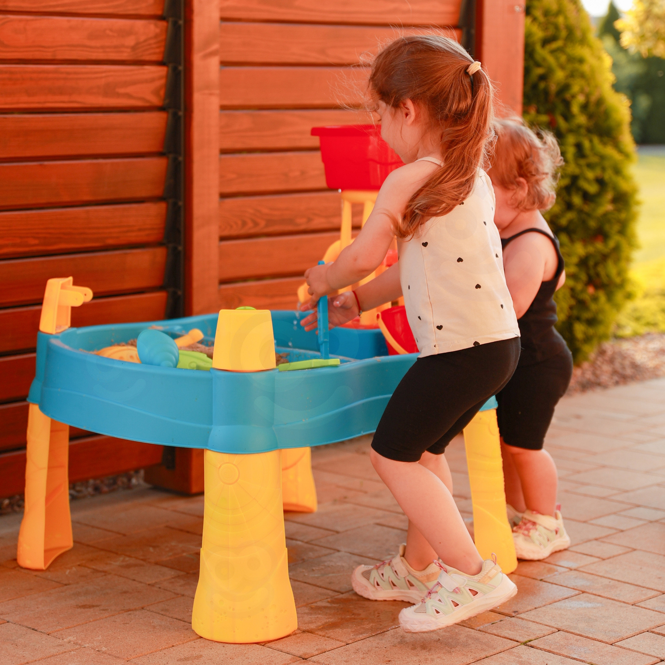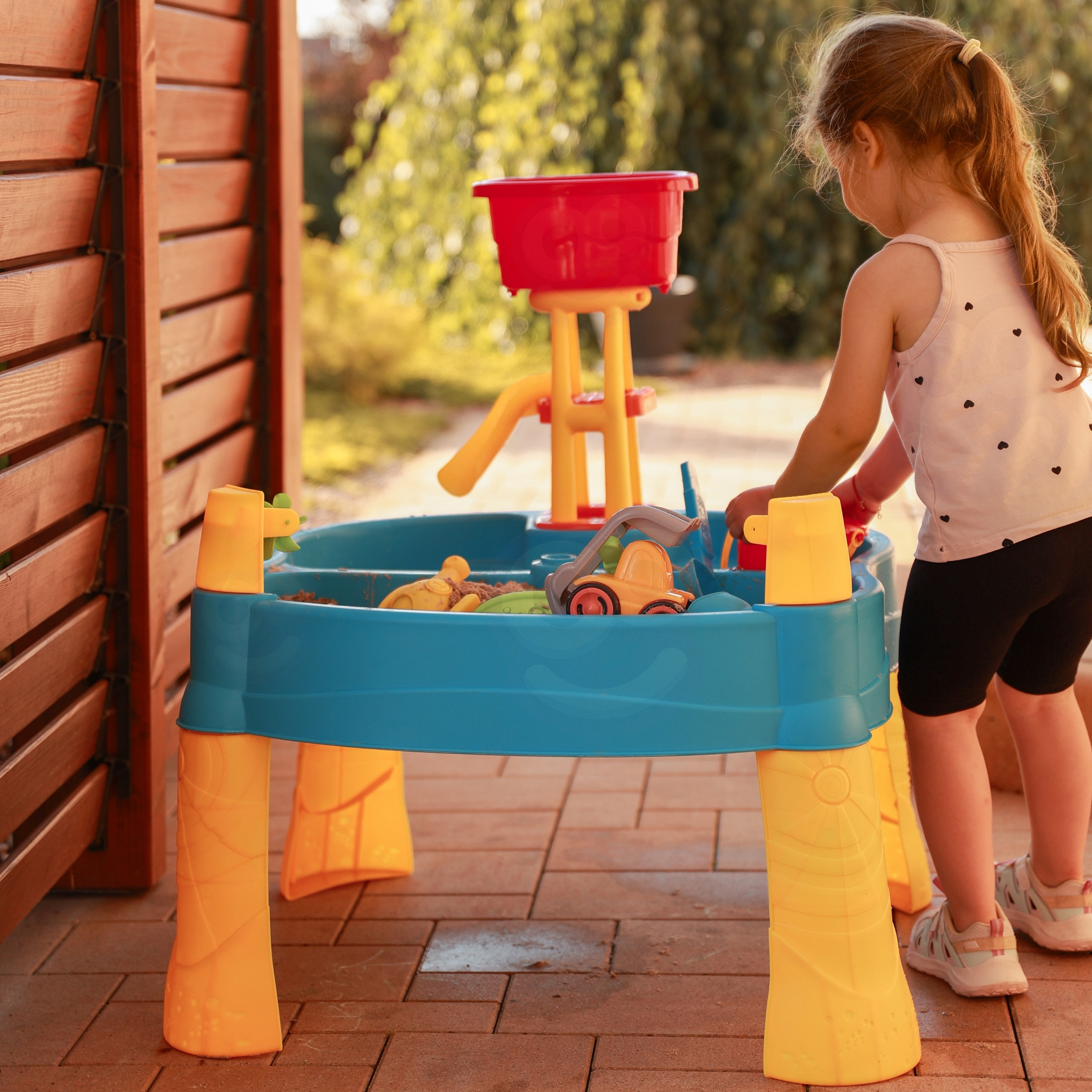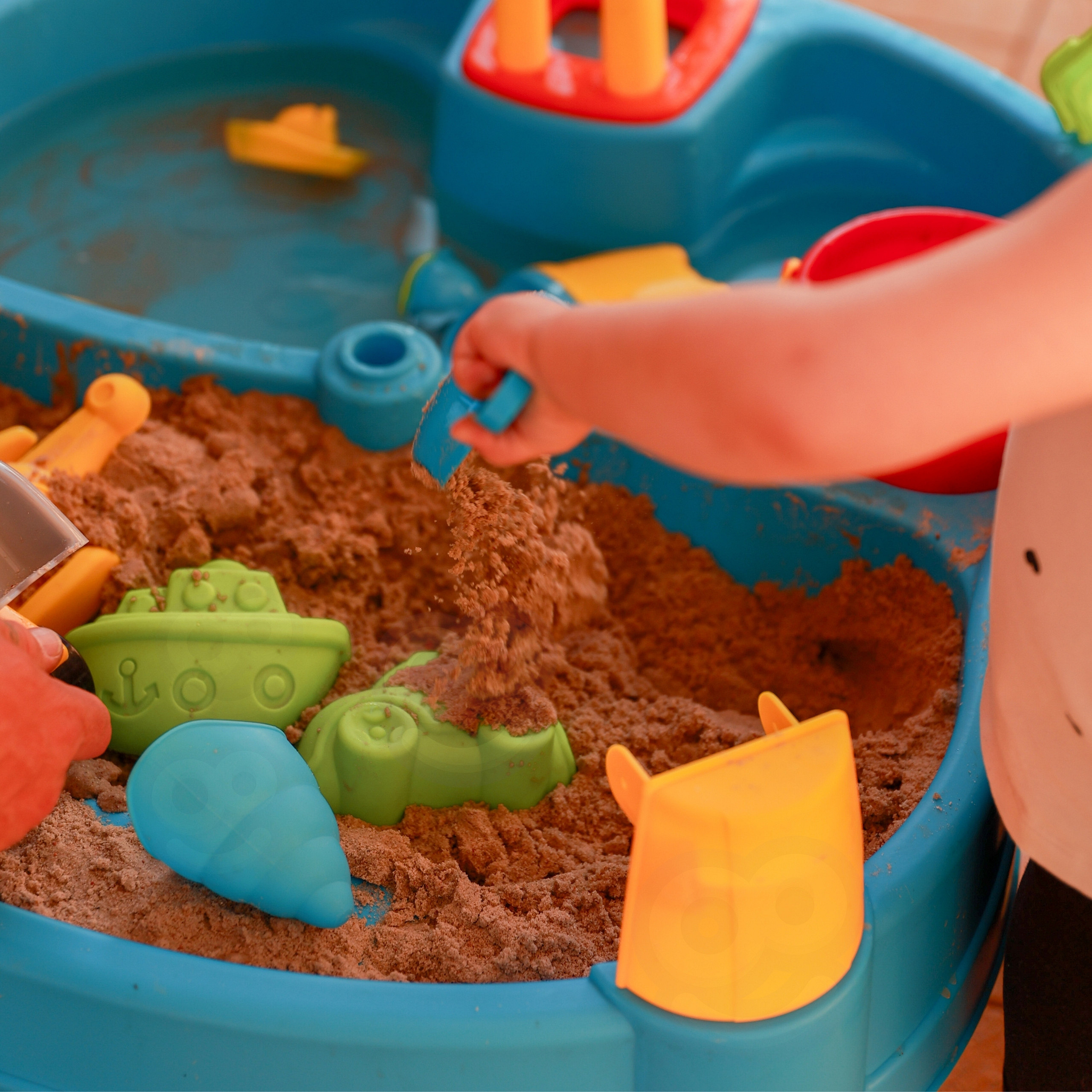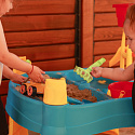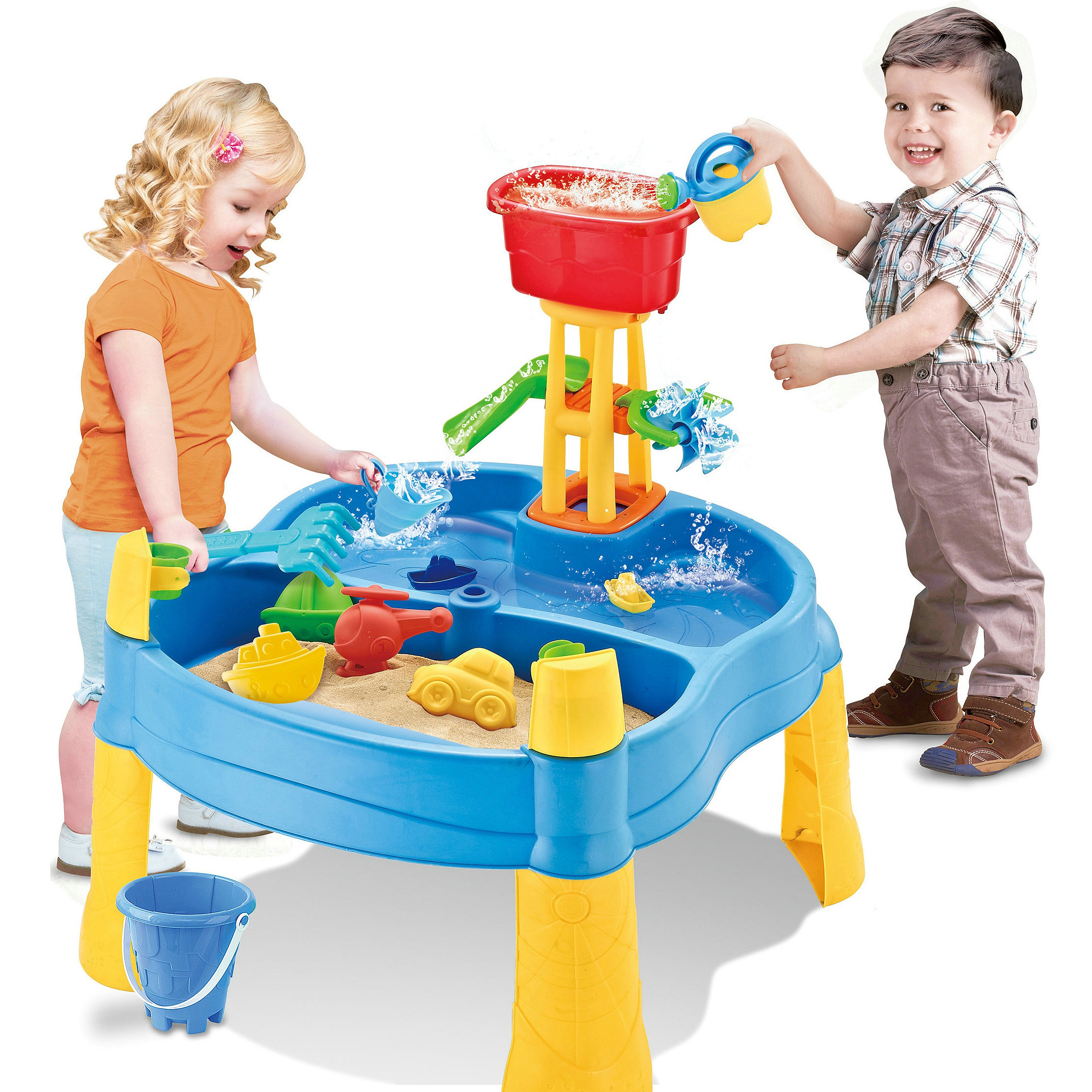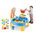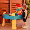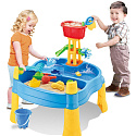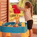 Vodní stůl 2v1 Pískoviště od značky WOOPIE je ideální hračkou pro hraní s vodou a pískem.Sada obsahuje 14 doplňků: 4 formičky, konvičku, mlýnek, lopatku, hrábě, autíčko a 2 lodě. Stolek má 2 prohlubně, které jednu naplňte vodou a druhou pískem, což umožňuje zábavu kdekoli. Dítě může nalévat vodu do mlýnku a sledovat, jak voda stéká. Sada je určena k hraní doma i venku. Ideální pro hraní doma i na pláži nebo v pískovišti.
