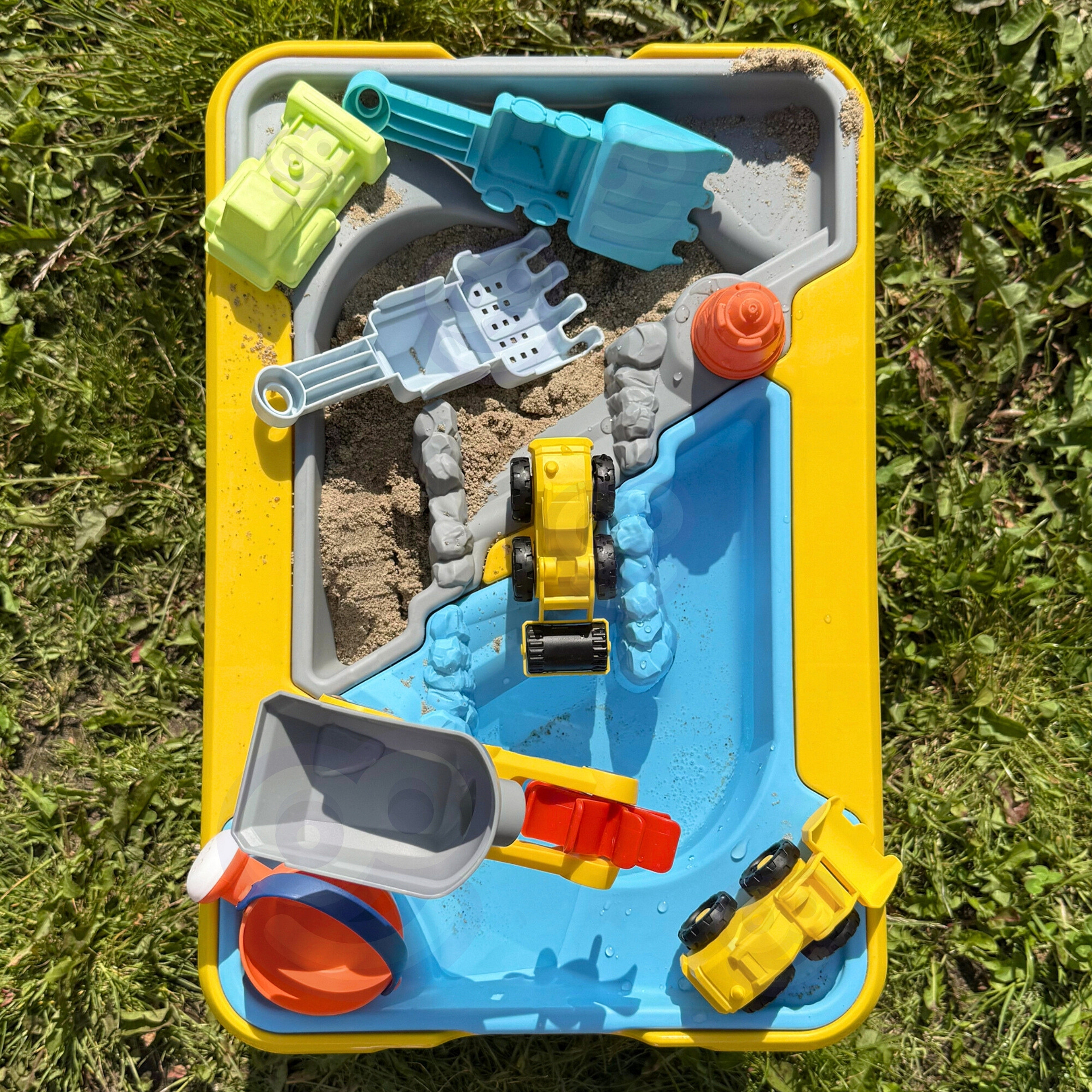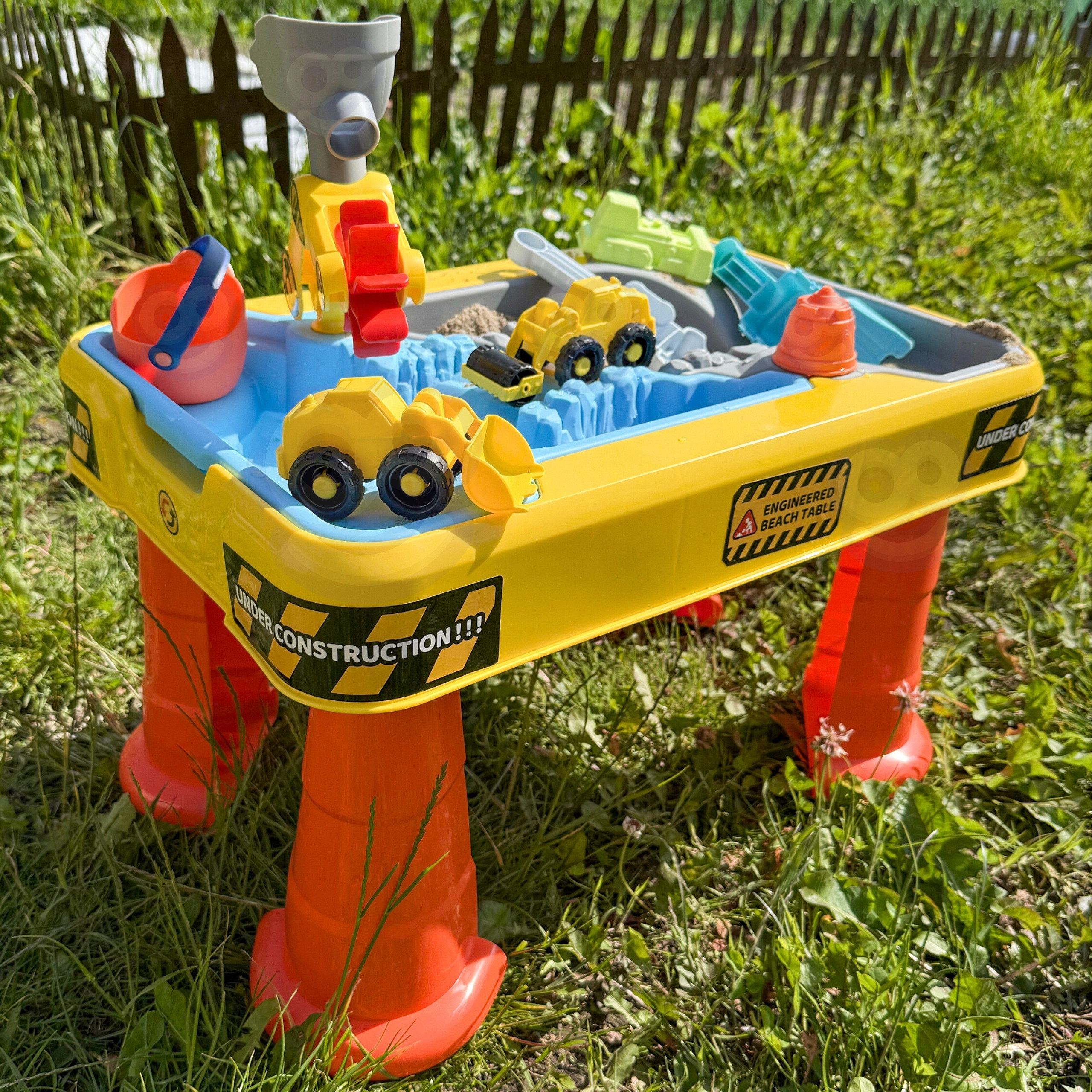 Ponoř se do světa kreativní zábavy s velkým vodním a pískovým stolkem v motivu stavby! Tato barevná a pevně zpracovaná sada kombinuje funkce stolku, pískoviště a vodního bazénu, což dětem zaručuje dlouhé hodiny rozvíjející a poutavé zábavy. Ideální k použití na zahradě, terase, pláži nebo doma.