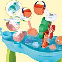 Vodní stůl 2v1 Pískoviště od značky WOOPIE je ideální hračkou pro hraní s vodou a pískem. Sada obsahuje příslušenství jako: rybičky, konvičku, kbelík, plováky a mnoho dalších. Stolek má kolovrátek, který se otáčí při polévání vodou. Sada je určena k hraní doma i venku.