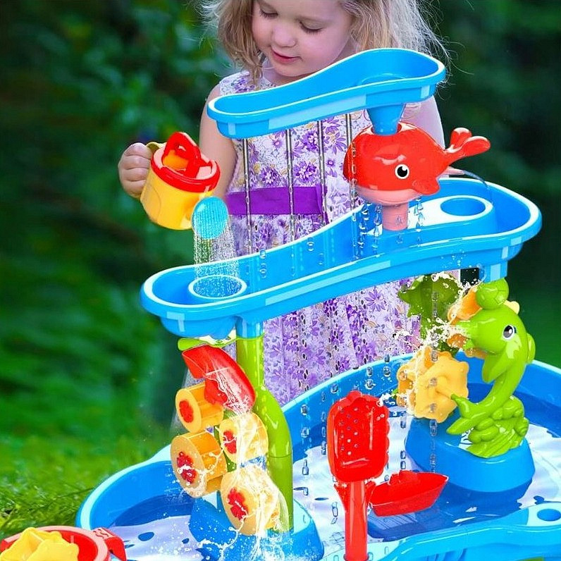 Niezwykły stolik wodny od marki WOOPIE to idealny sposób na wspaniałą zabawę przez cały rok, niezależnie od pogody. To nie tylko fantastyczna rozrywka w upalne dni, ale także świetny sposób na pokonanie nudy, gdy zrobi się chłodniej. Ten wyjątkowy stolik wyróżnia się zaawansowanym, 3-poziomowym systemem wodnym, który z pewnością zachwyci każde dziecko! Mali odkrywcy mogą za pomocą konewki nalewać wodę do górnej komory, a następnie obserwować, jak wodospad spływa do dolnego zbiornika, wprawiając w ruch koło wodne. Dodatkowo, dzięki dołączonym akcesoriom, stolik ten może być również wykorzystywany do zabawy piaskiem, zarówno zwykłym, jak i kinetycznym, co czyni go wszechstronną zabawką na każdą okazję.