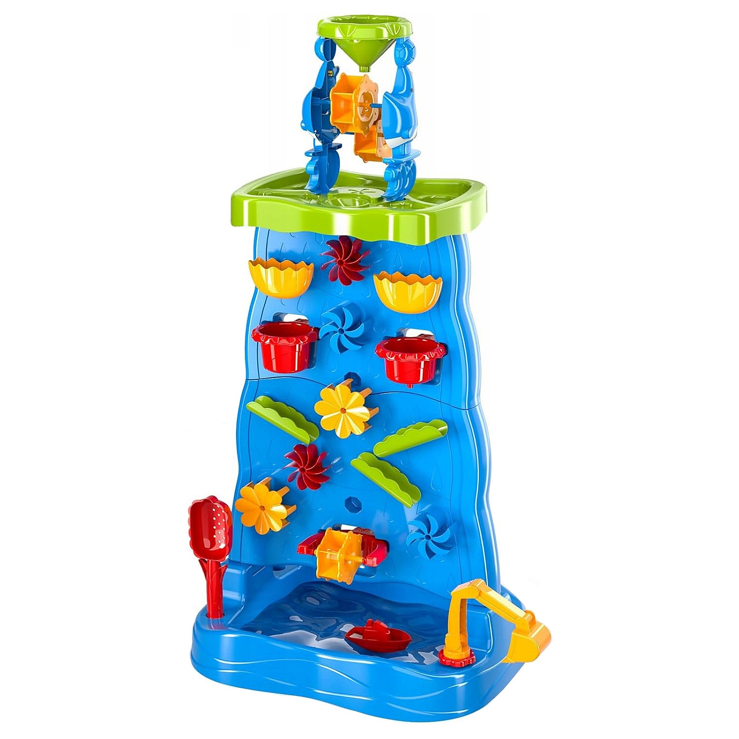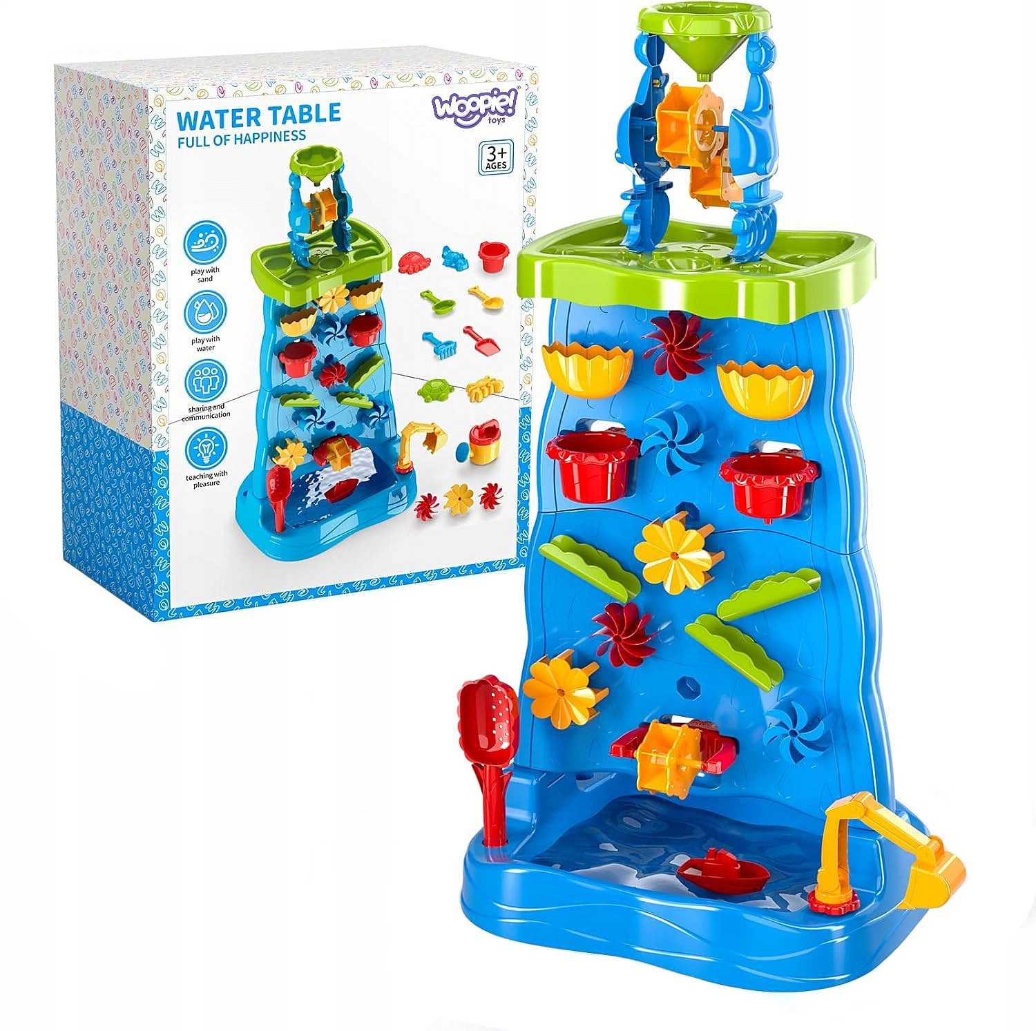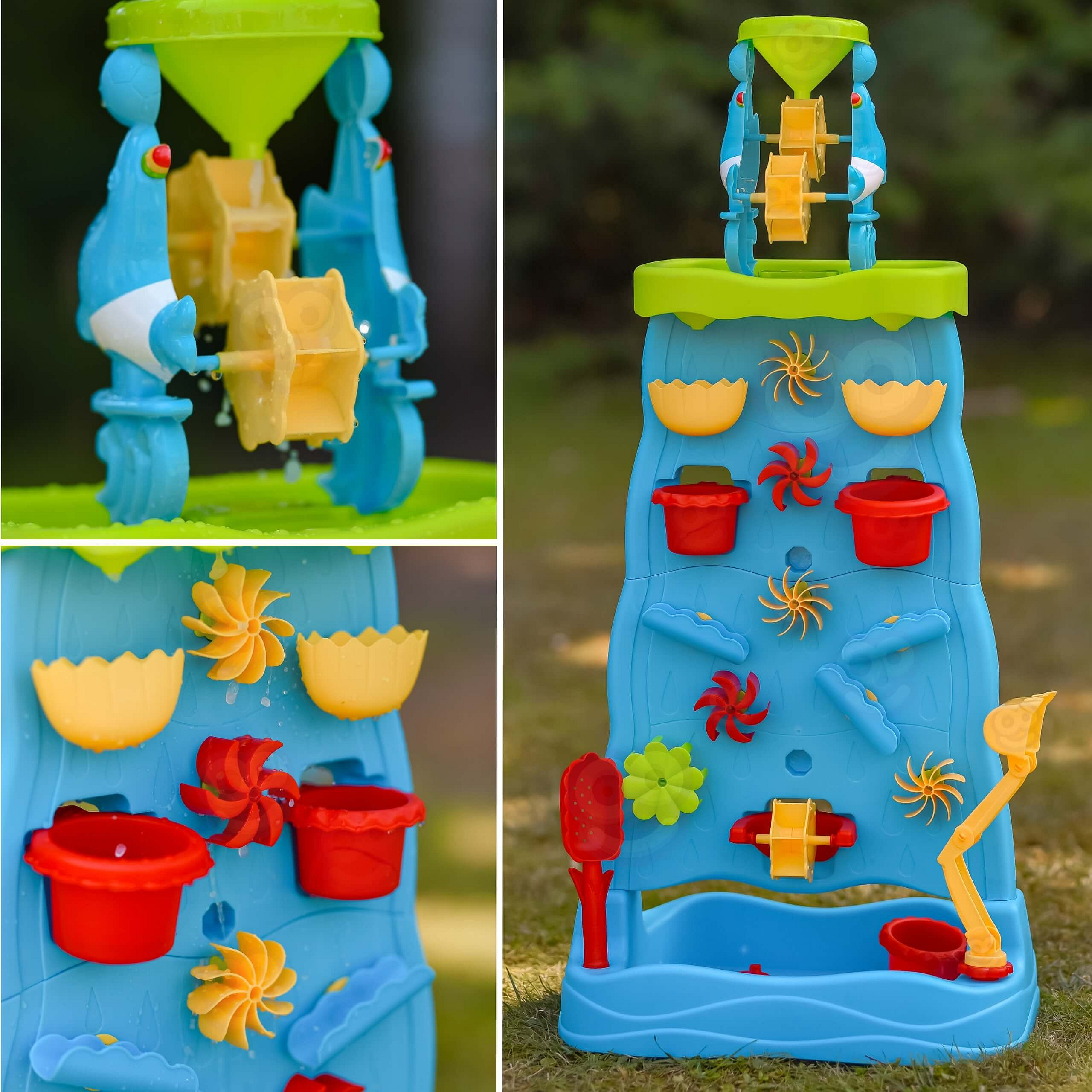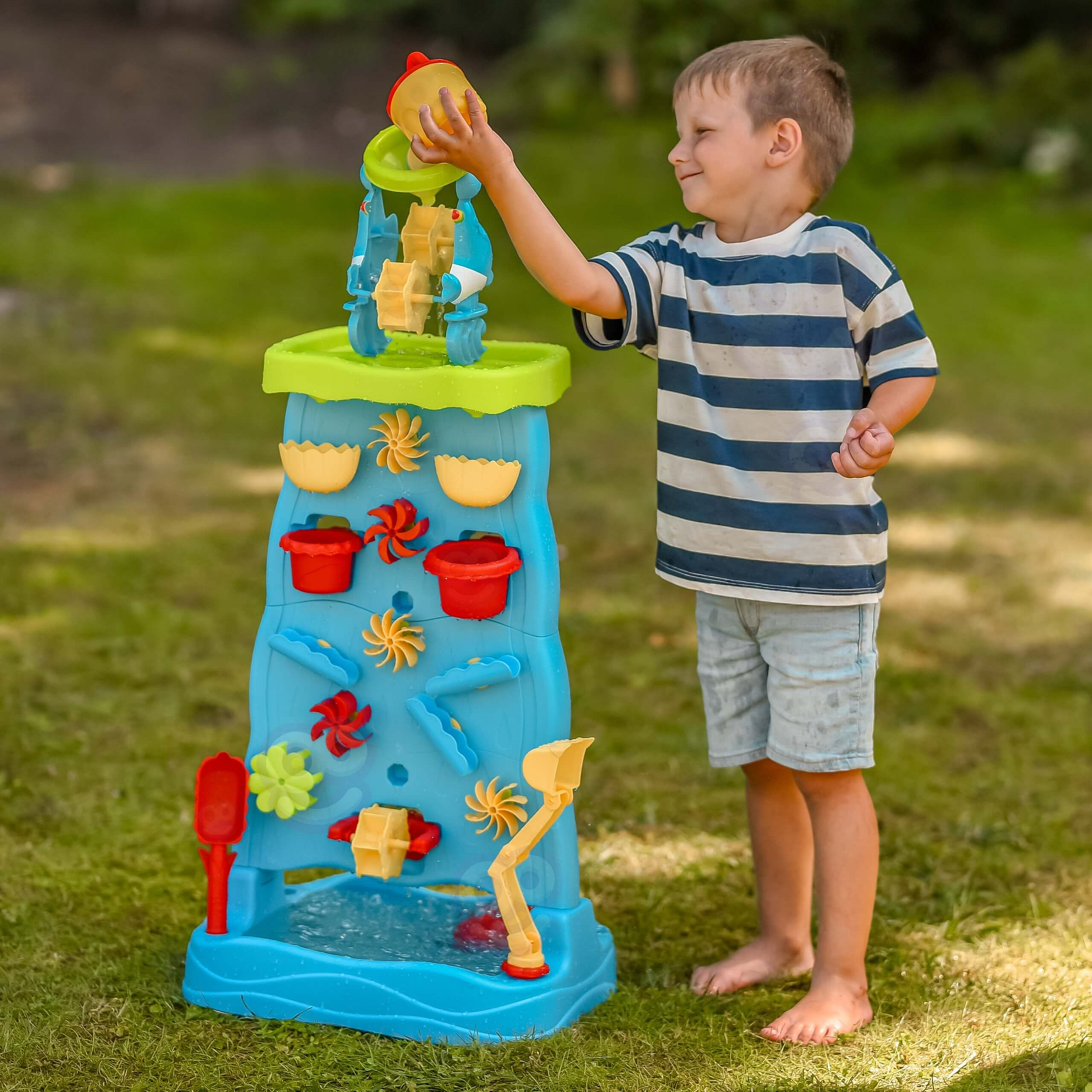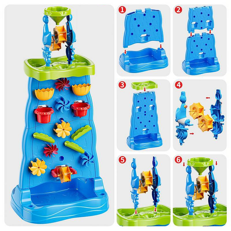Díky mnoha barevným doplňkům, pohyblivým mlýnkům a nádobám mohou děti experimentovat s vodou a pískem, přičemž rozvíjejí své manuální dovednosti a představivost. Jednoduchá konstrukce a velké rozměry činí hračku pohodlnou a atraktivní i pro několik dětí najednou.