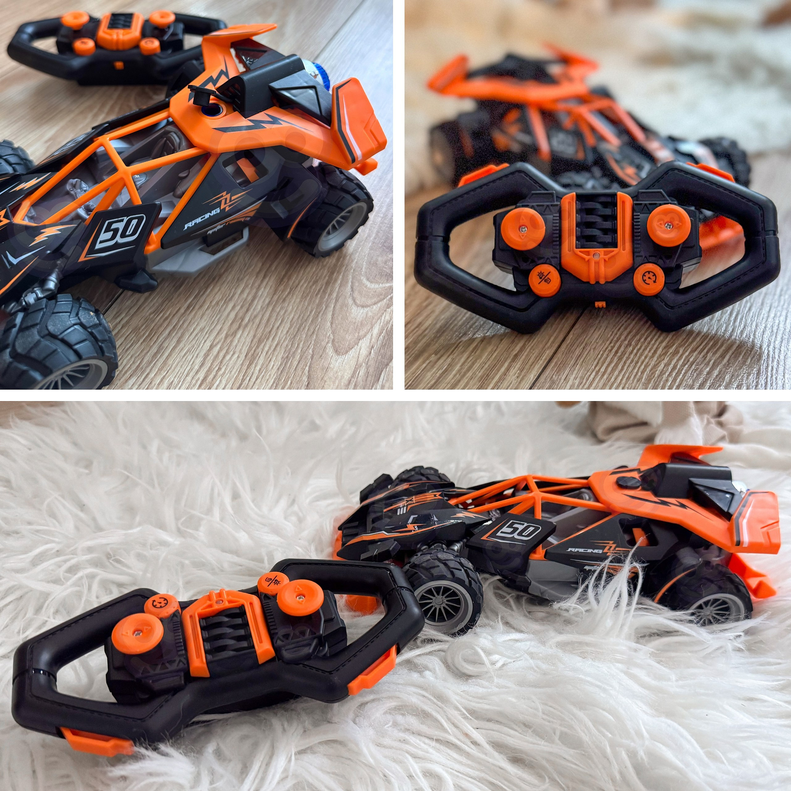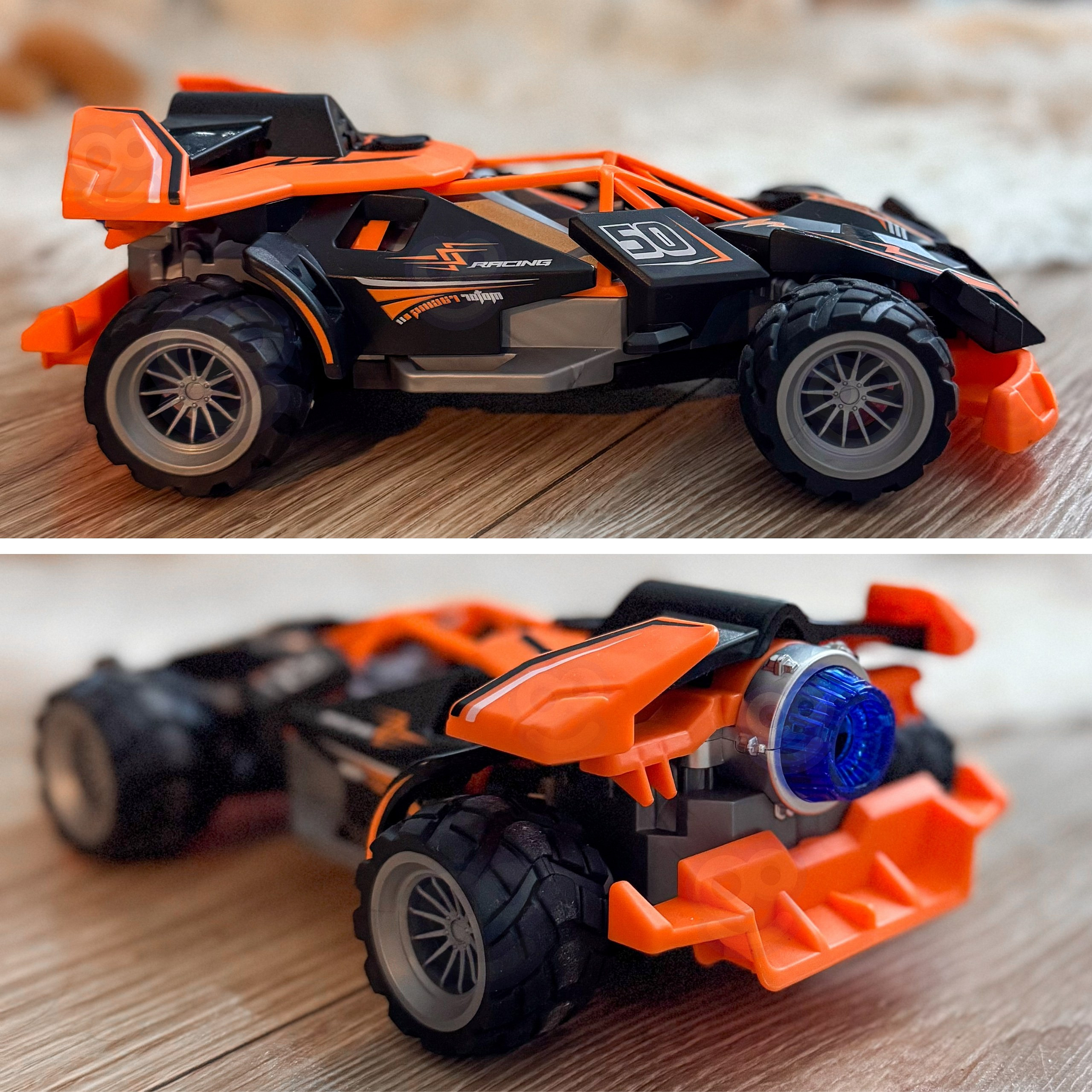 To dynamiczne zdalnie sterowane autko marki Woopie zachęca do szybkich wyścigów i odważnych manewrów, a efektowne LED-y i terenowe opony gwarantują emocje zarówno w domu, jak i na dworze. Dzięki poręcznemu kontrolerowi z dwoma joystickami dziecko szybko opanuje jazdę. Pojazd dostępny w pomarańczowej wersji kolorystycznej.