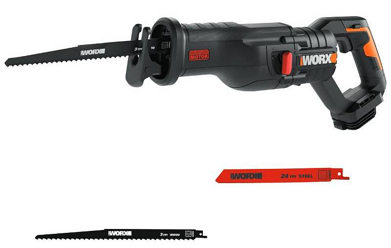 WX516.9 - Aku pila ocaska 20V NITRO - bez akumulátoru - Powershare Díky technologii Worx NITRO Brushless nabízí akumulátorový řezný výkon, který předčí veškerá očekávání – srovnatelný s 700 W síťové pily ocasky. Pila se pyšní vynikajícím poměrem výkonu a hmotnosti, díky čemuž je práce s ním snazší a méně únavná, a to v jakékoli pracovní pozici. Funkce nacvaknutí bez nástrojů navíc zaručuje snadné nasazení a sejmutí pilového plátku ednou rukou. Pila e ideální na demoliční práce zahrnující řadu materiálů, jako je kov, dřevo, plast a izolační materiály. Je kompatibilní s celým 20V systémem WORX. Pila je dokonale stvořená pro řezání blízko u stěn ve svislé poloze. Ergonomický tvar se zaoblenou horní částí rukojeti umožňuje několik různých úchopů. Rychlost lze nastavit snadno a plynule pomocí spouště.