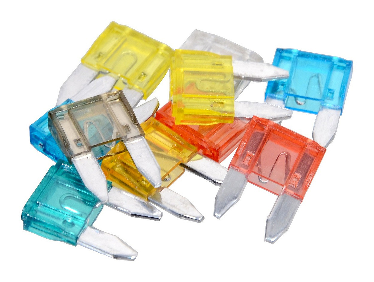 Sada 10 kusů nožových pojistek mini pro použití v automobilech (max. 24V).