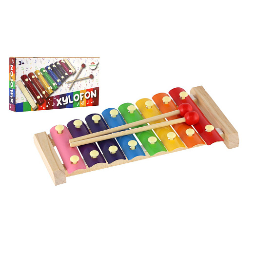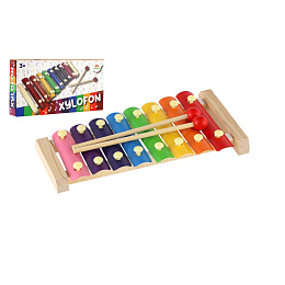 Krásně barevný dětský xylofon vyroben z kombinace dřeva a kovových různě velikých desek, díky kterým se dítě učí jednotlivé tóny a učí se hrát jednoduché melodie skladeb pomocí dvou hůlek. Hračka rozvíjí smysly pro možnost hudební tvorby a pro rytmus. Velikost xylofonu: 24 cm Rozměr balení: 25 x 13 x 4 cm Vhodné pro děti od 3 let