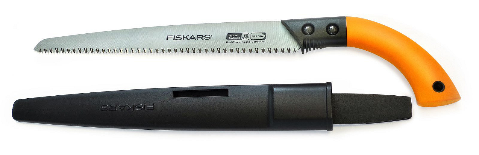 Fiskars nabízí pilky různých tvarů a velikostí. Jsou hlavně určeny k řezání čerstvých větví s průměrem nad 5 cm. Pilový list z kalené oceli má dlouhou životnost a je extrémně ostrý. Speciální výbrus umožňuje hladký řez. Zahradní pilka s pevnou čepelí o délce 33 cm pro snadné řezání i čerstvého dřeva do průměru 120 mm. Včetně plastového ochranného pouzdra.