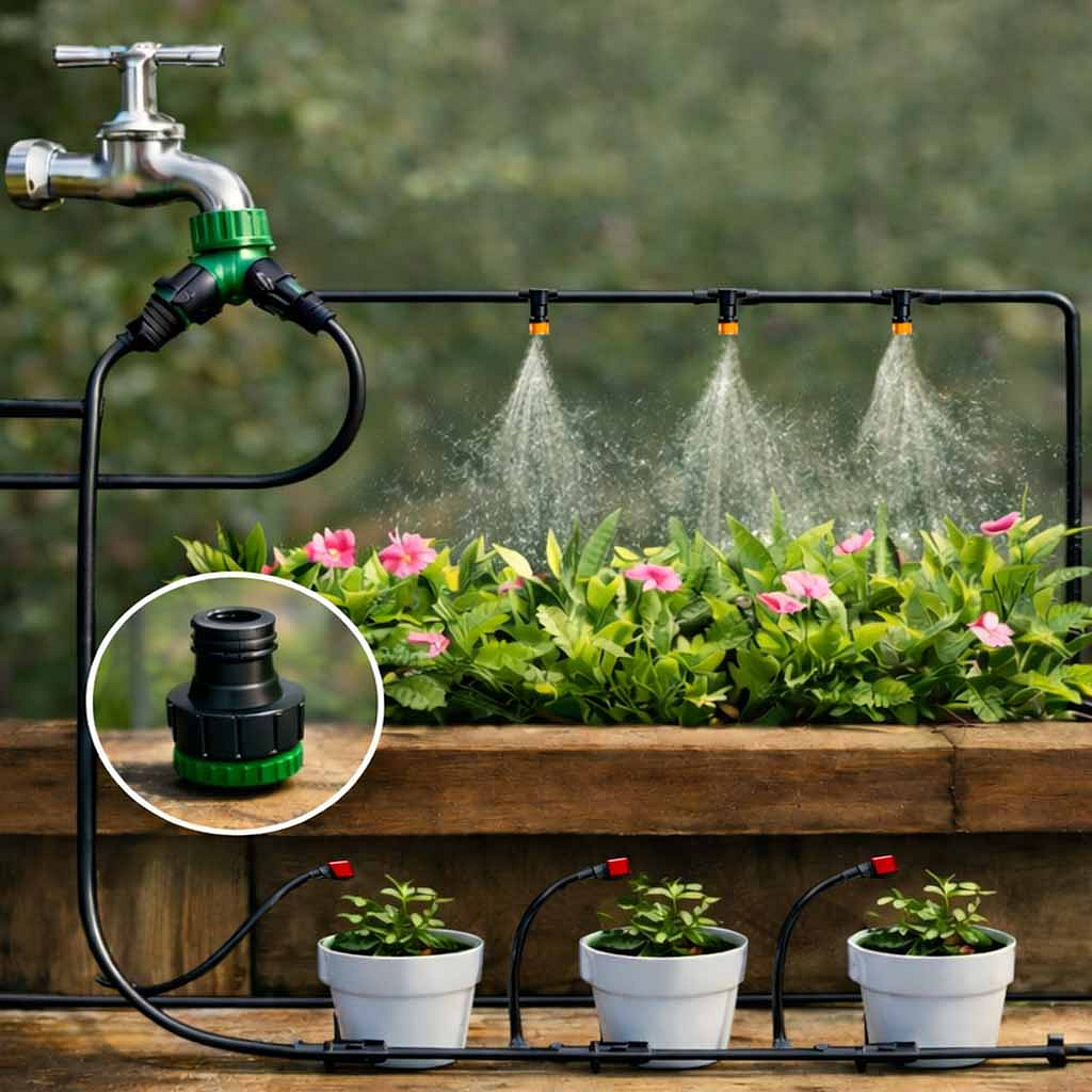 • Wysoka efektywność - precyzyjne dysze rozpylają wodę w formie delikatnej mgiełki lub strumienia, skutecznie nawadniając rośliny i jednocześnie obniżając temperaturę otoczenia