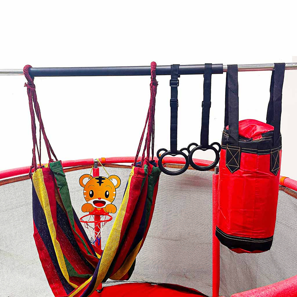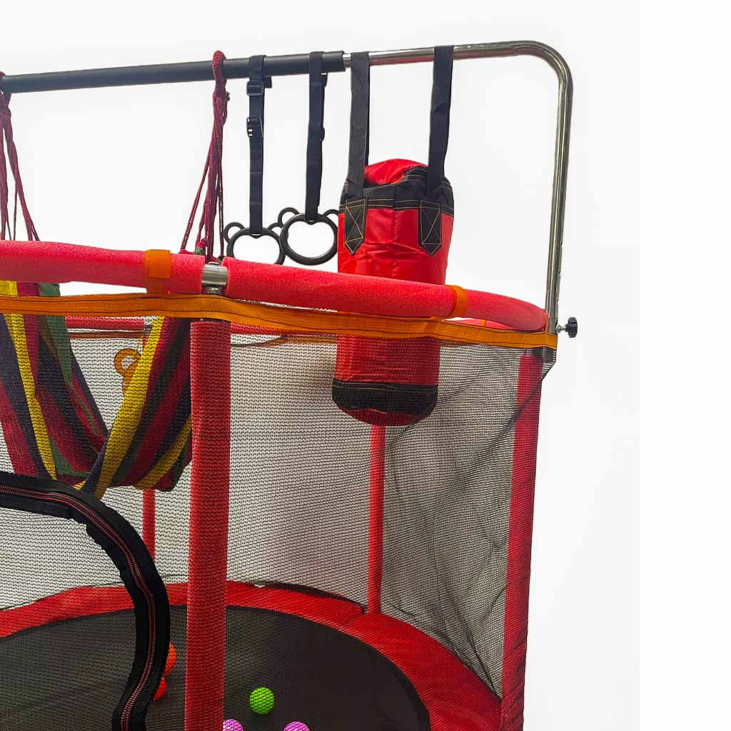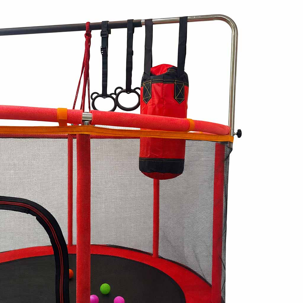 • Zestaw akcesoriów do trampoliny zmienia zwykłe skakanie w pełną atrakcji przestrzeń ruchu, która nie nudzi się po kilku dniach