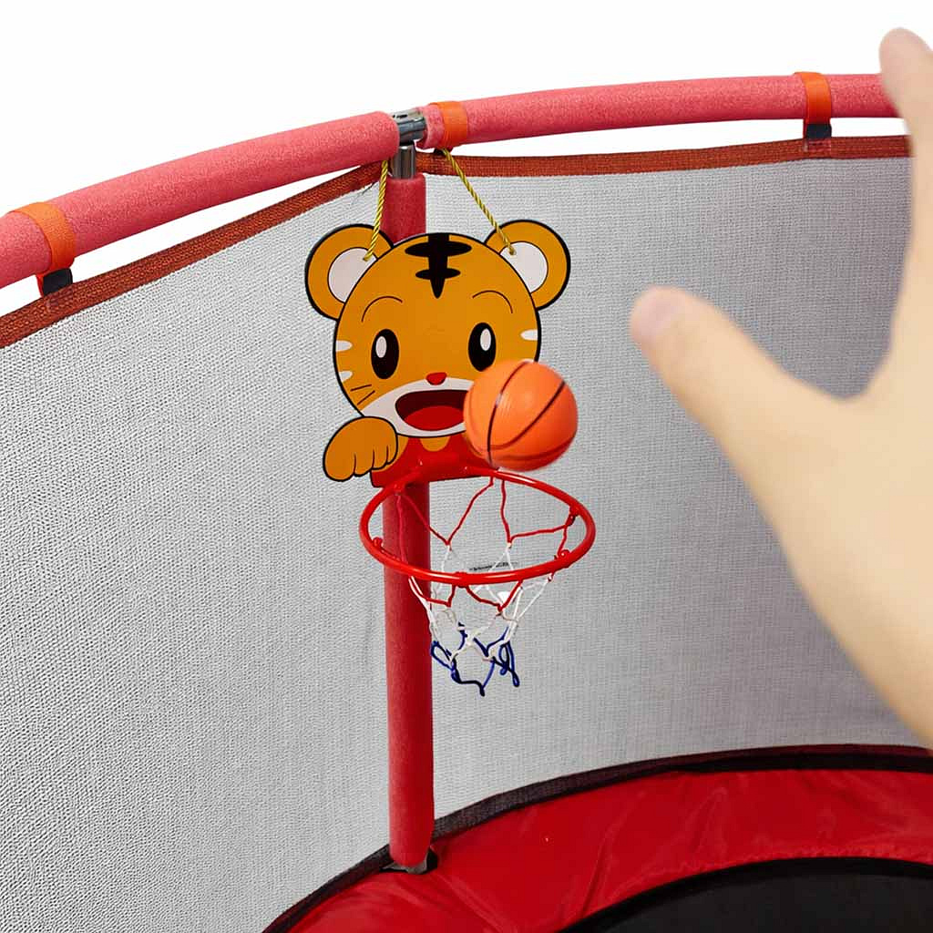 Ta trampolina zachwyca nie tylko formą, ale też bogactwem dodatków, które zamieniają zwykłe skakanie w prawdziwą strefę aktywnej zabawy. Kosz do koszykówki z uroczą tarczą zachęca do celnych rzutów, piłka i pompka pozwalają od razu rozpocząć grę, a zestaw piłeczek urozmaica ruch i koordynację. Hamak z torbą do przechowywania daje chwilę relaksu, kółka do podciągania wzmacniają mięśnie, a worek bokserski z rękawiczkami dodaje emocji i energii każdej zabawie. Trampolina szybko staje się centrum codziennej aktywności na świeżym powietrzu.