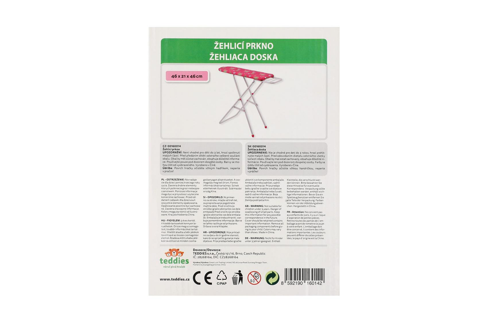 Žehlicí prkno 46x21x46cm výška 51cm v krabici 26x79x5cm