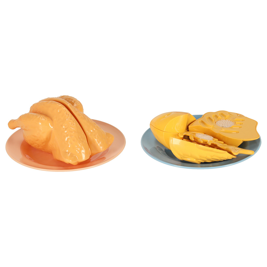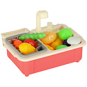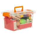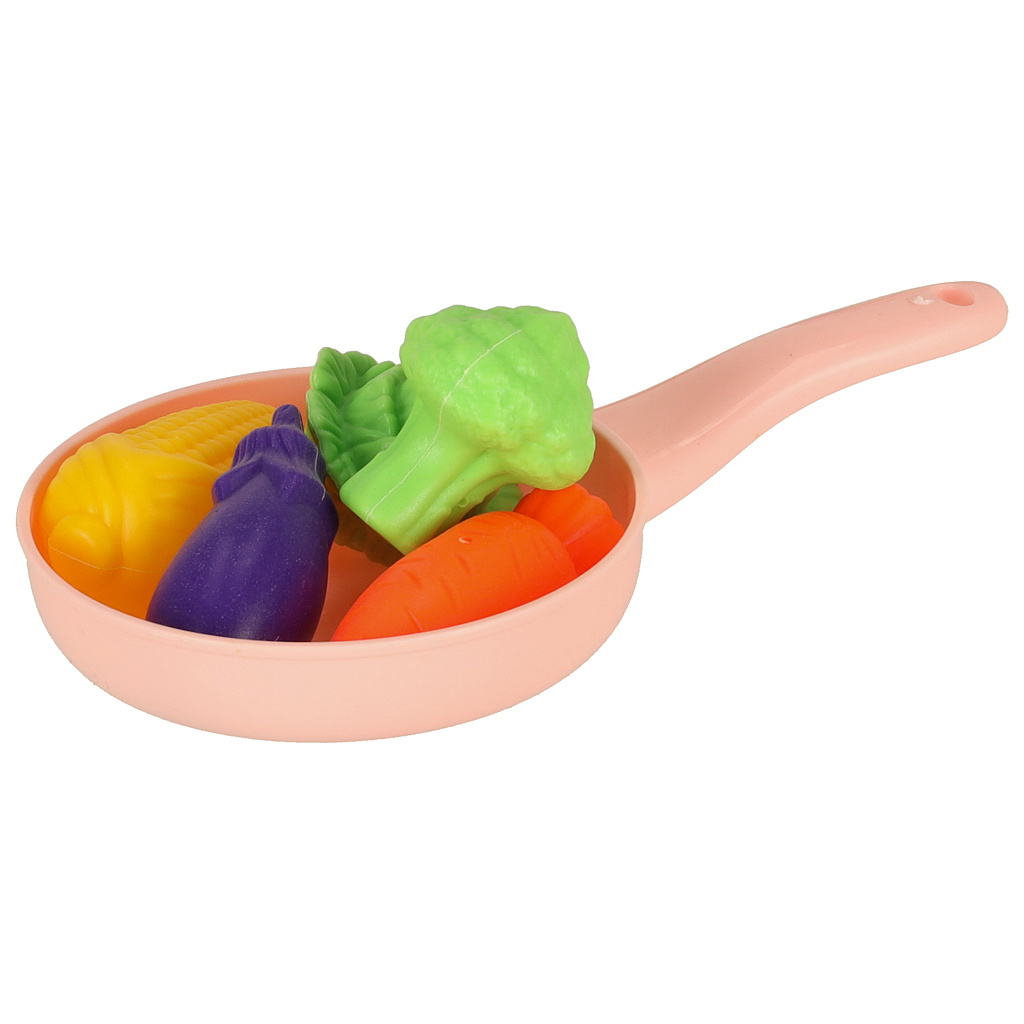 54dílná sada – pro zábavu má dítě různé ovoce a zeleninu, stejně jako kuchyňské doplňky, jako jsou talíře, kuchyňský dřez a sporák